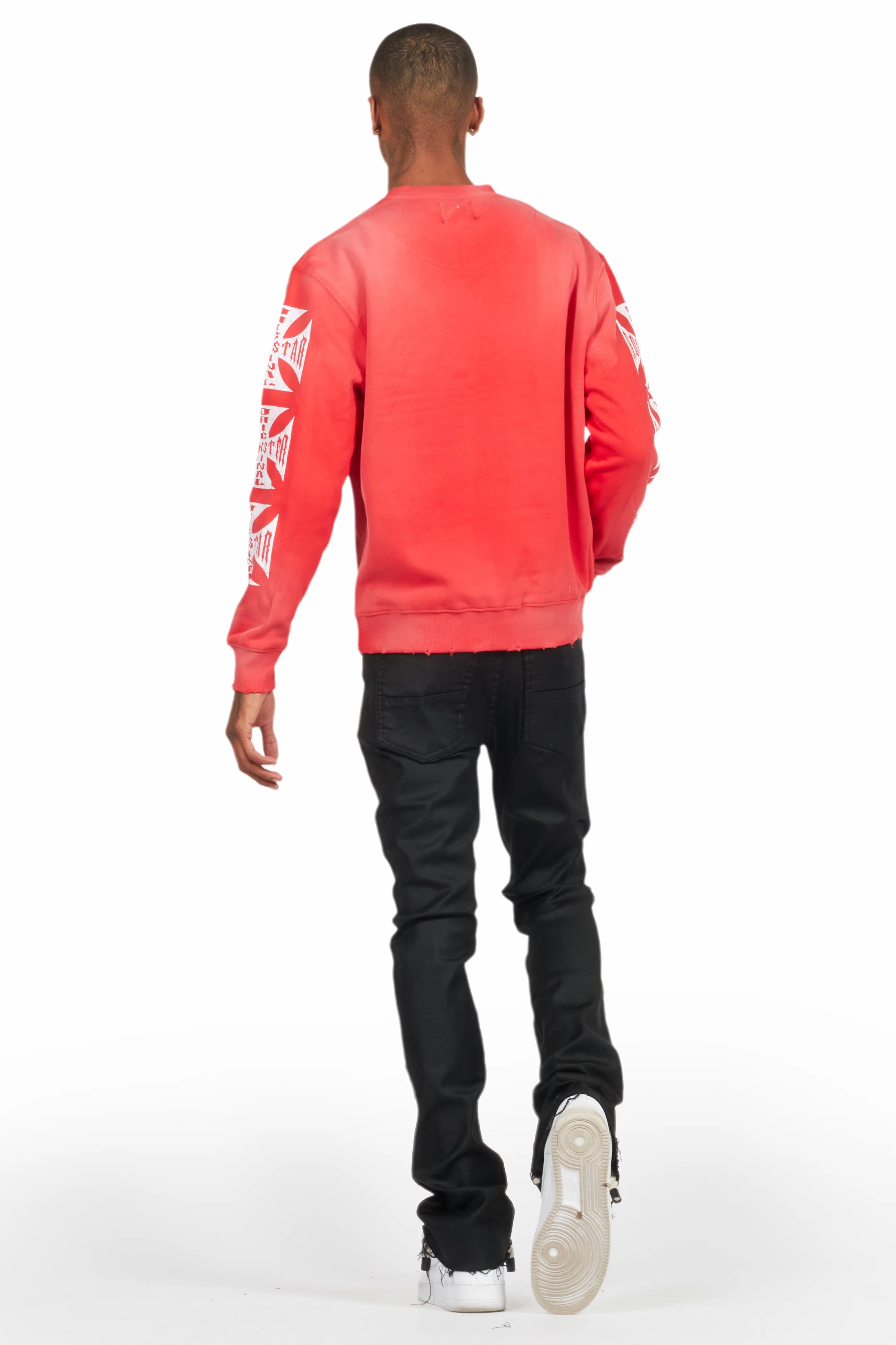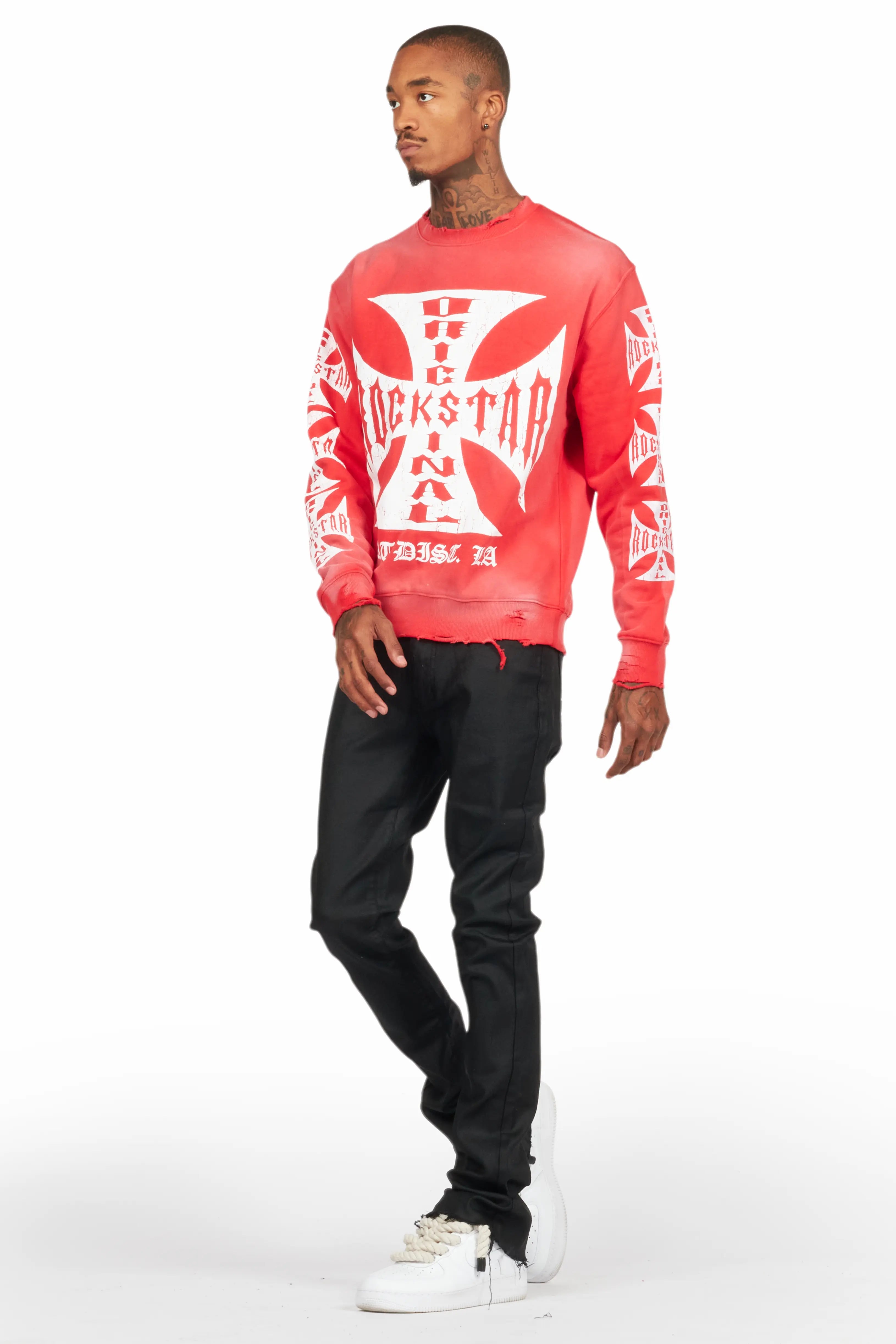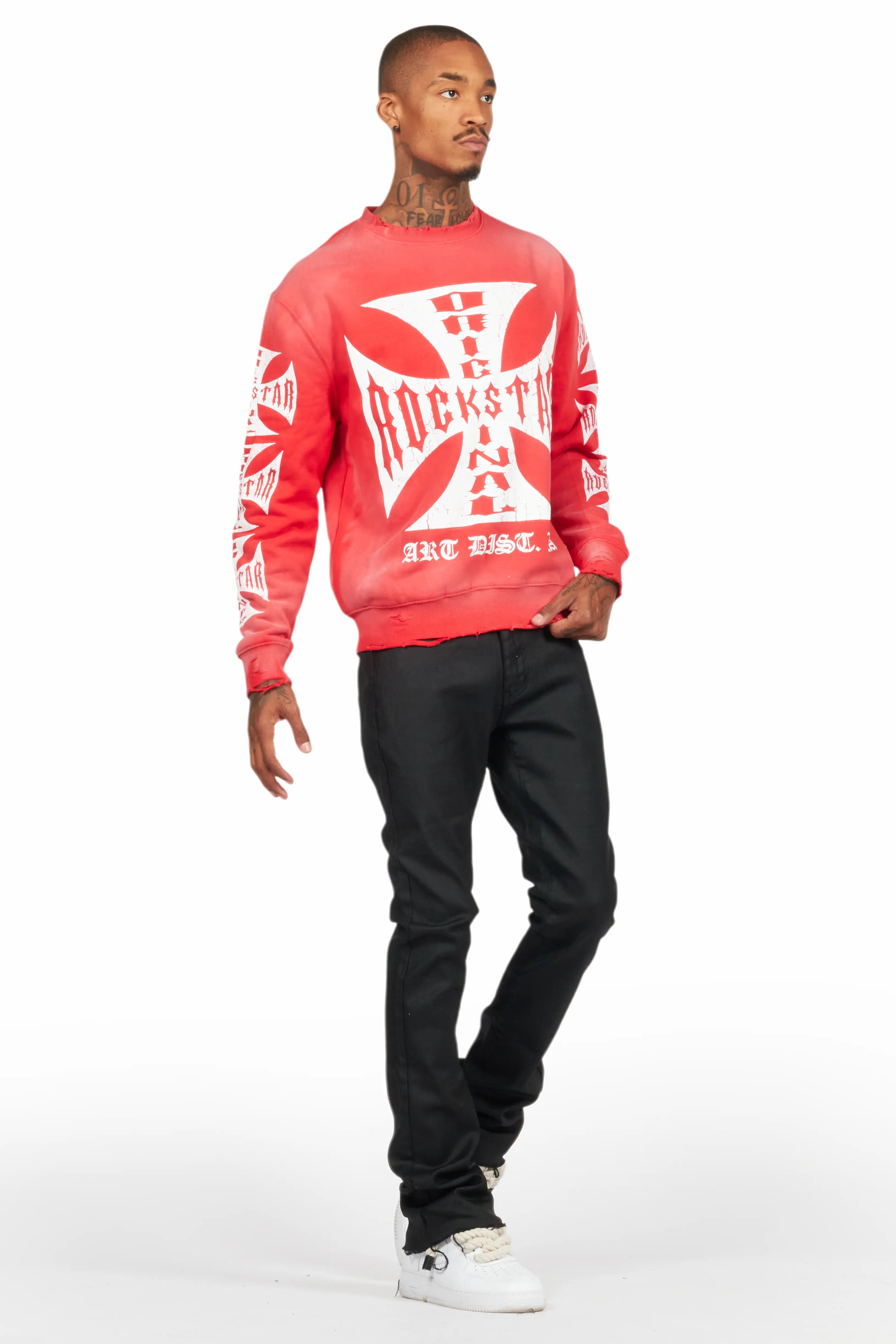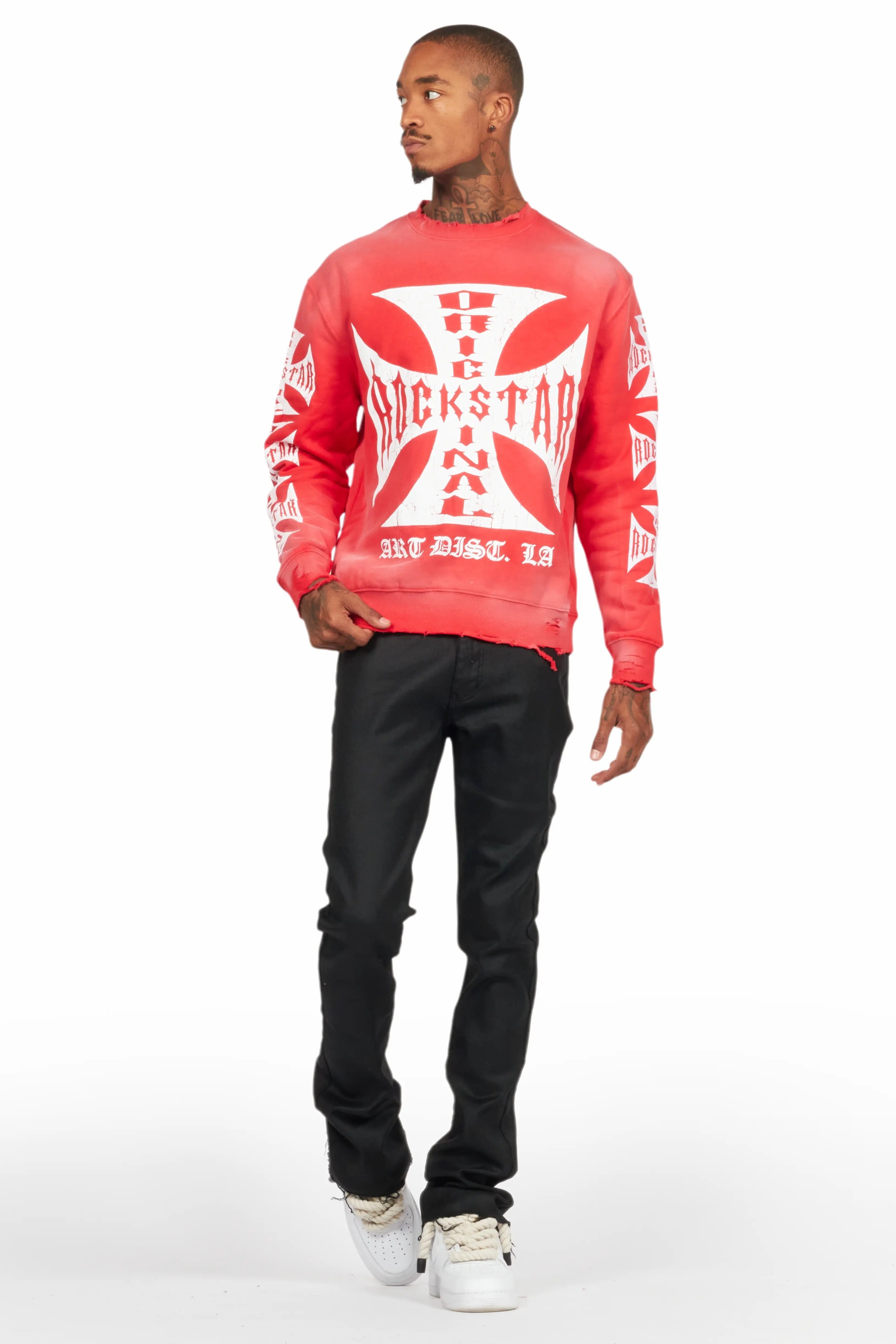 An urban stacked flare denim jean for men in black. Designed with a smooth coated finish for a functional pair of streetwear jean.