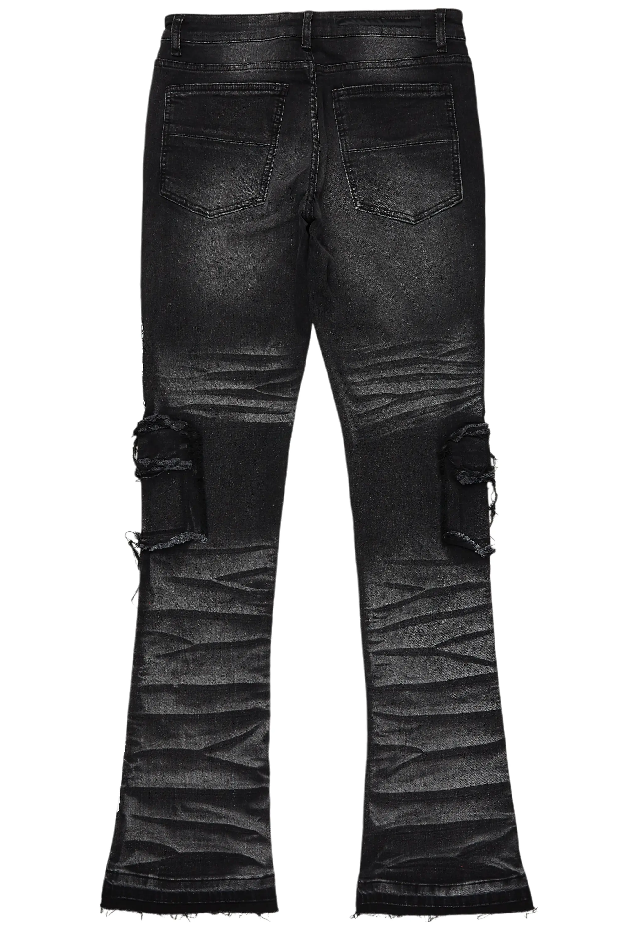 An urban stacked denim cargo jean for men in grey. Designed with organic cotton and extra long legs for a must-cop streetwear staple piece.