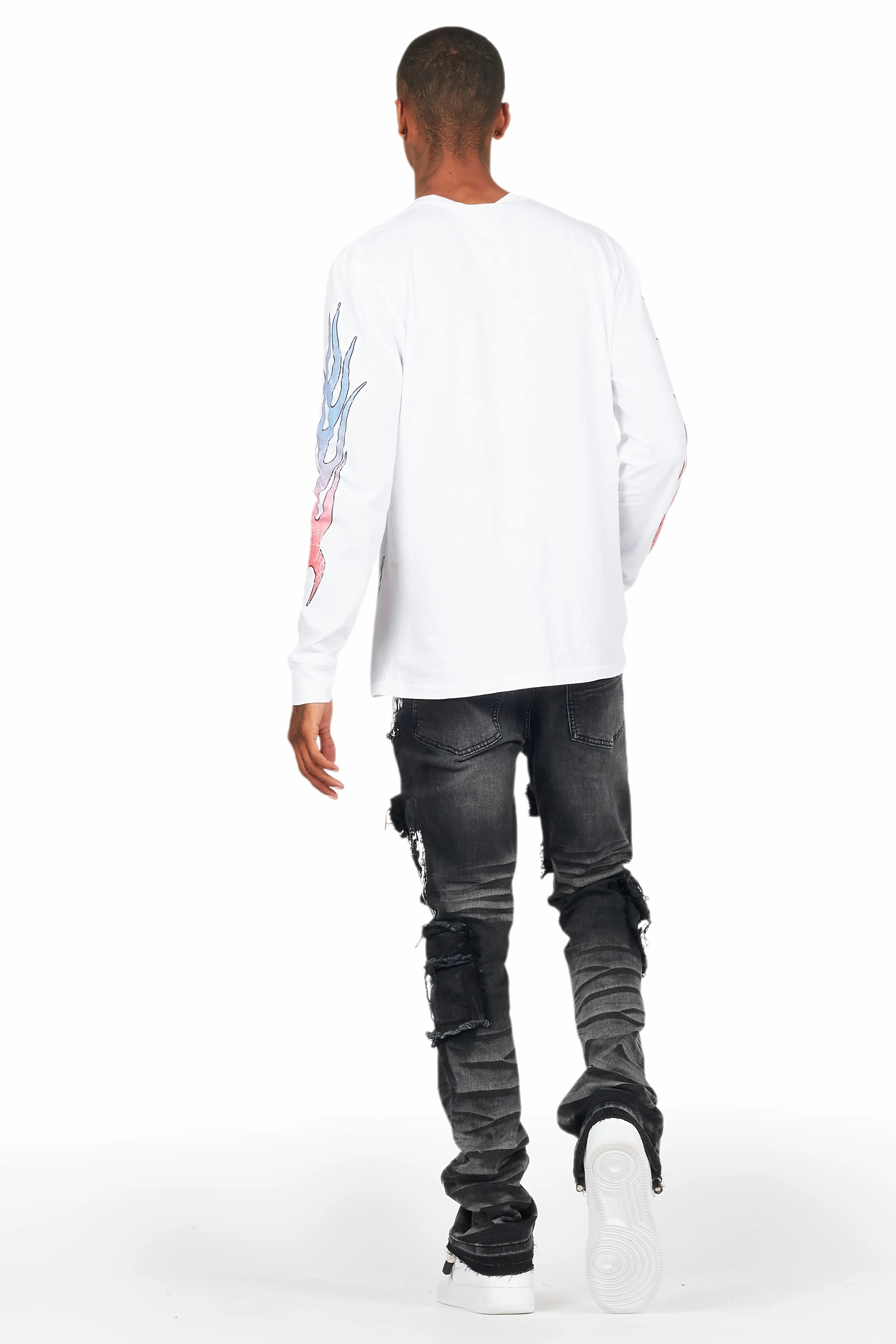 *NOTE: These jeans are purposefully designed with extra long legs so the fabric properly bunches at the hem, creating the stacked flare style.
