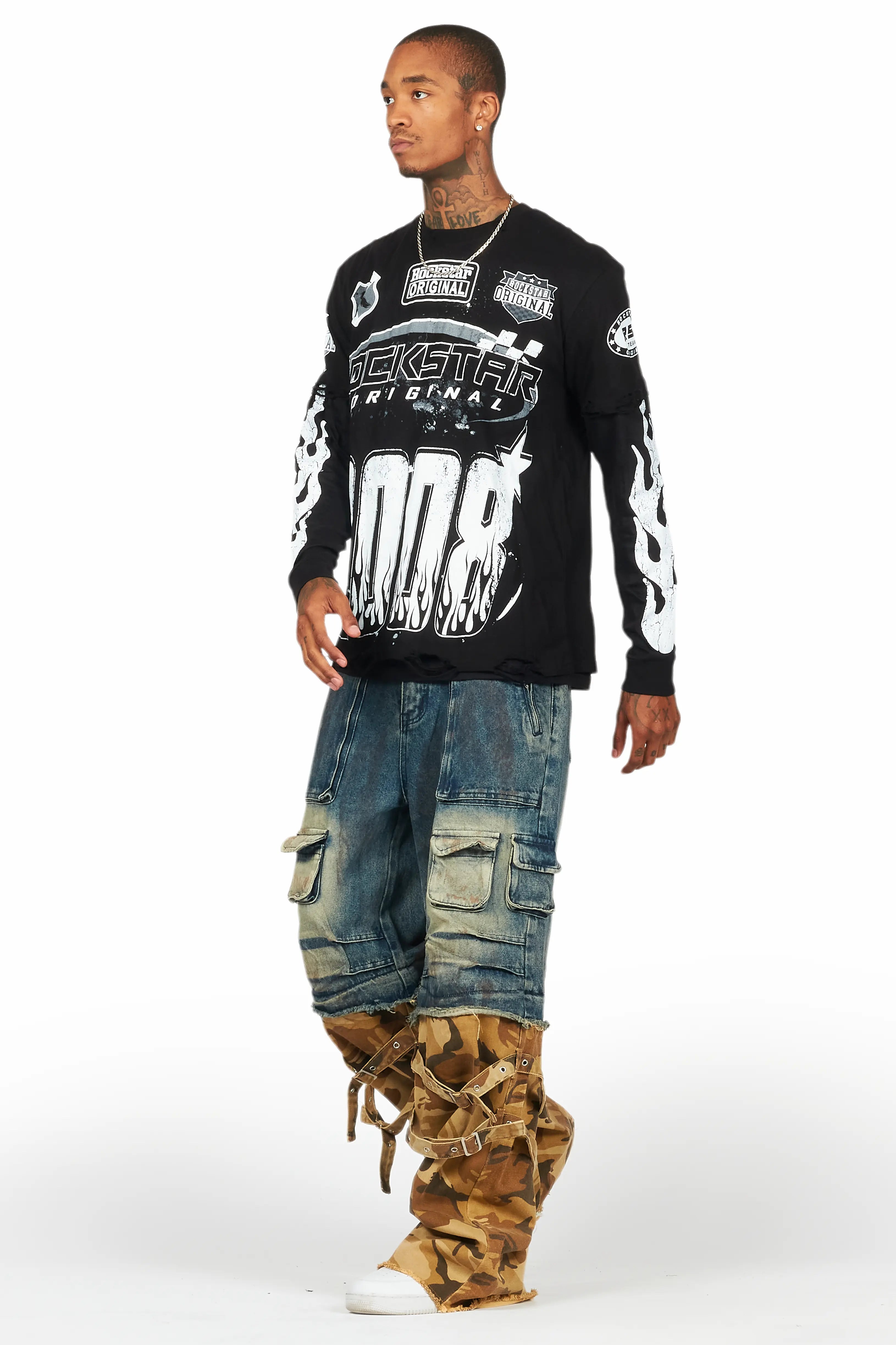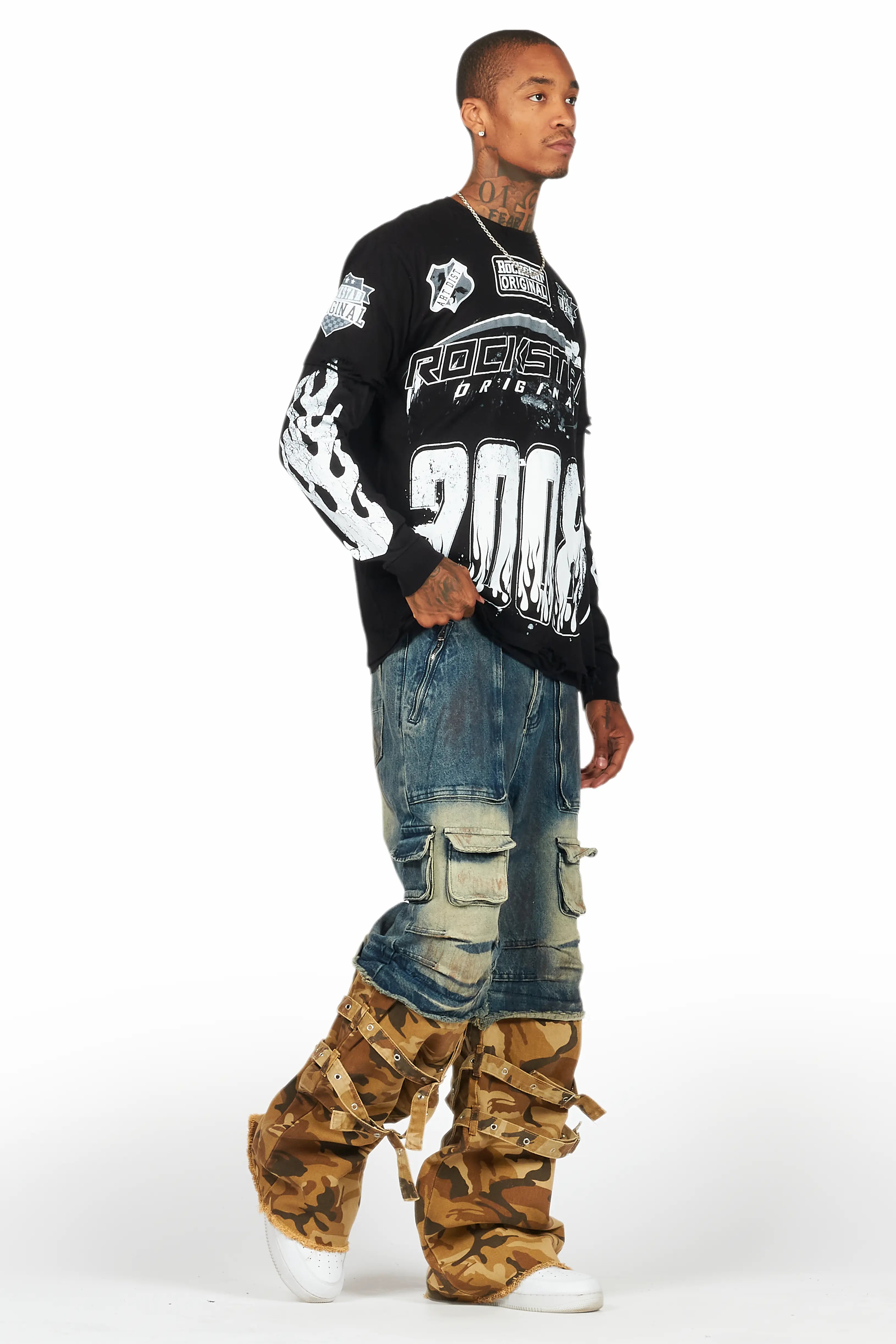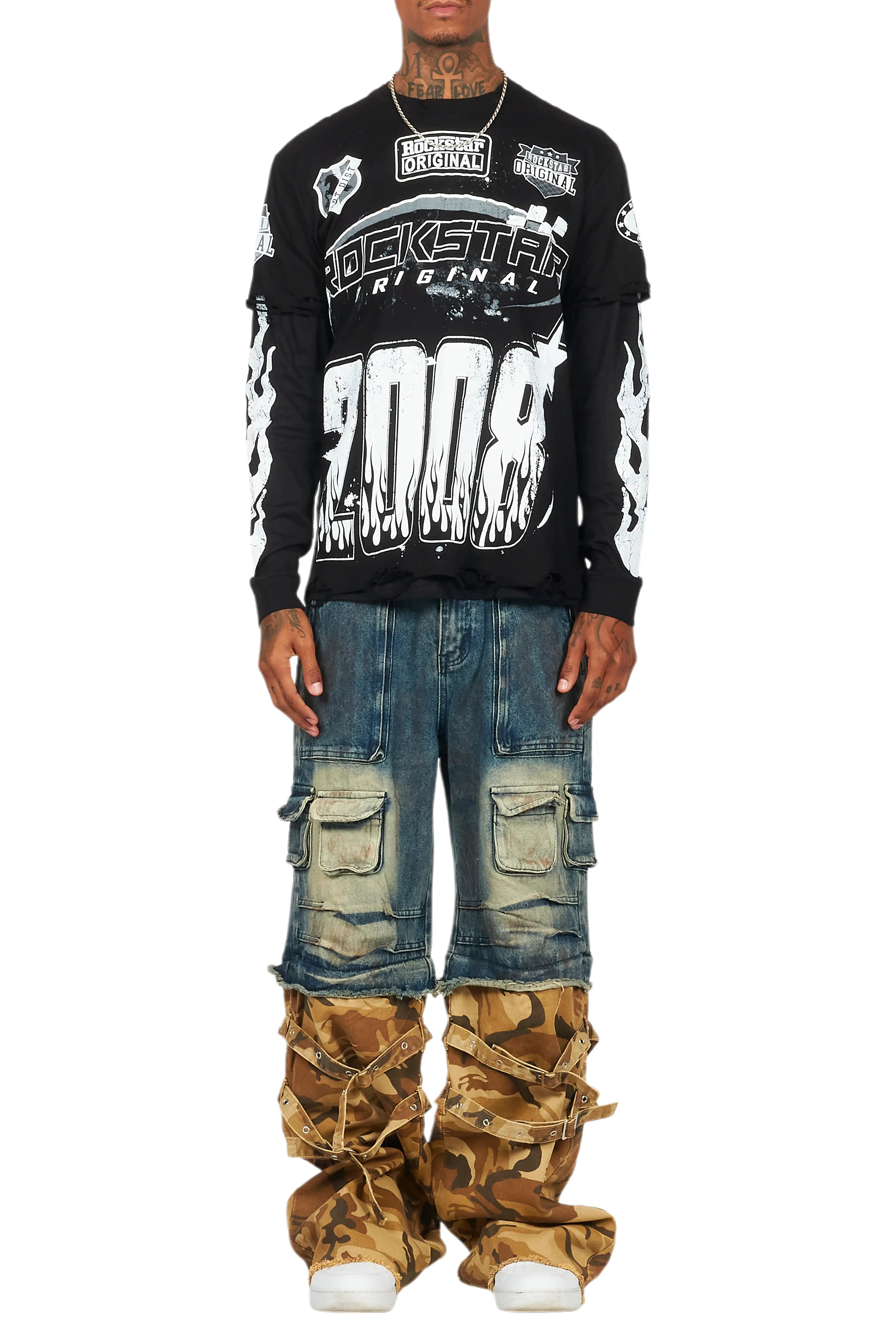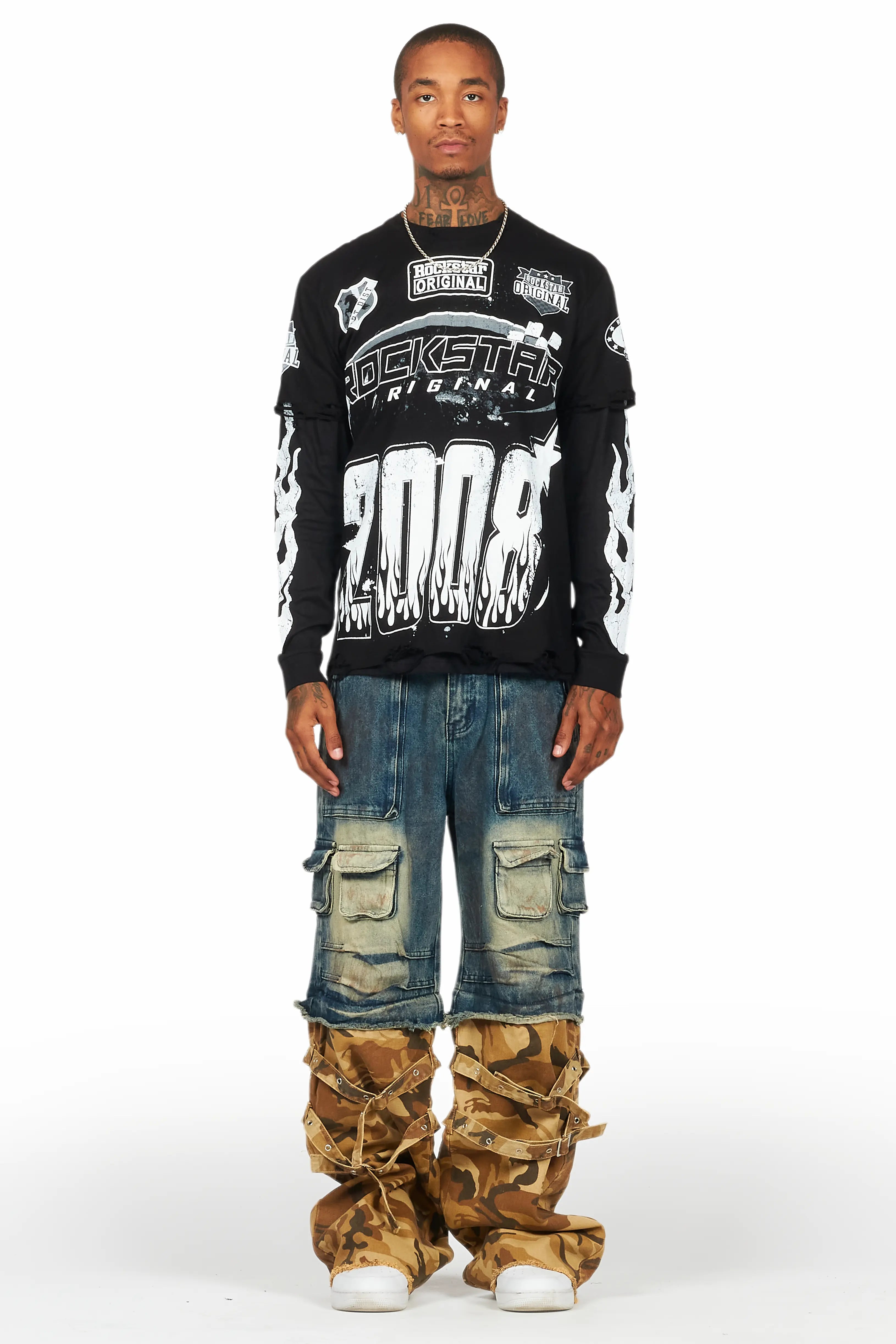 An urban baggy cargo jean for men in dark blue. Designed with organic cotton and an oversized-fit for an essential streetwear style.