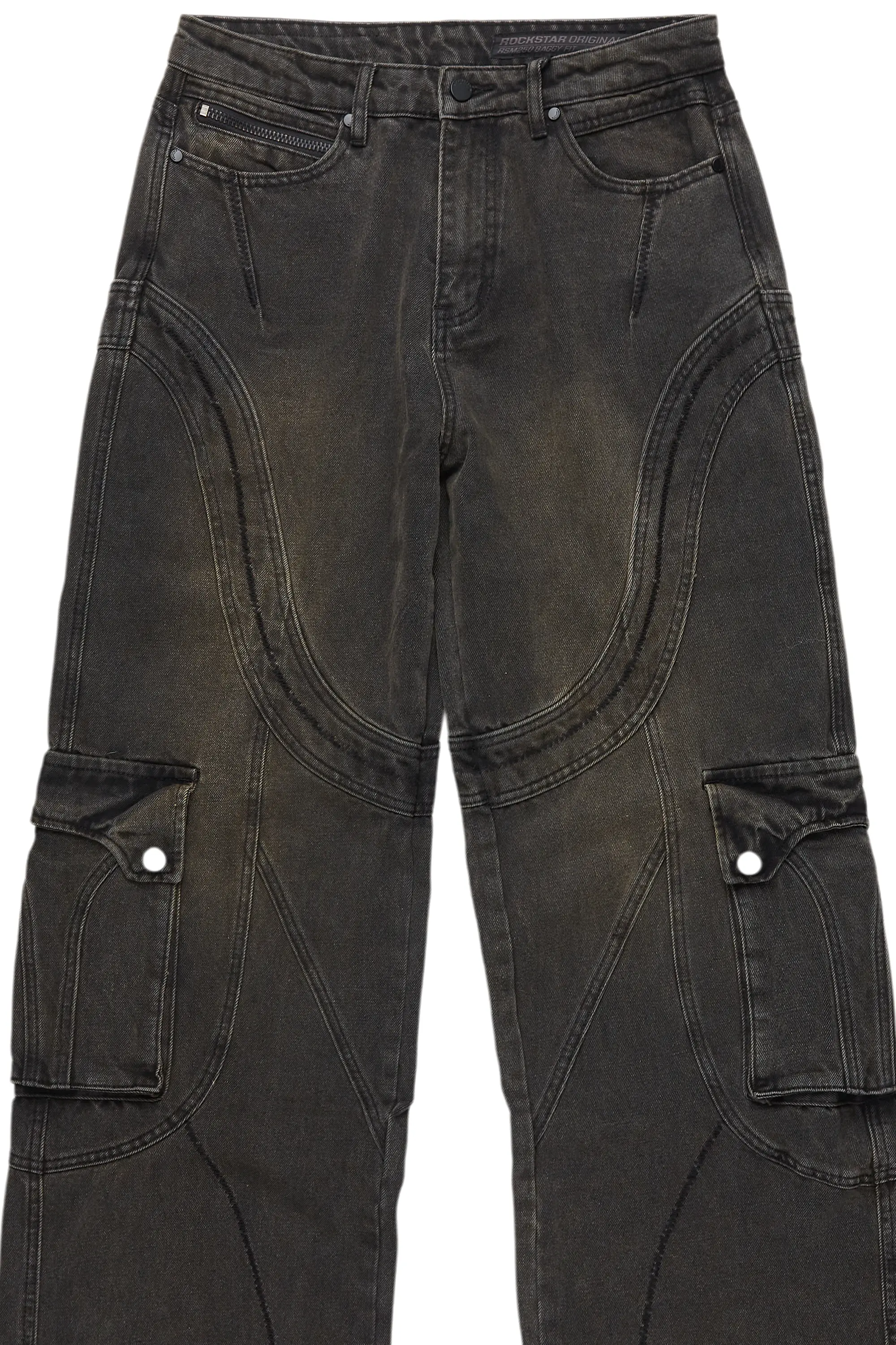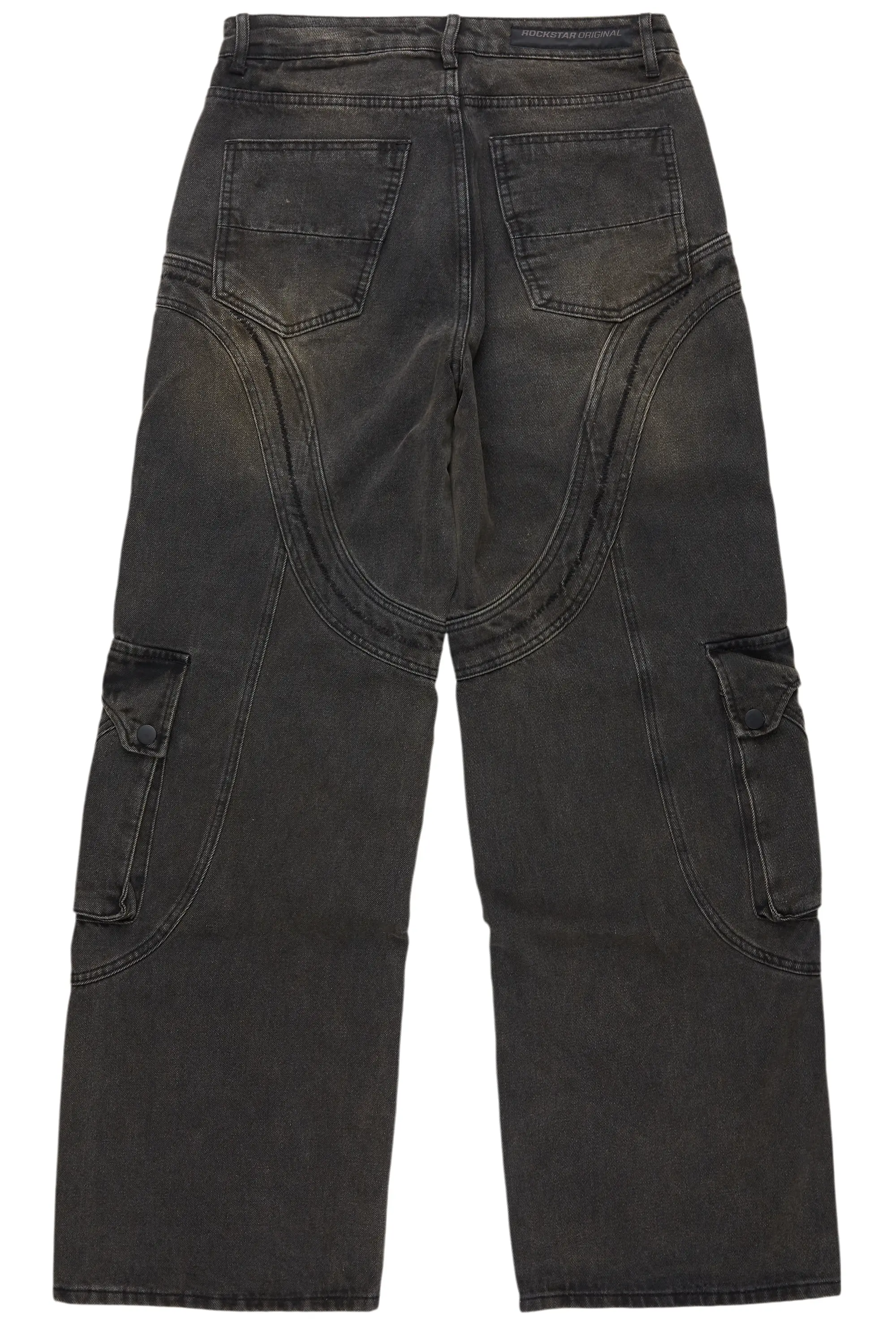 An urban baggy cargo jean for men in dark grey. Designed with organic cotton and an oversized-fit for an essential streetwear style.