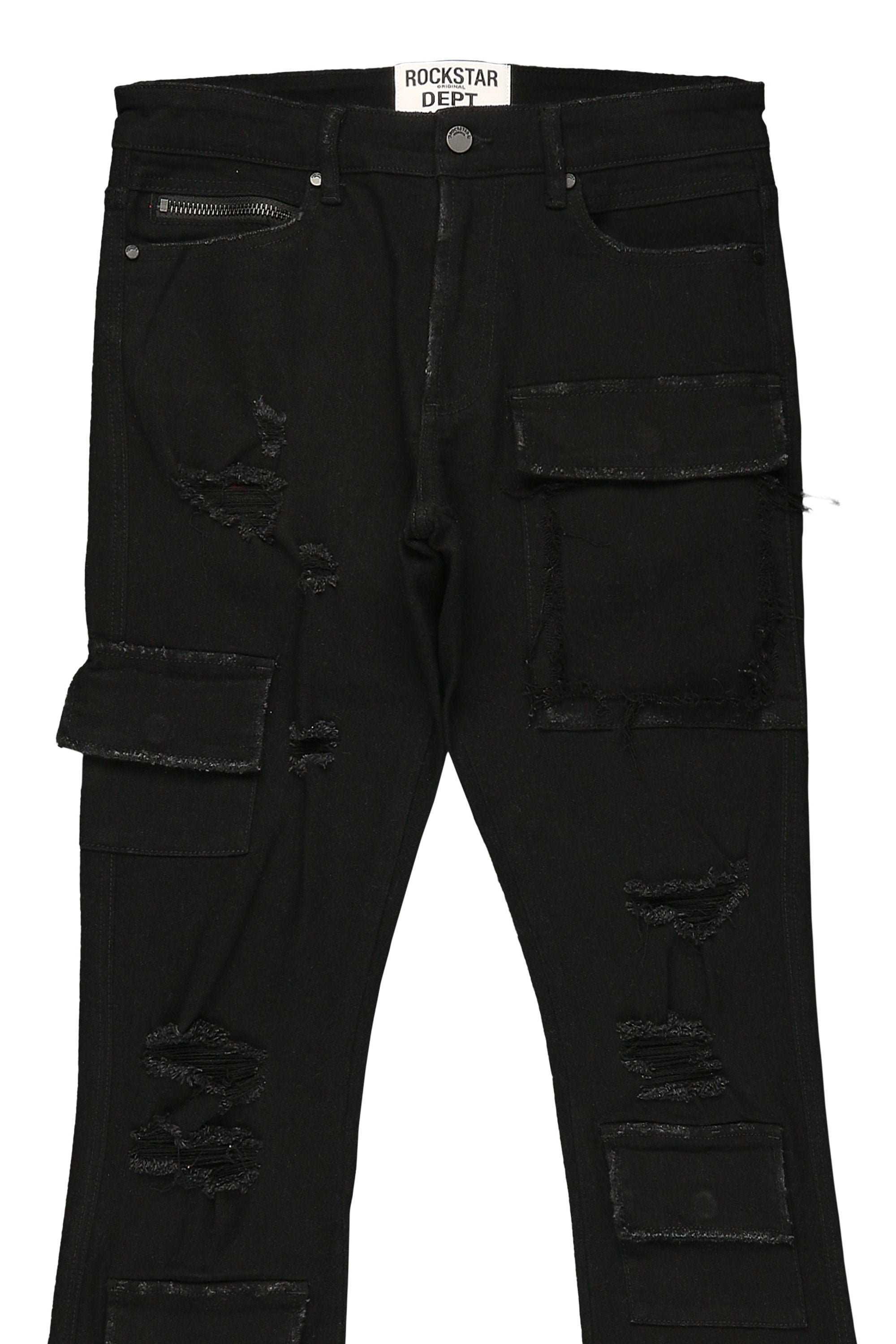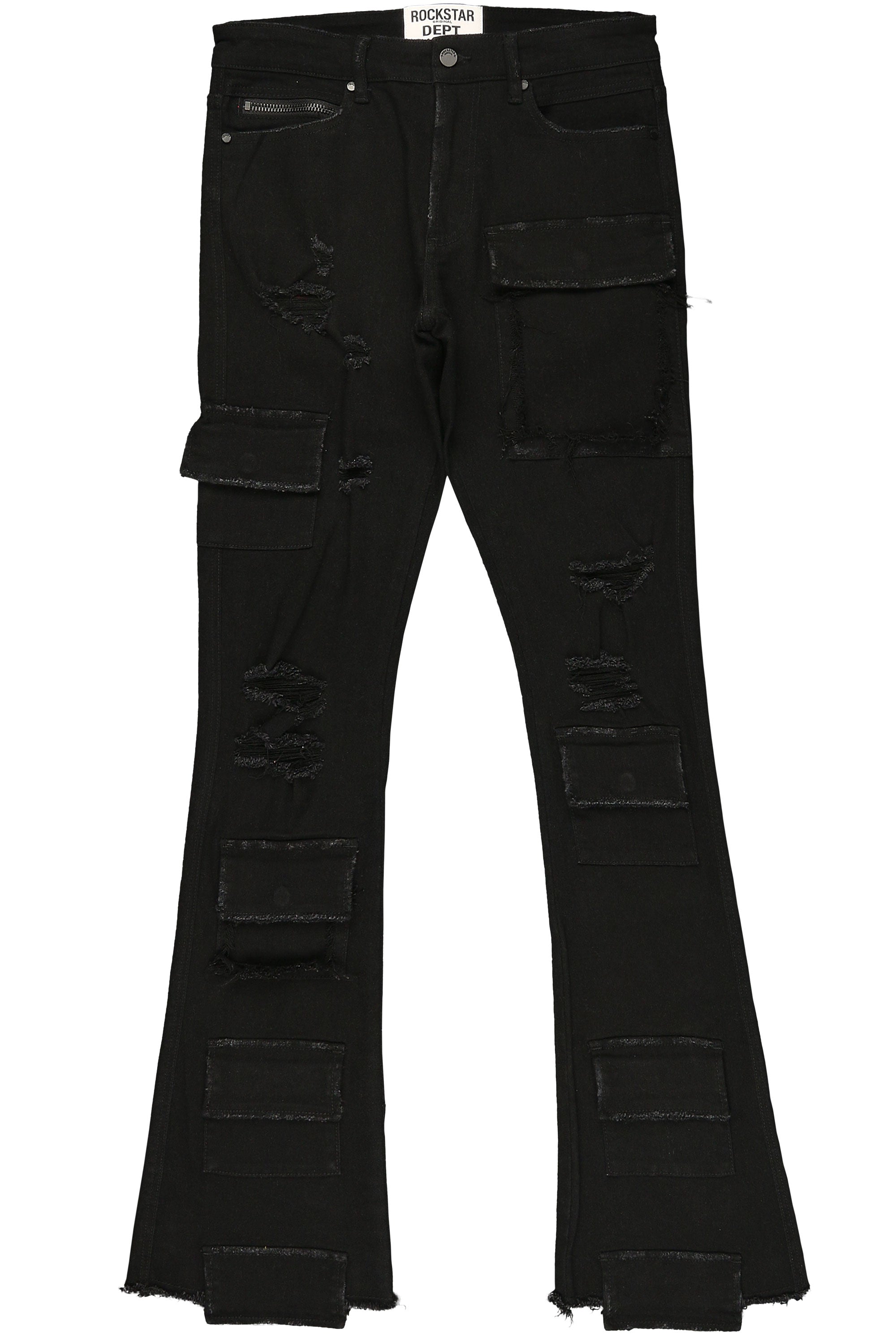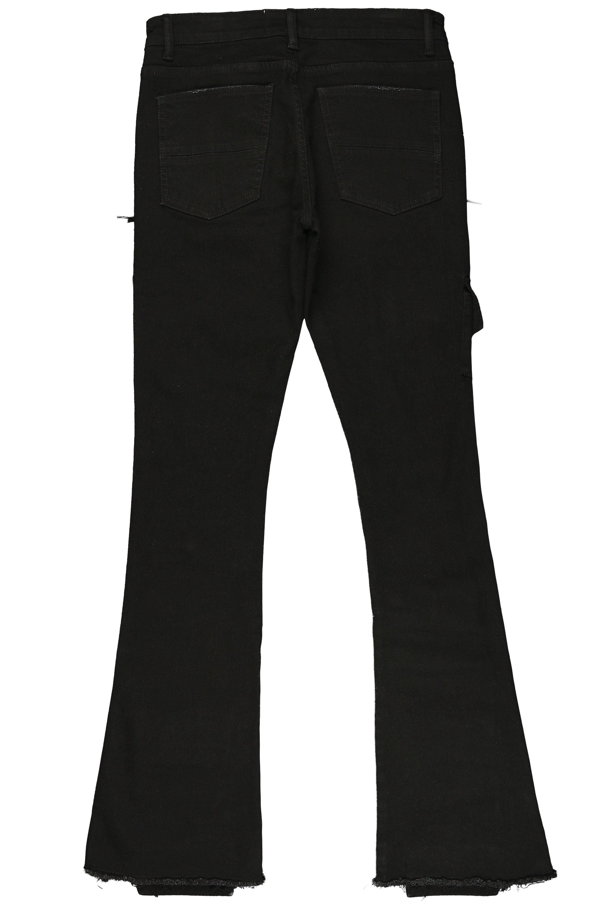 This revolutionized pair of jet black flare jeans were cut and hand-made in our L.A. studios. Designed with utility pocket details and a stacked construction. The uncompromisingly constructed denim garment accents a lightweight yet superior feel for a luxurious wear.