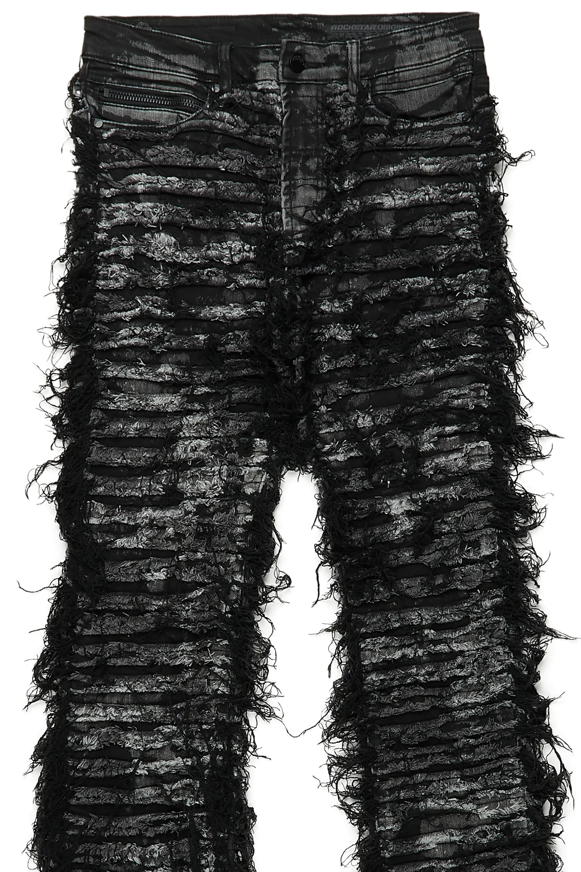 An urban stacked denim jean for men in black. Designed with organic cotton and extra long legs for a dope streetwear style.