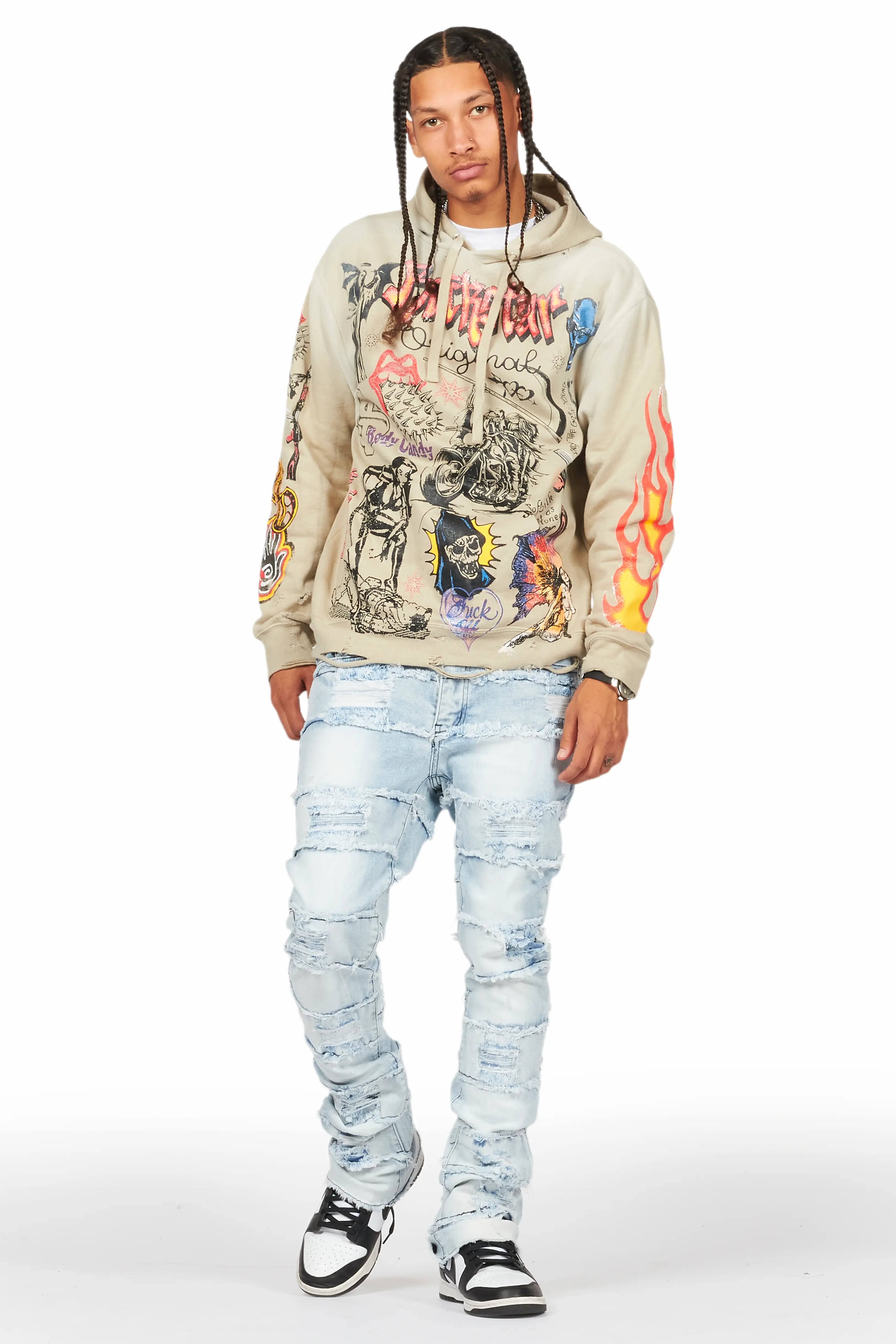An urban stacked denim jean for men in blue. Designed with organic cotton and extra long legs for a must-cop streetwear staple piece.