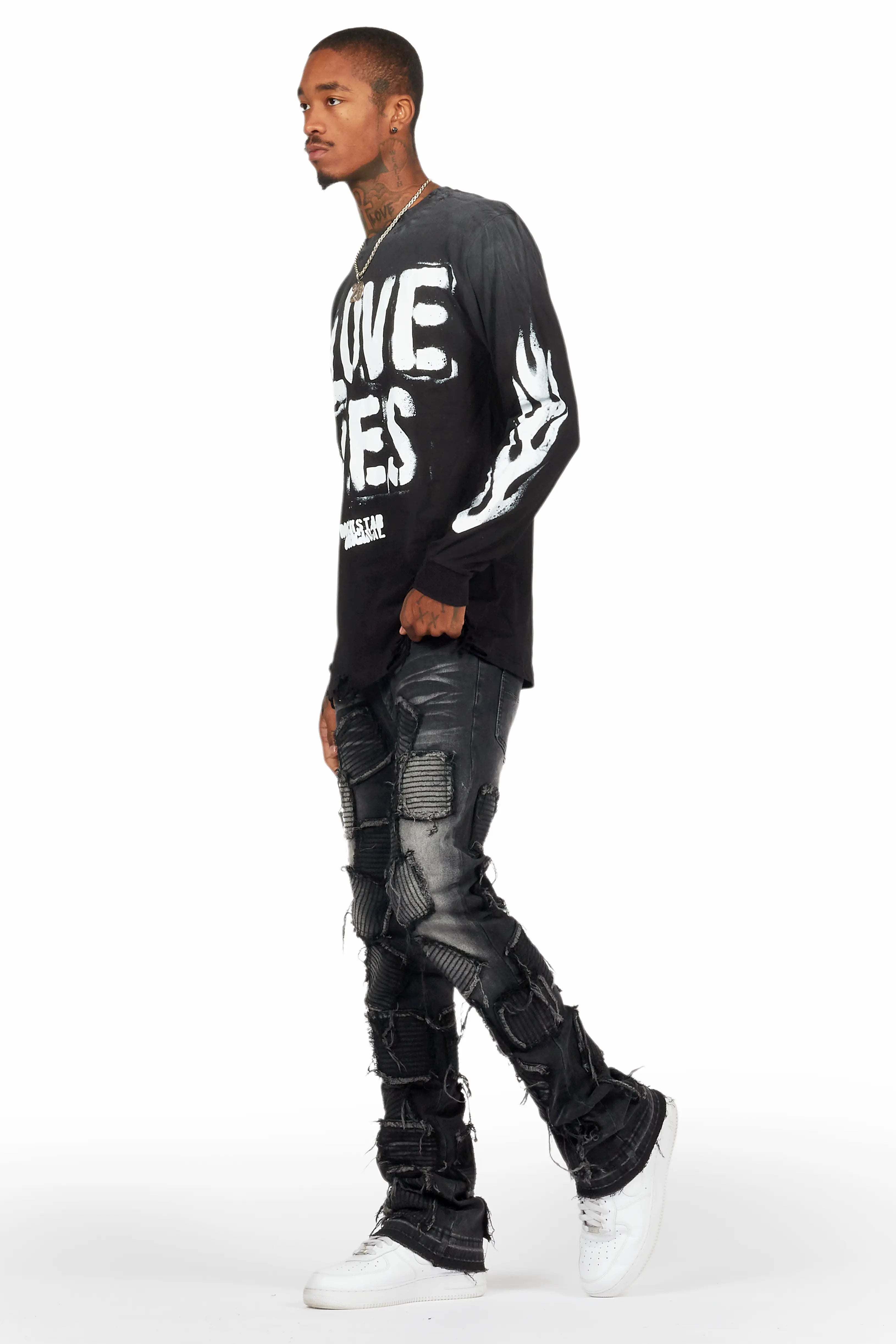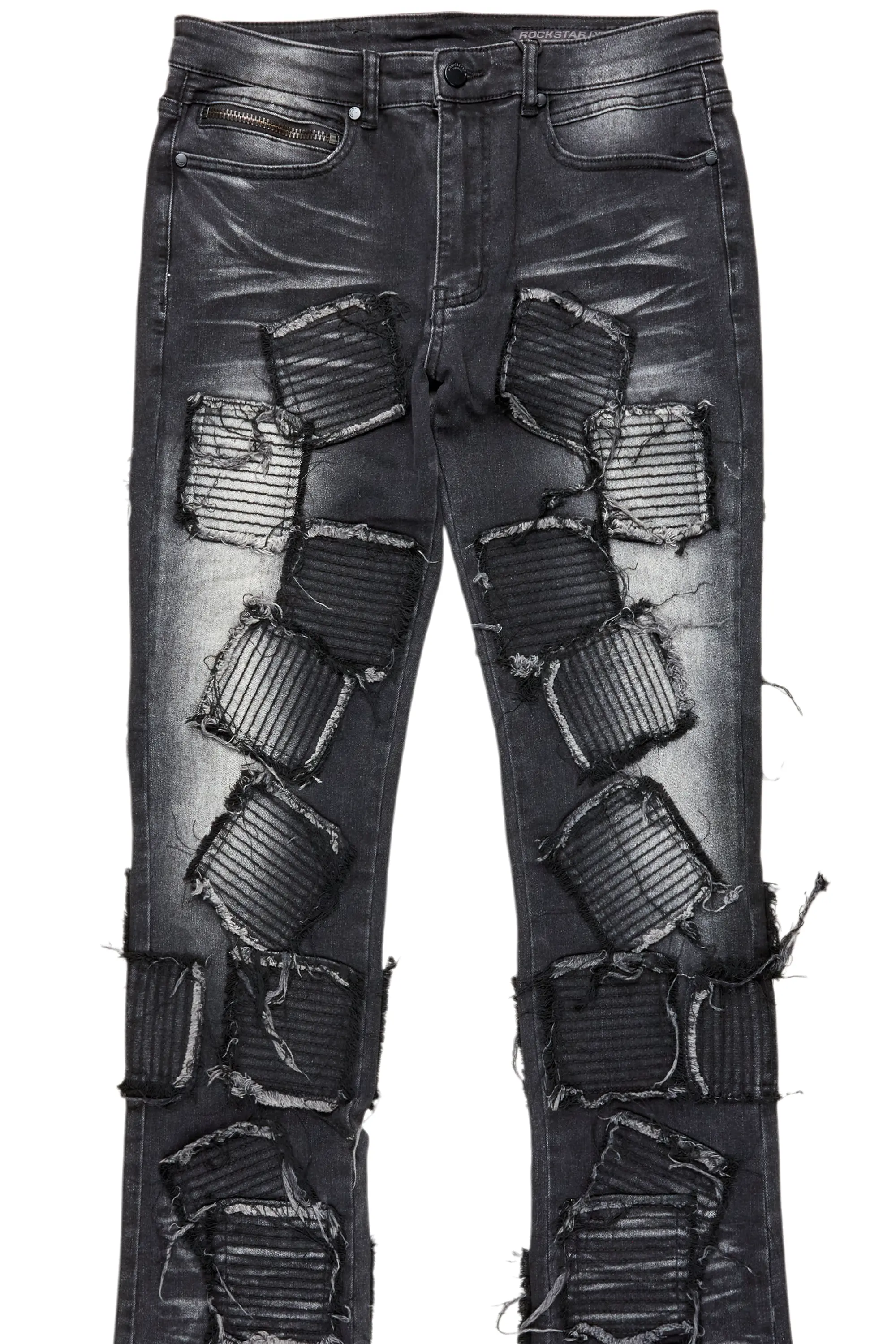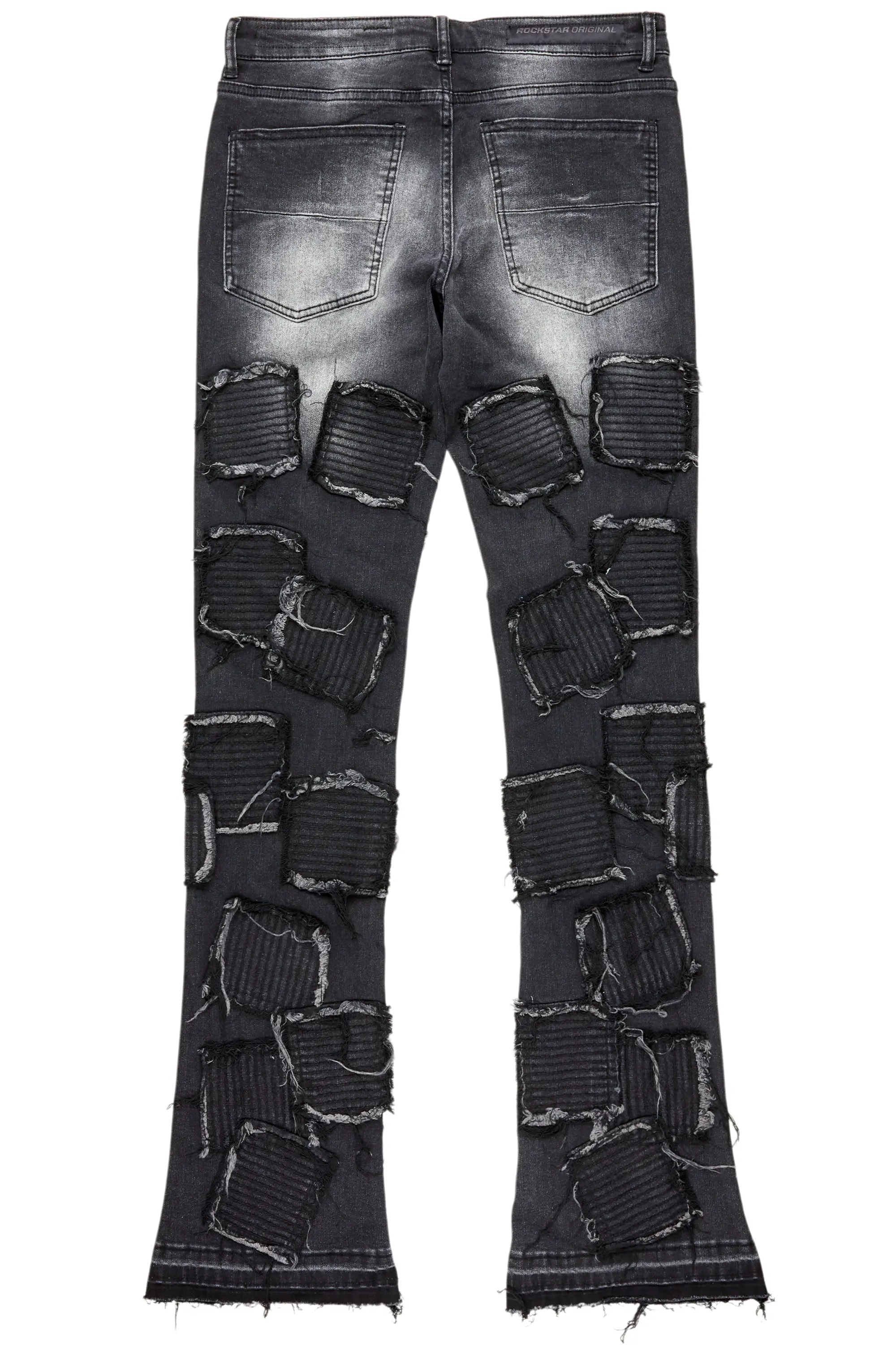 An urban stacked flare denim jean for men in grey. Designed with organic cotton and custom detailing for the perfect streetwear style.