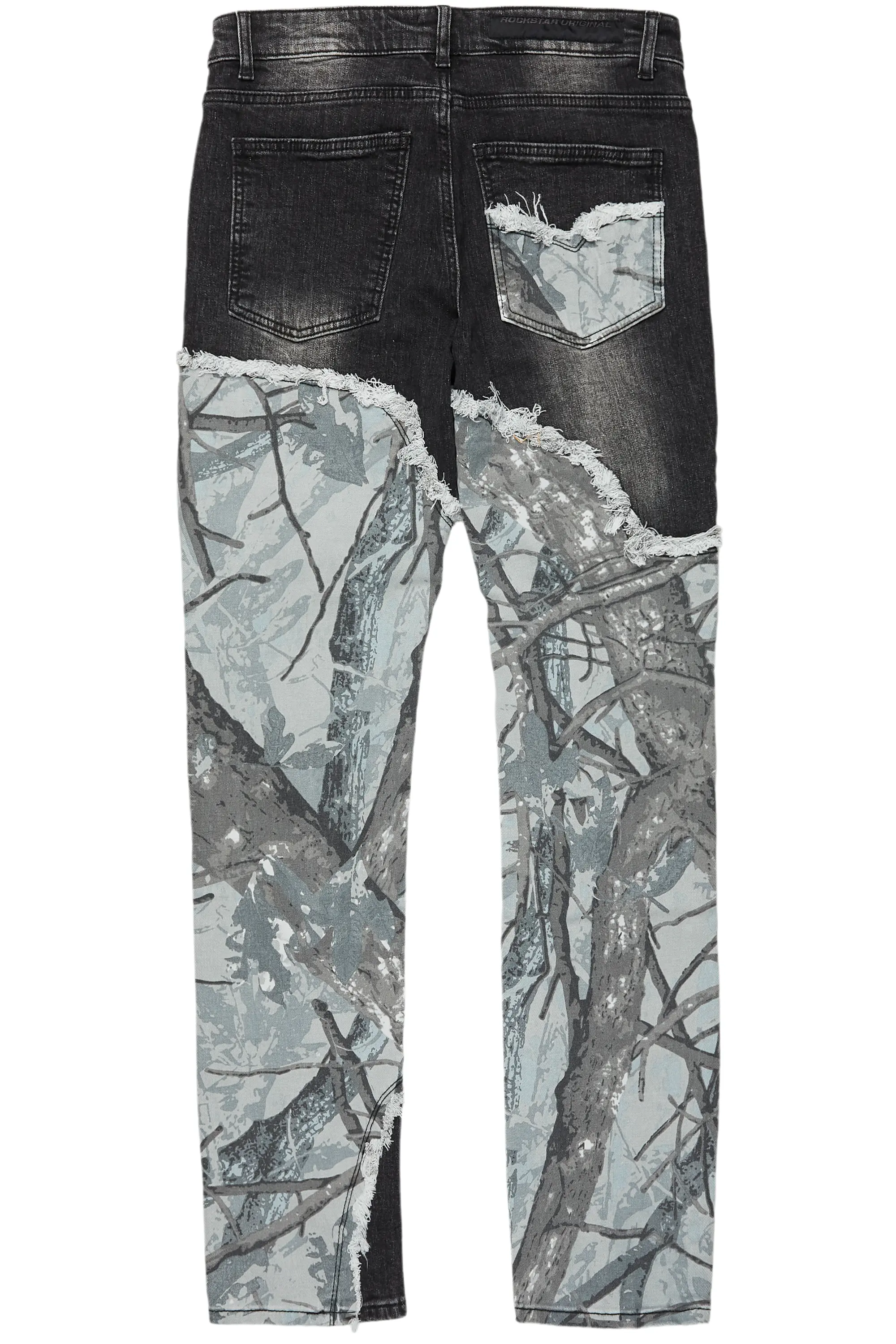 An urban denim cargo jean for men in dark grey. Designed with organic cotton and distressed detailing for a dope streetwear style.