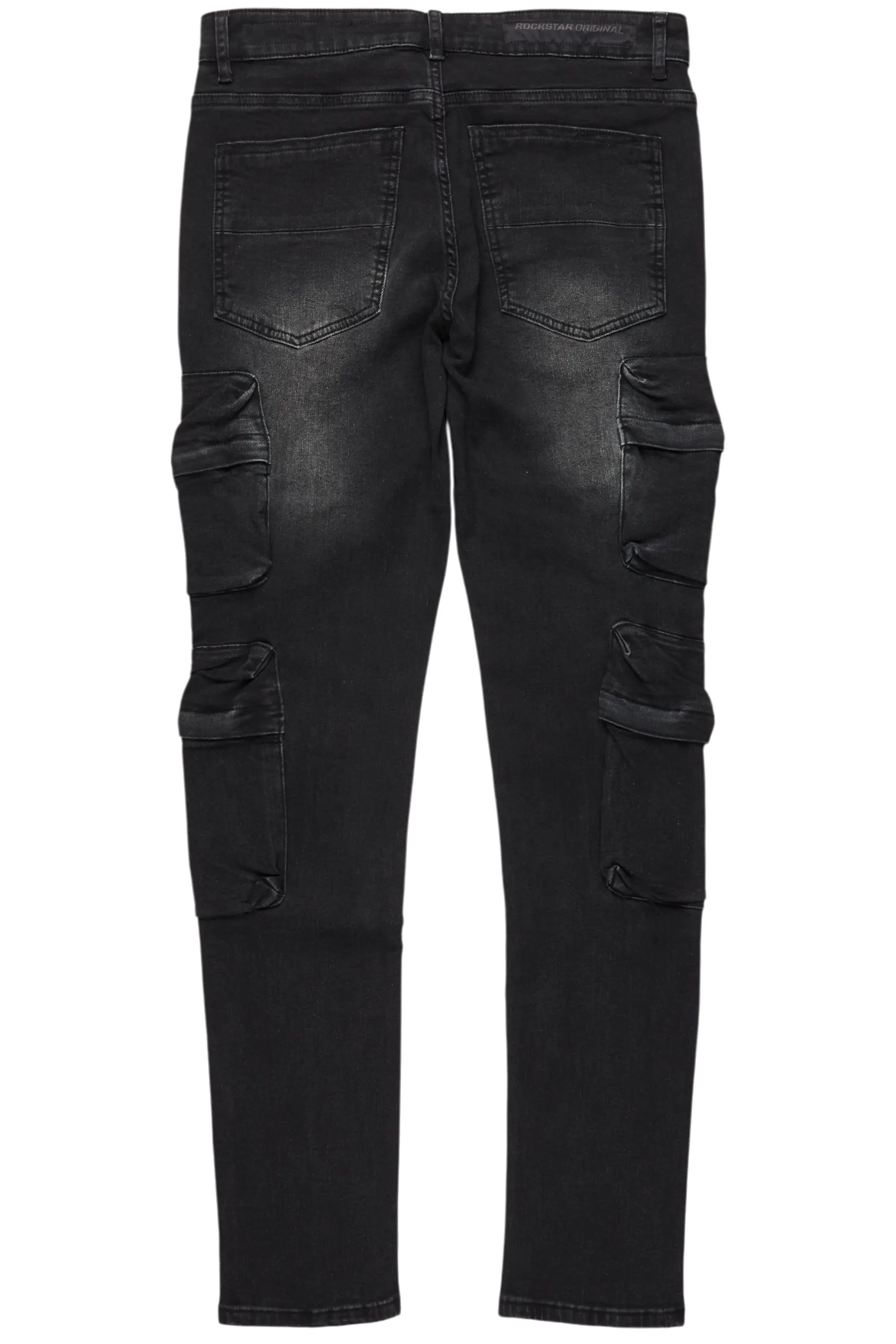 An urban denim cargo jean for men in dark grey. Designed with organic cotton and utility pockets for the perfect versatile style.