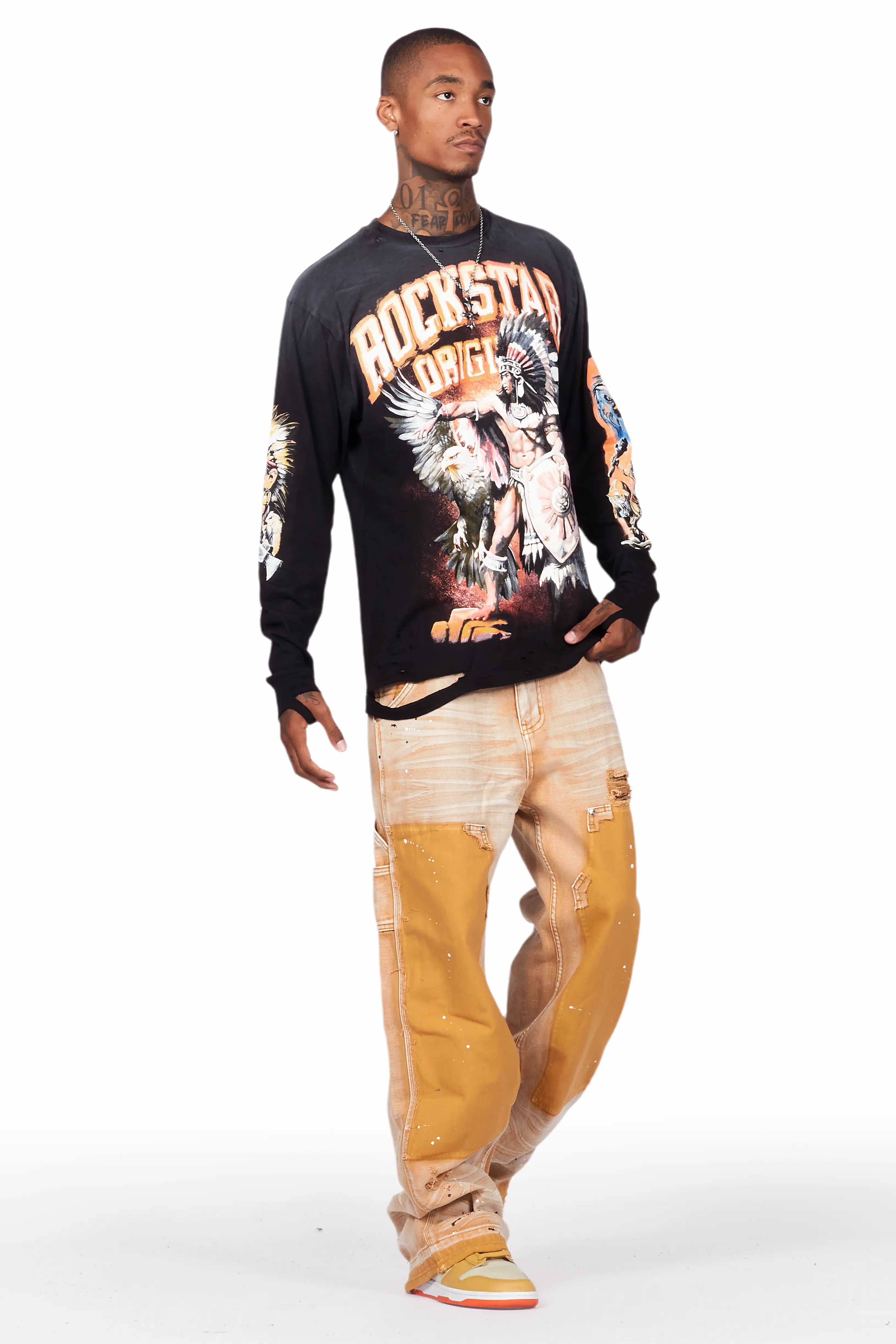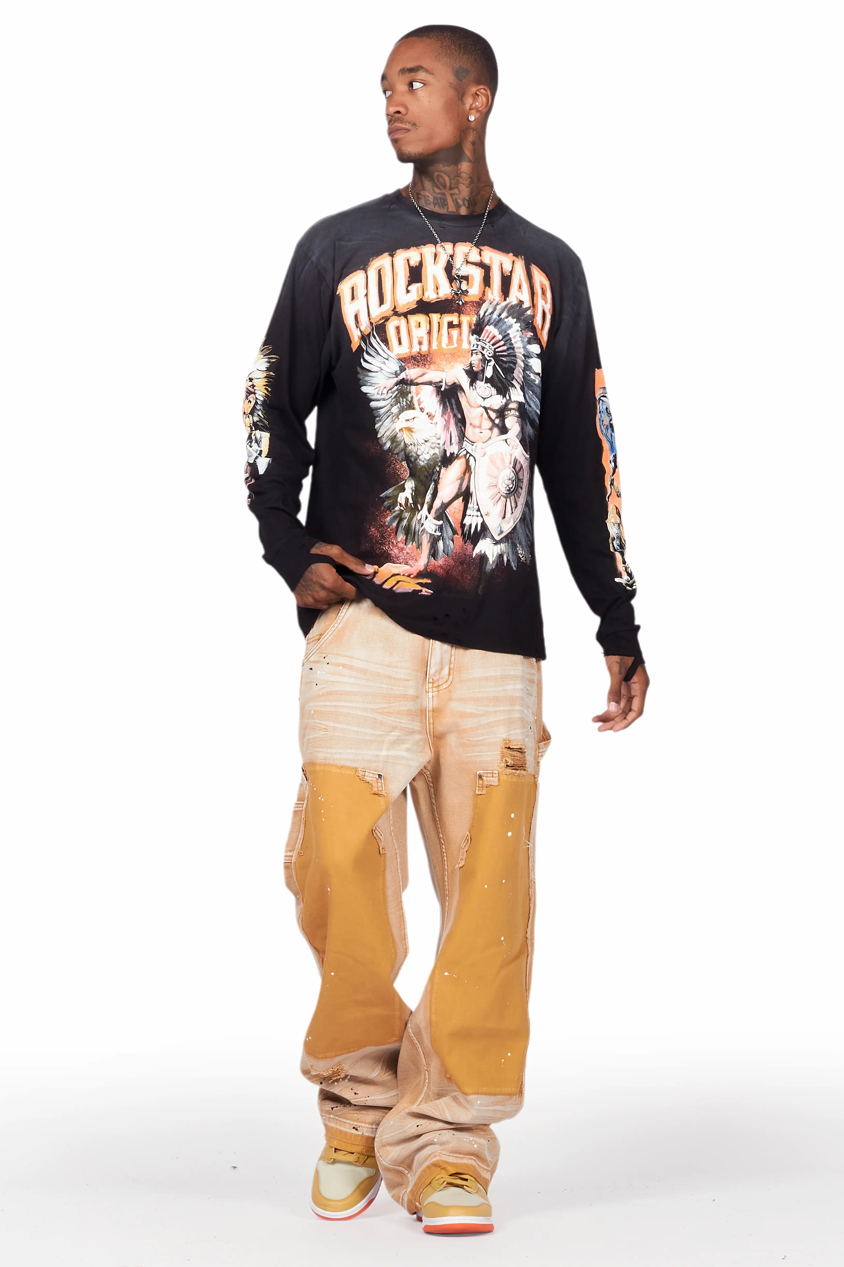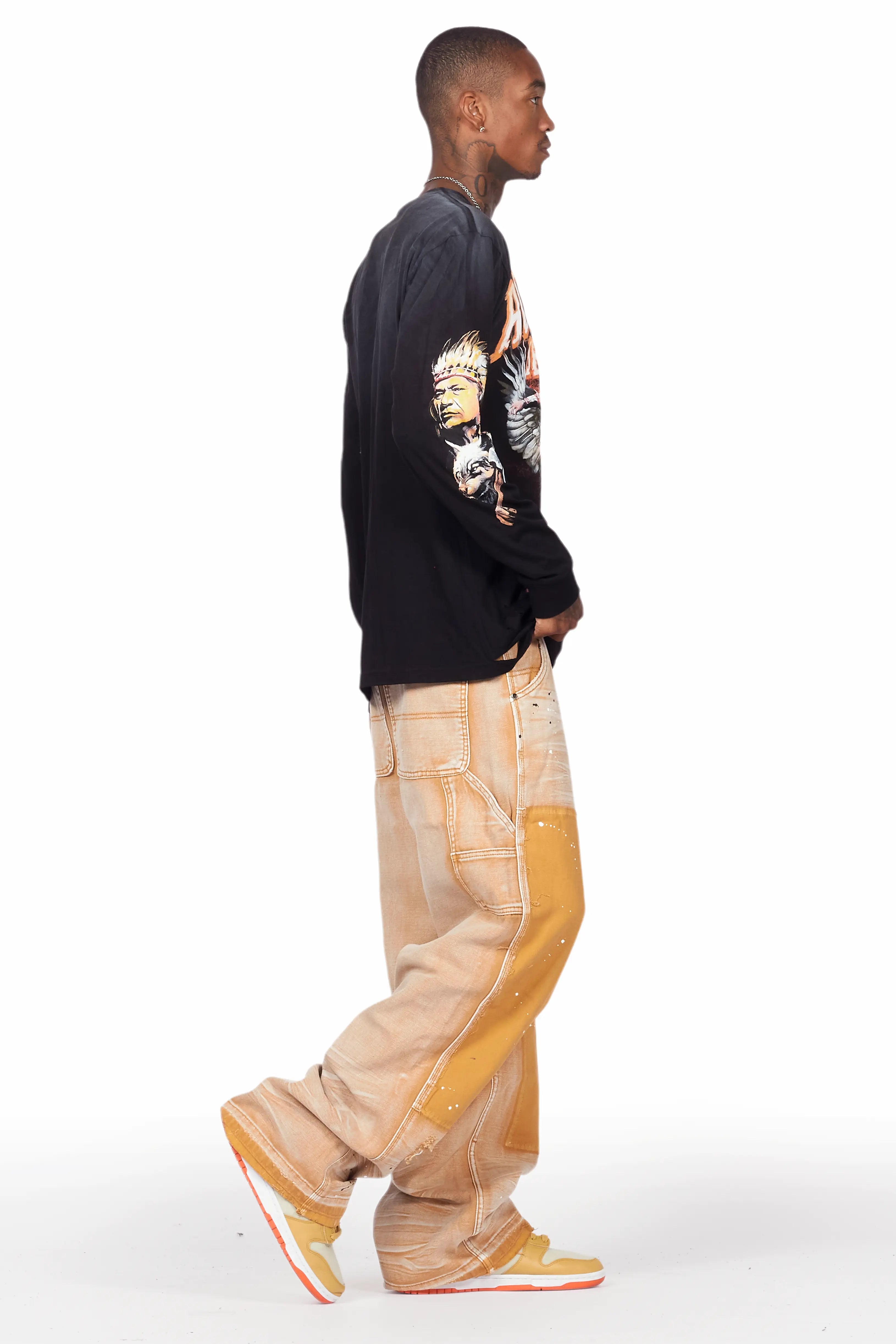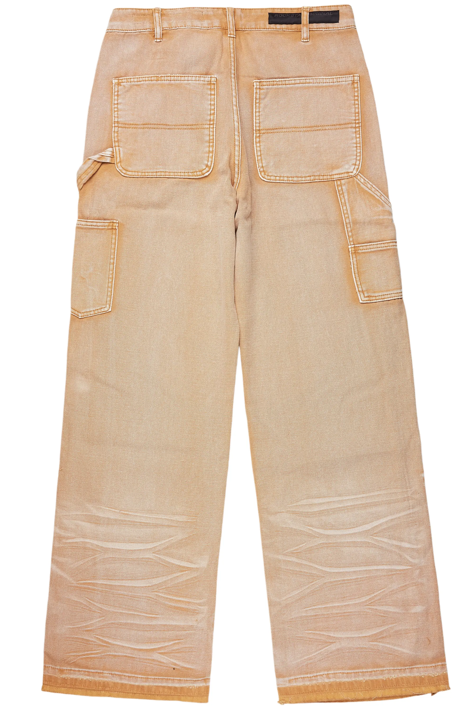An urban baggy carpenter jean for men in beige. Designed with organic cotton and custom detailing for a dope denim streetwear style.