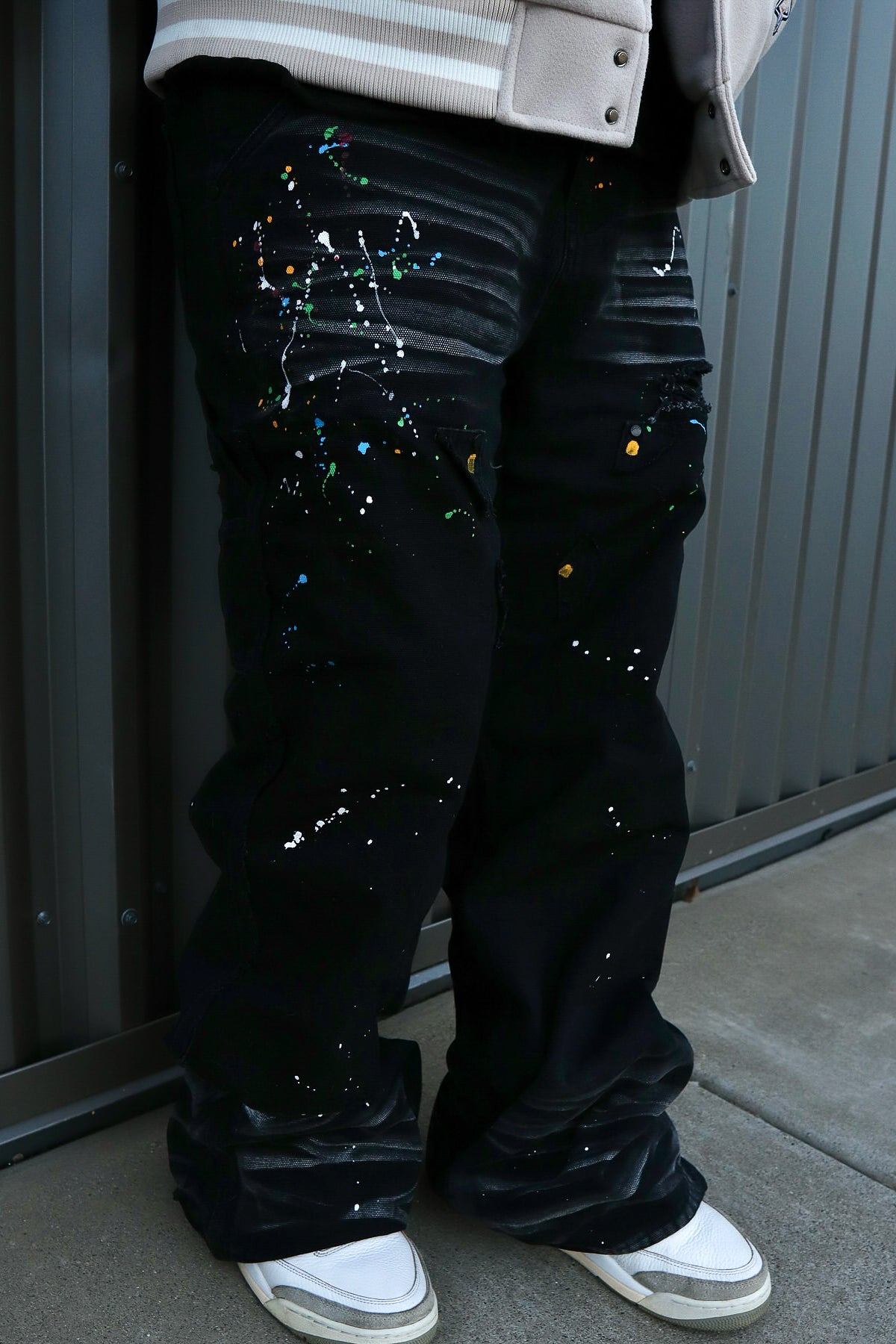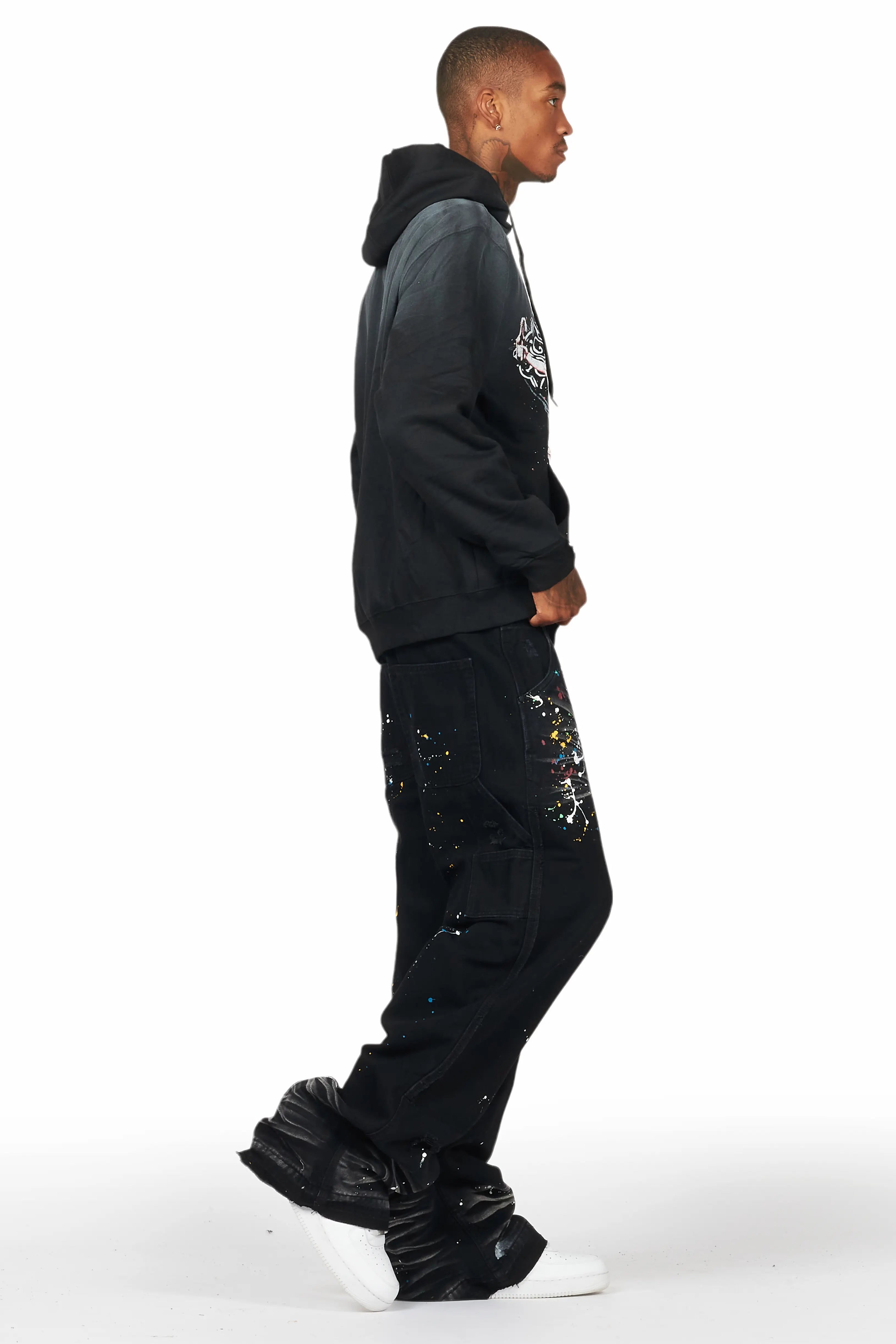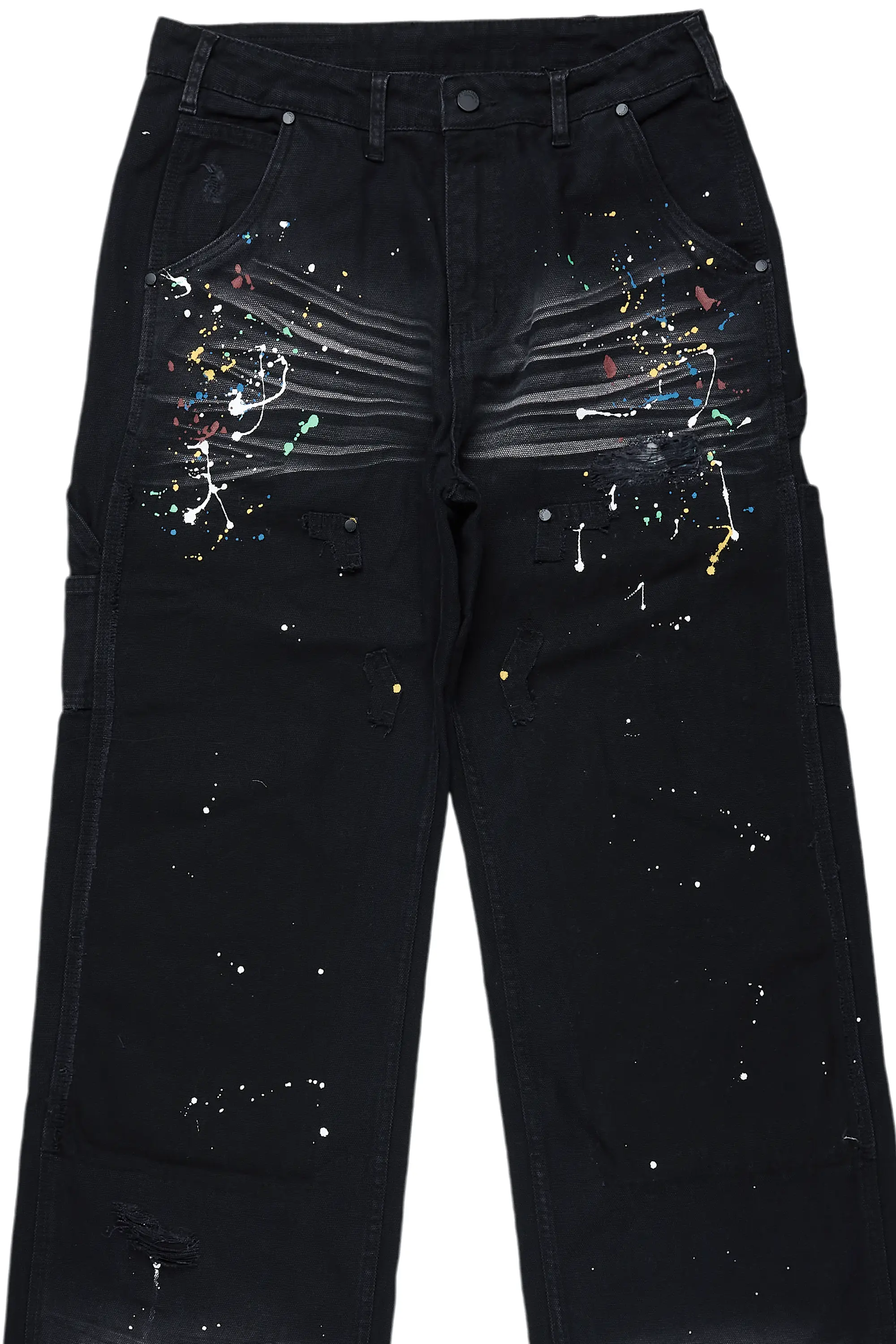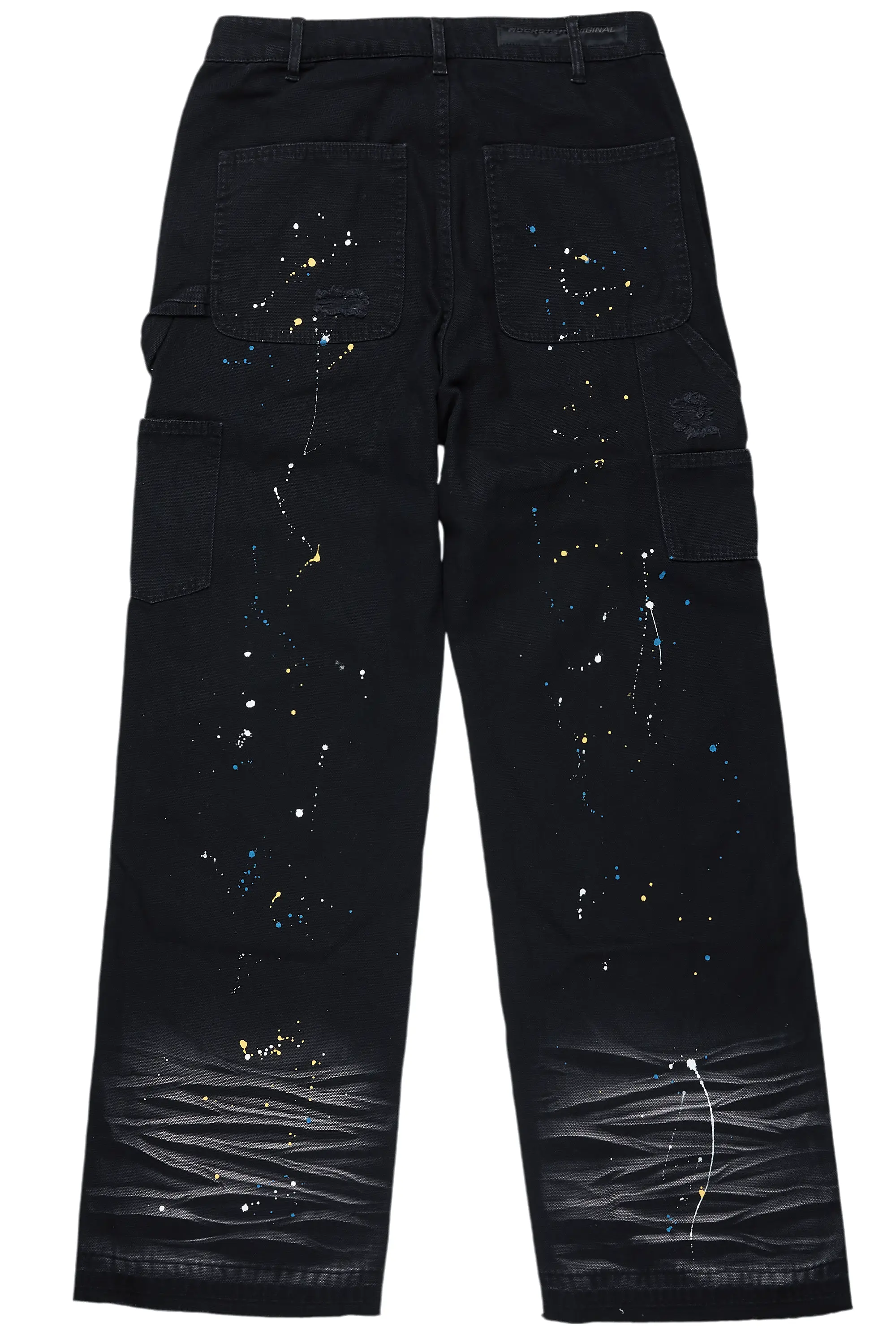 An urban baggy carpenter jean for men in black. Designed with organic cotton and custom detailing for a dope denim streetwear style.