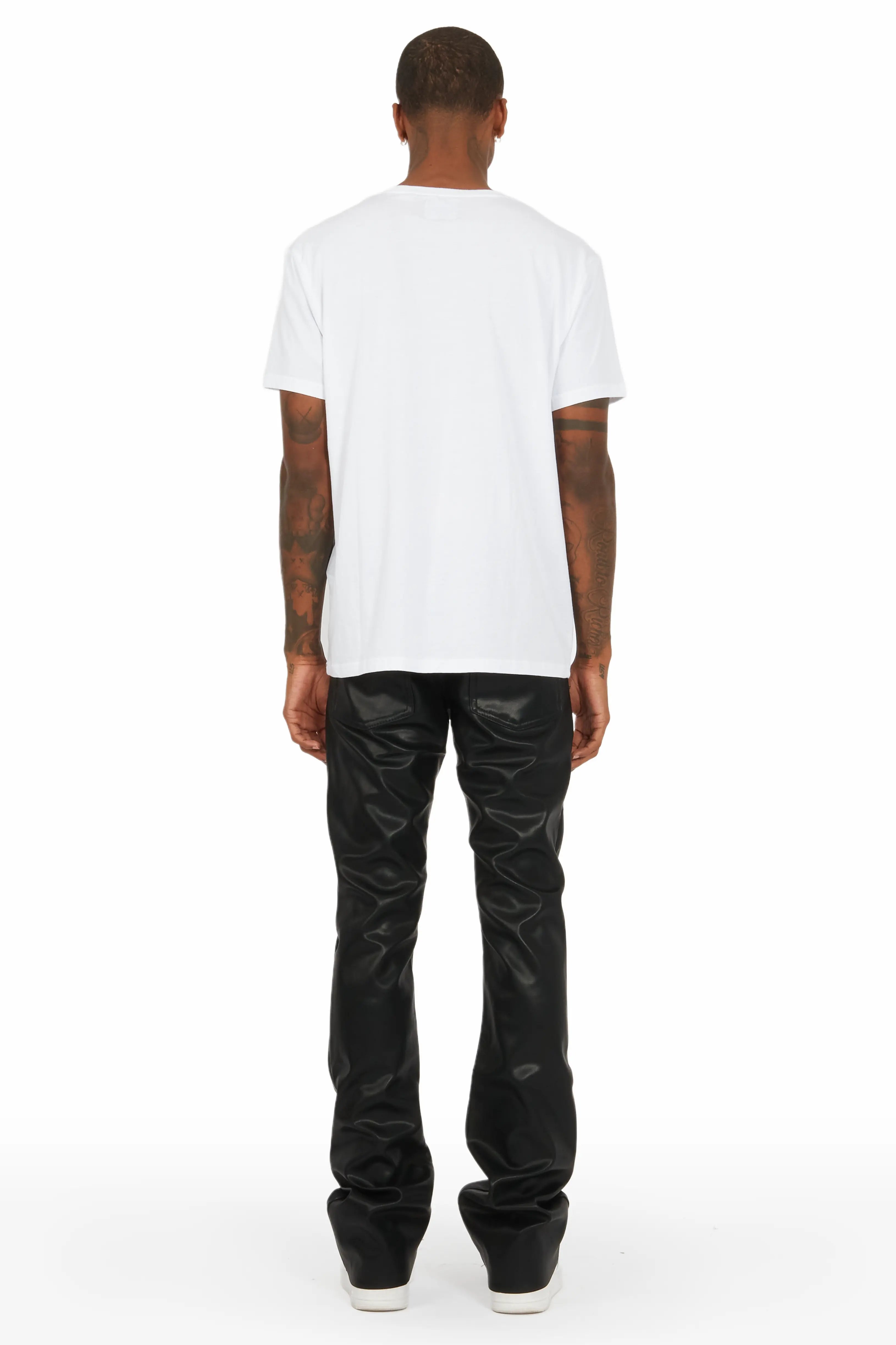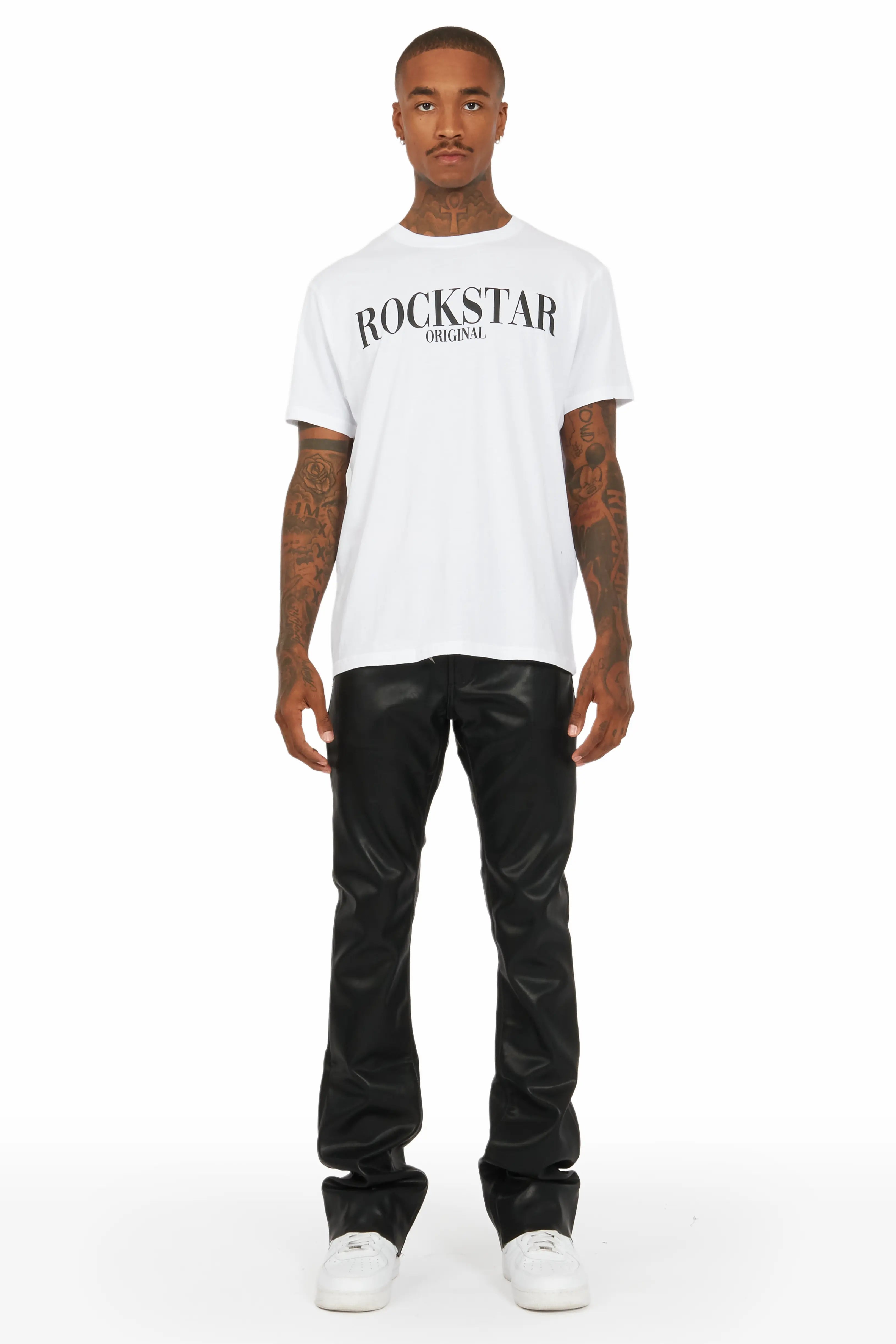 An elevated stacked flare jean for men in black. Designed with PU fabric and a custom Rockstar Original belt loop chain for a must-cop streetwear style.