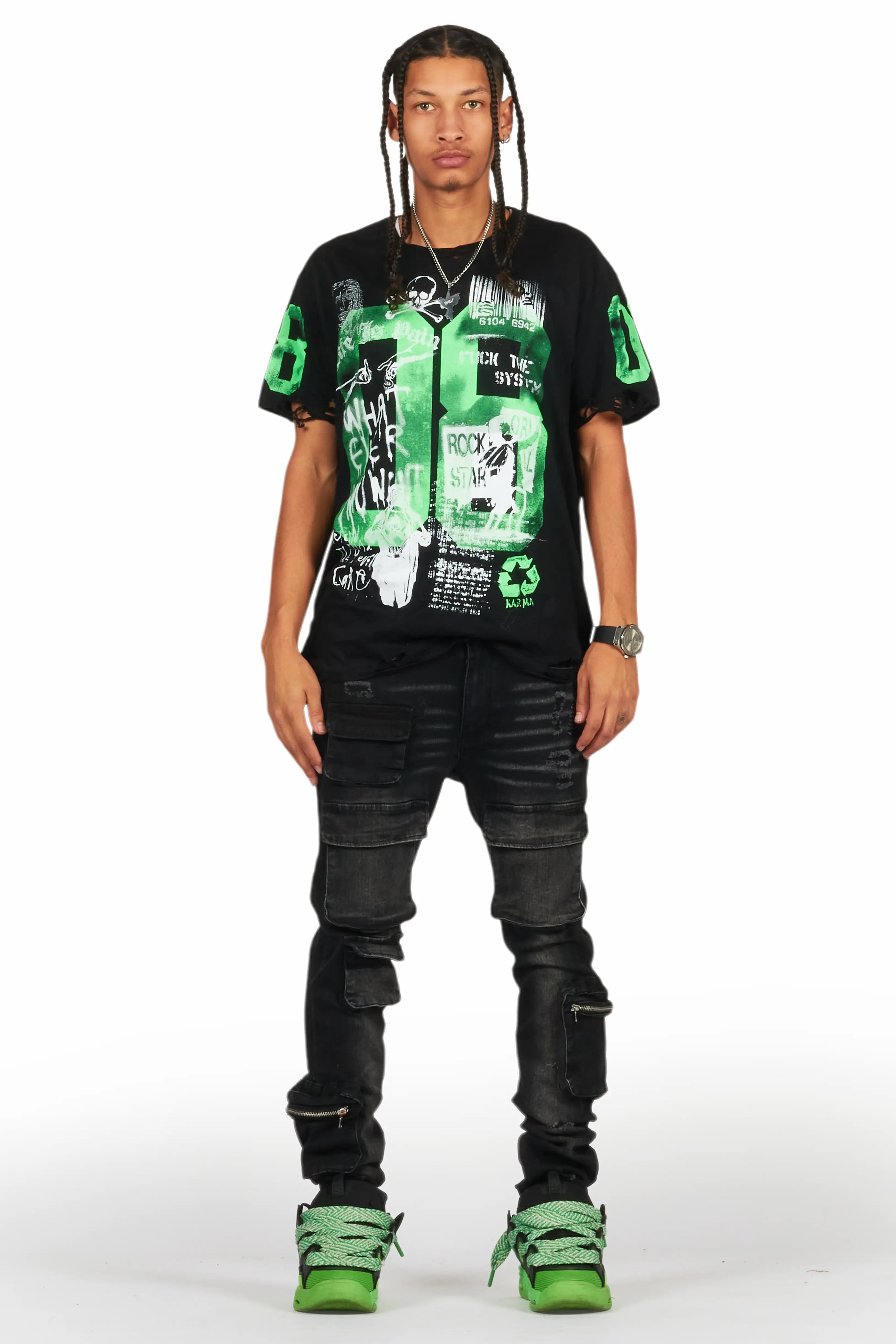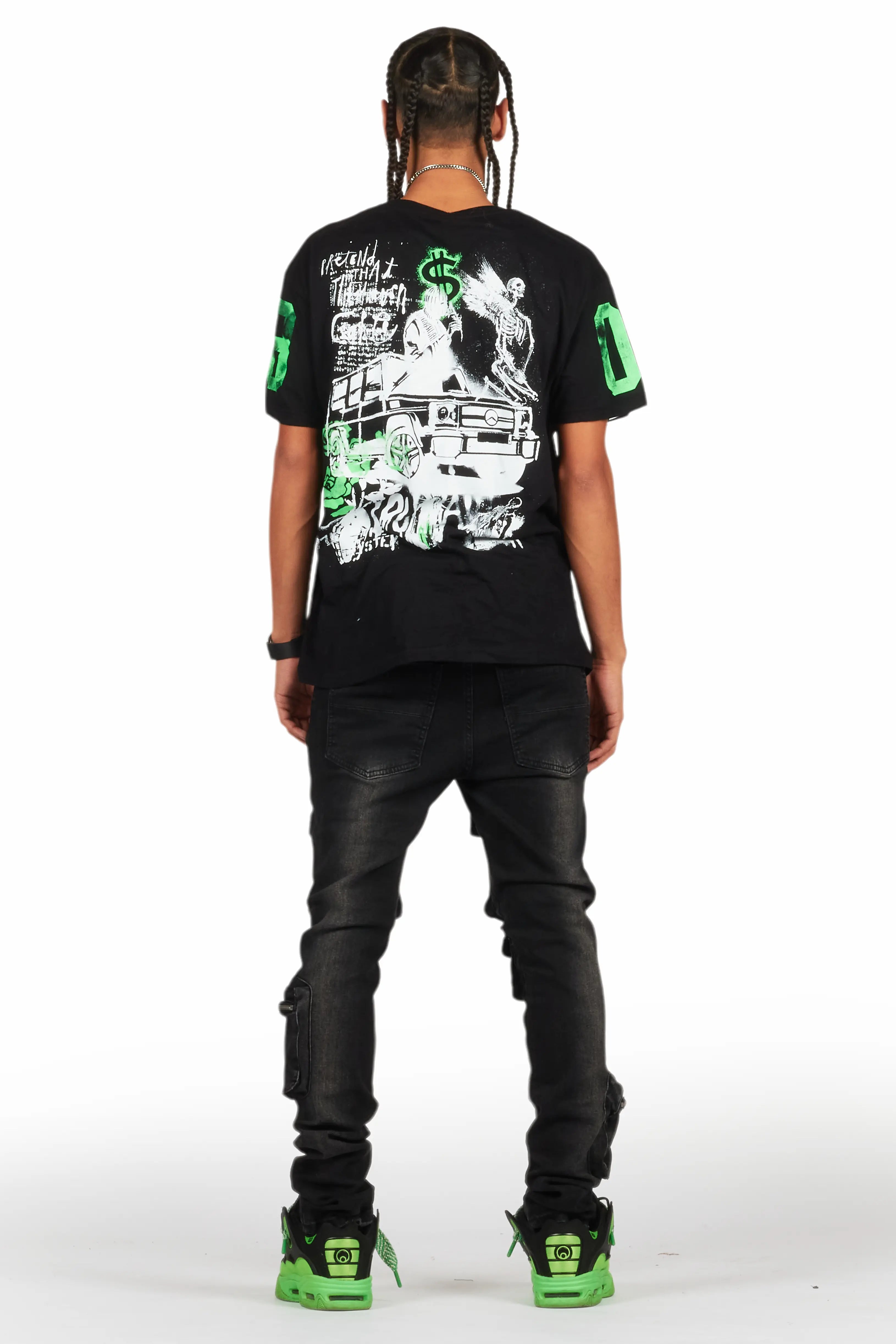 An urban denim skinny jean for men in black. Designed with organic cotton and utility pockets for a dope streetwear style.