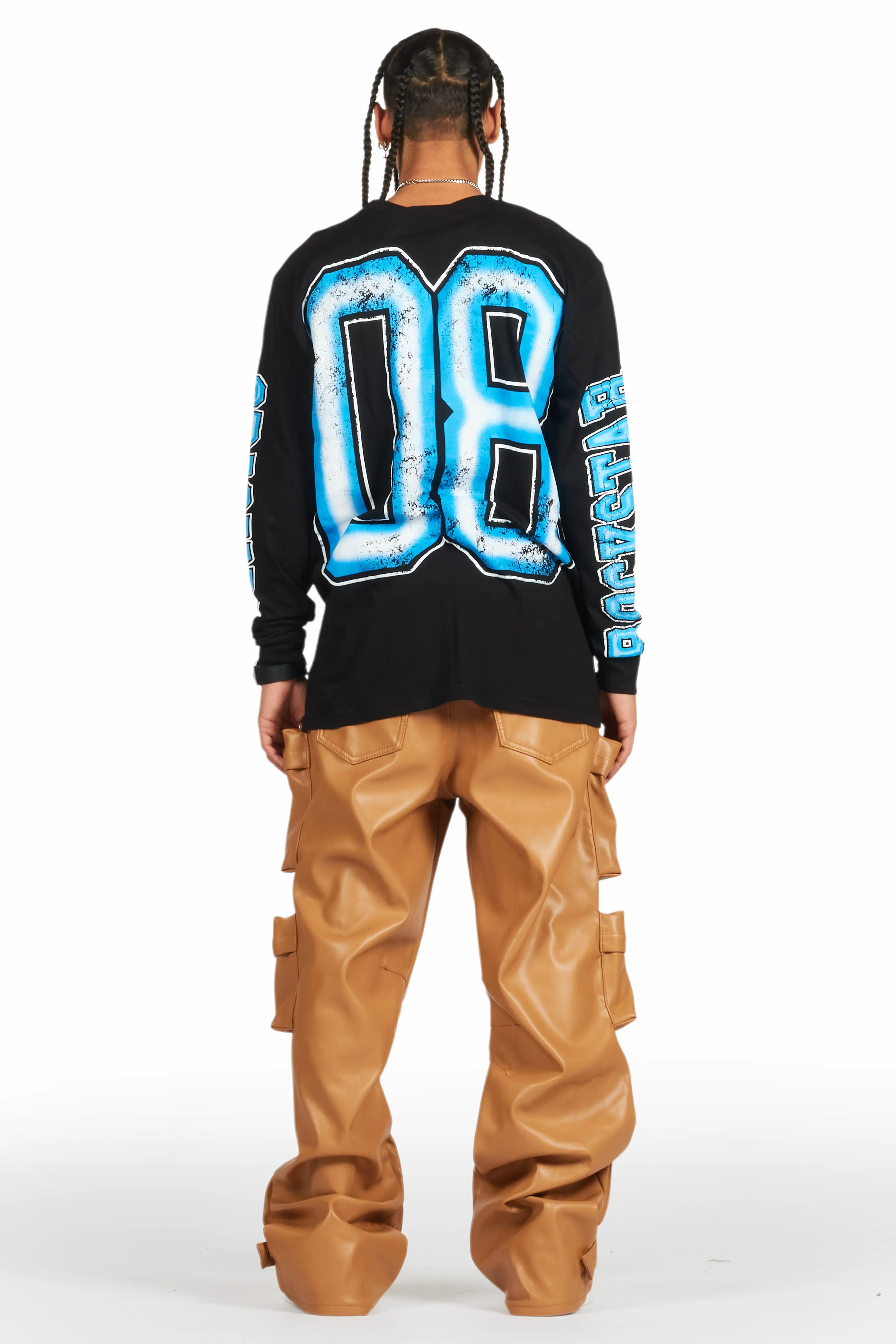 An urban stacked flare jean for men in beige. Designed with PU fabric and utility pockets for a must-cop streetwear style.