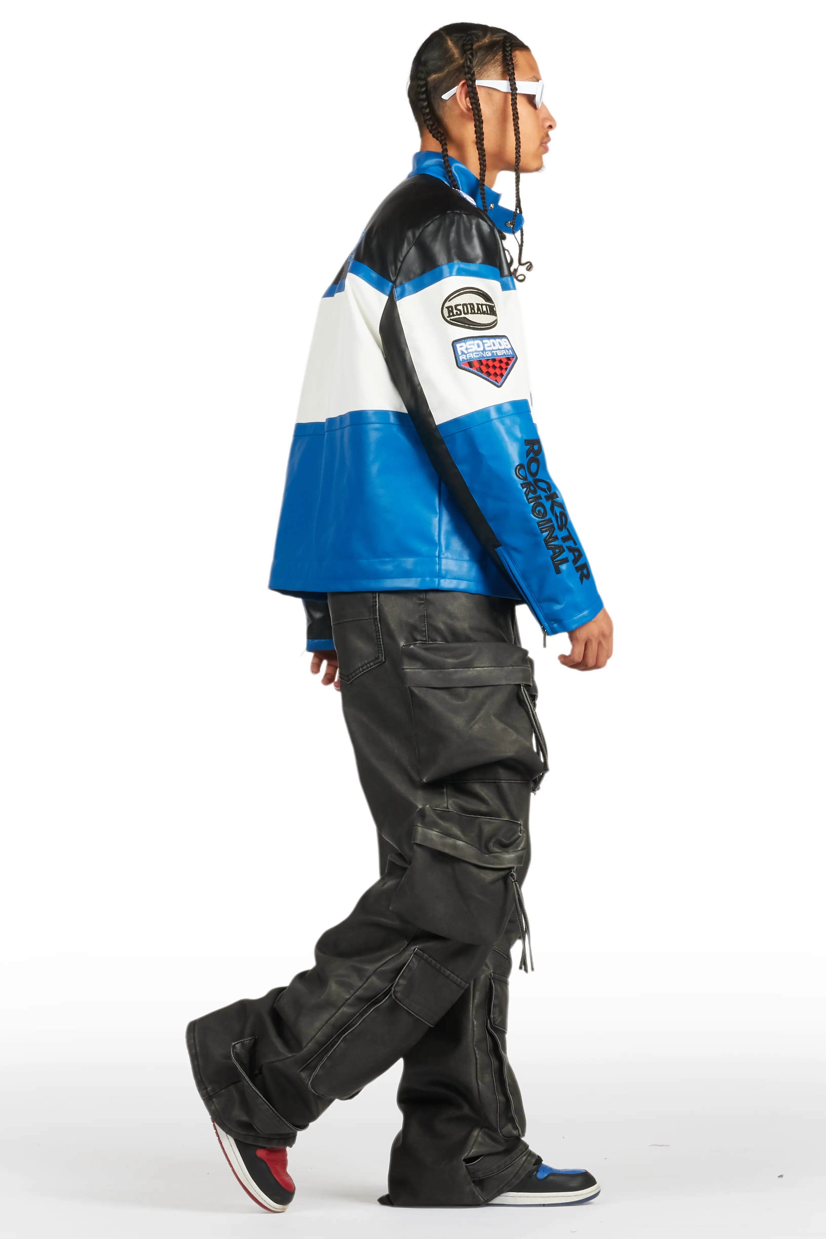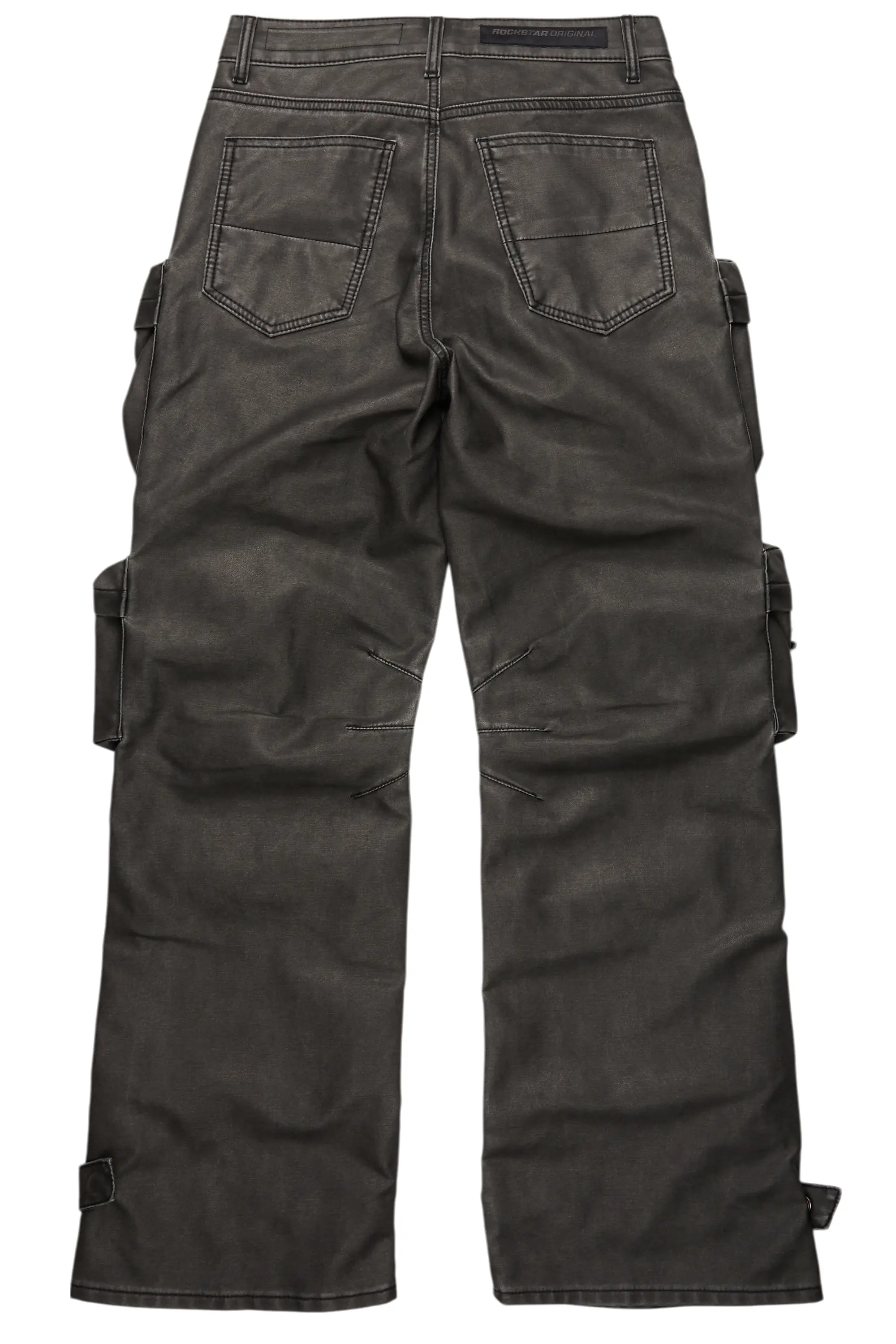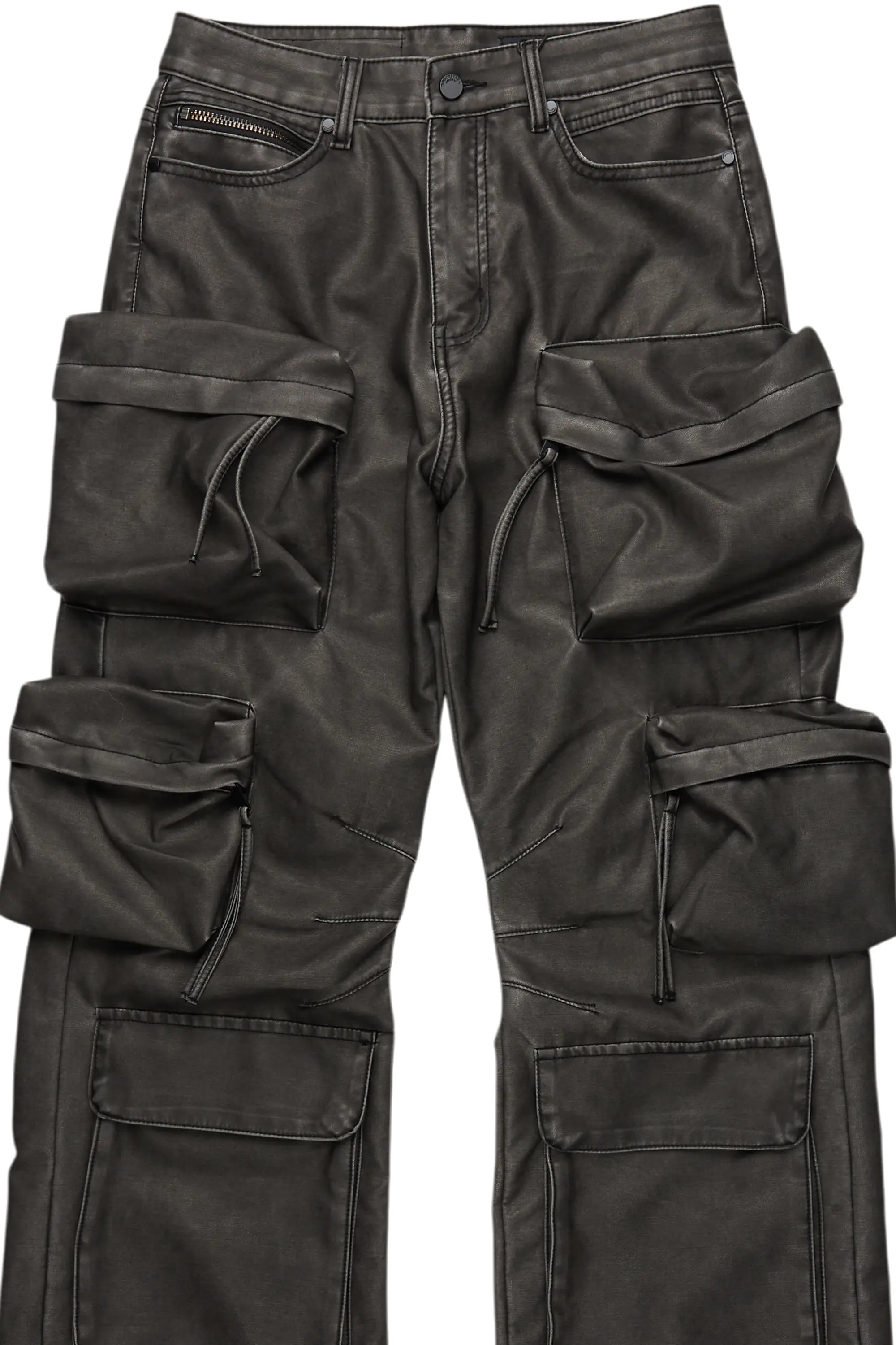An urban stacked flare jean for men in black. Designed with PU fabric and utility pockets for a must-cop streetwear style.