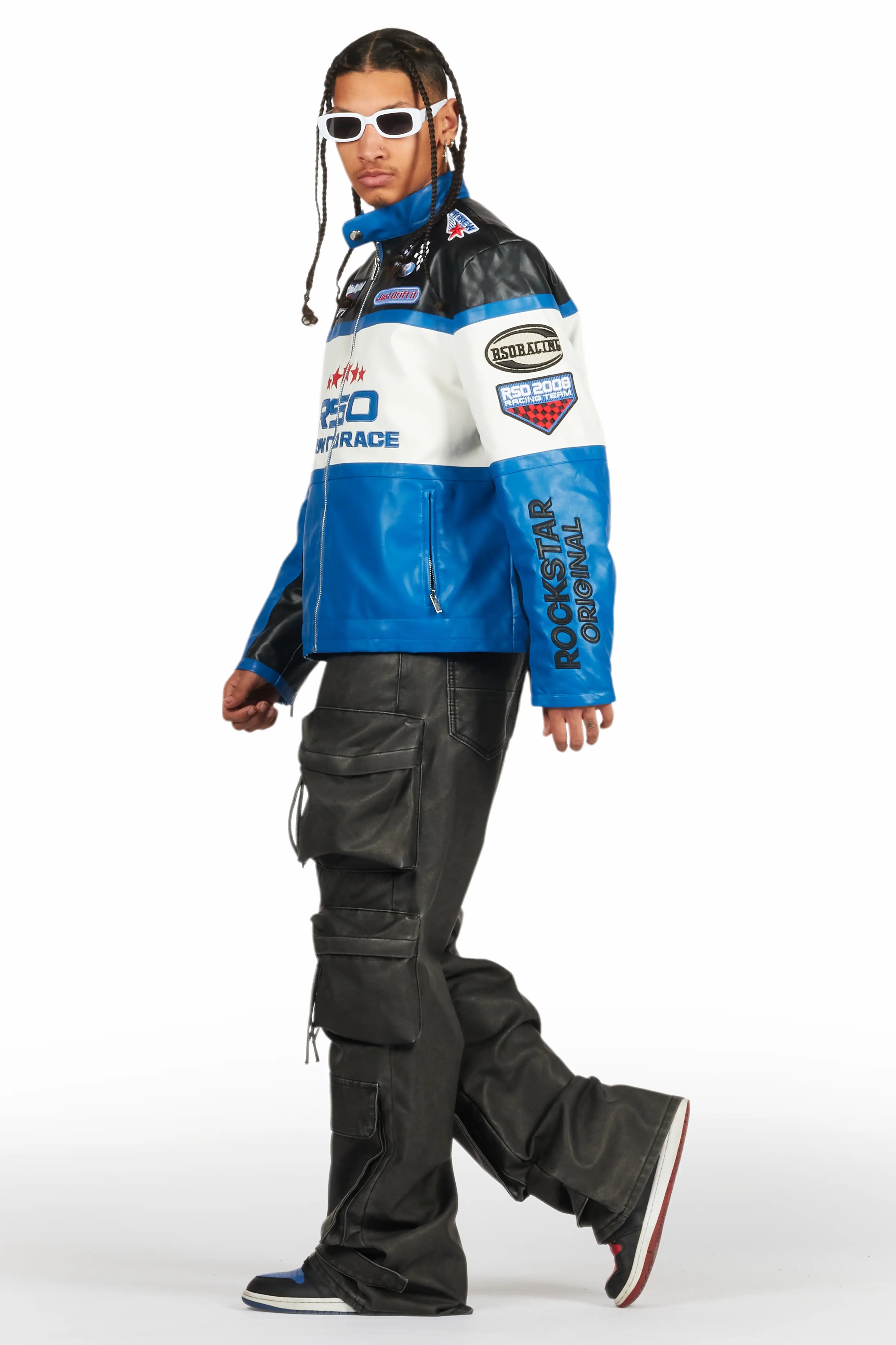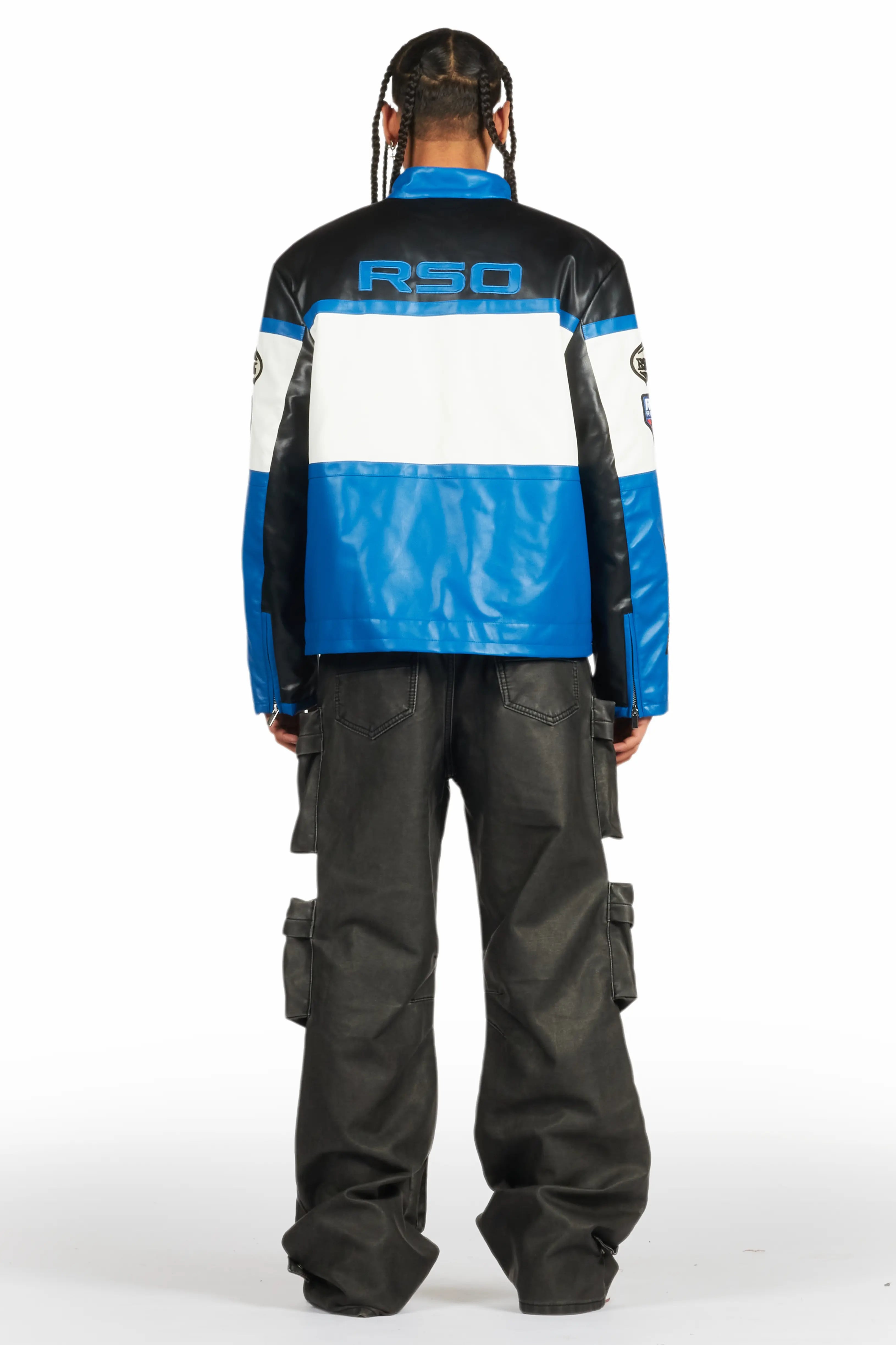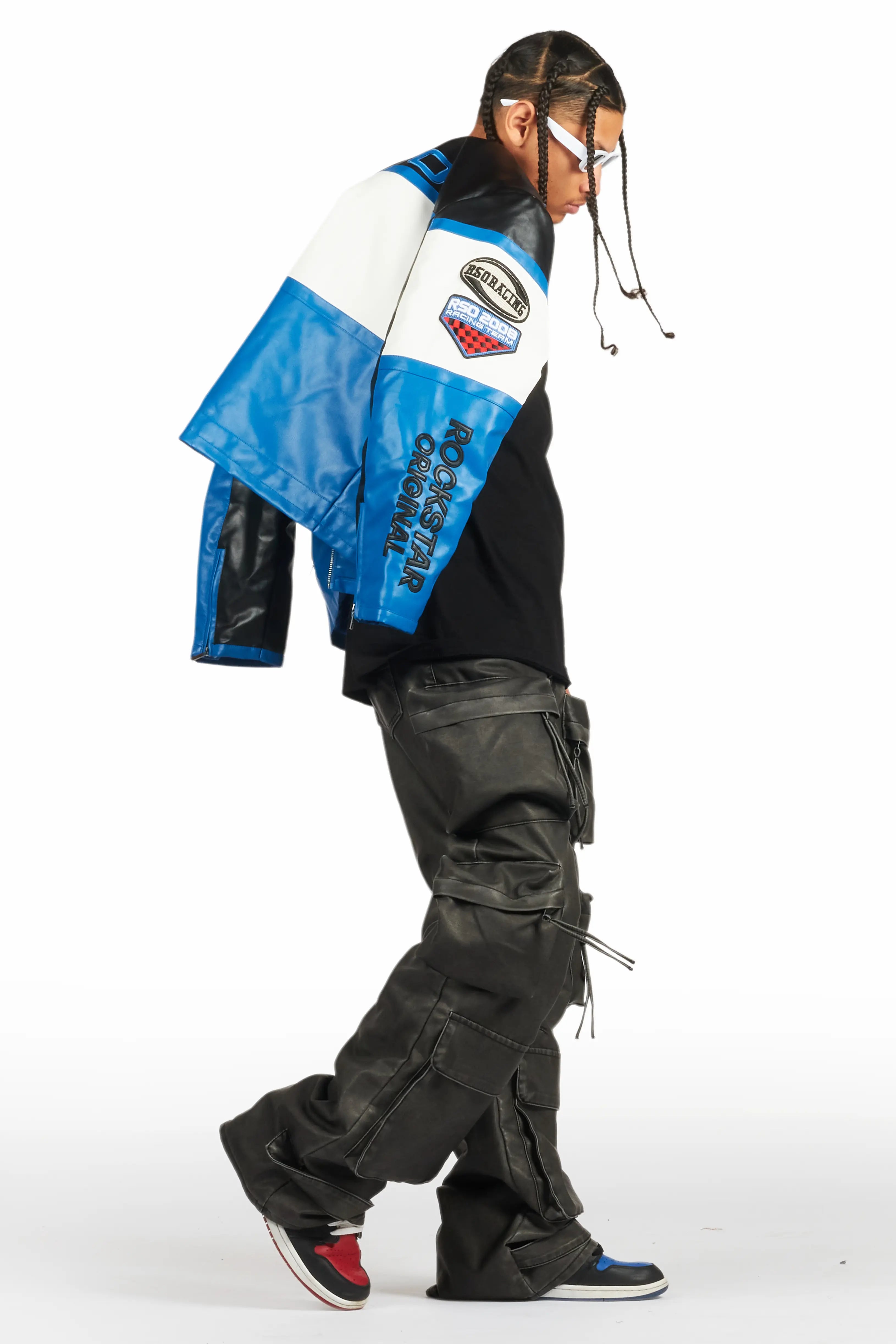 An urban stacked flare jean for men in black. Designed with PU fabric and utility pockets for a must-cop streetwear style.
