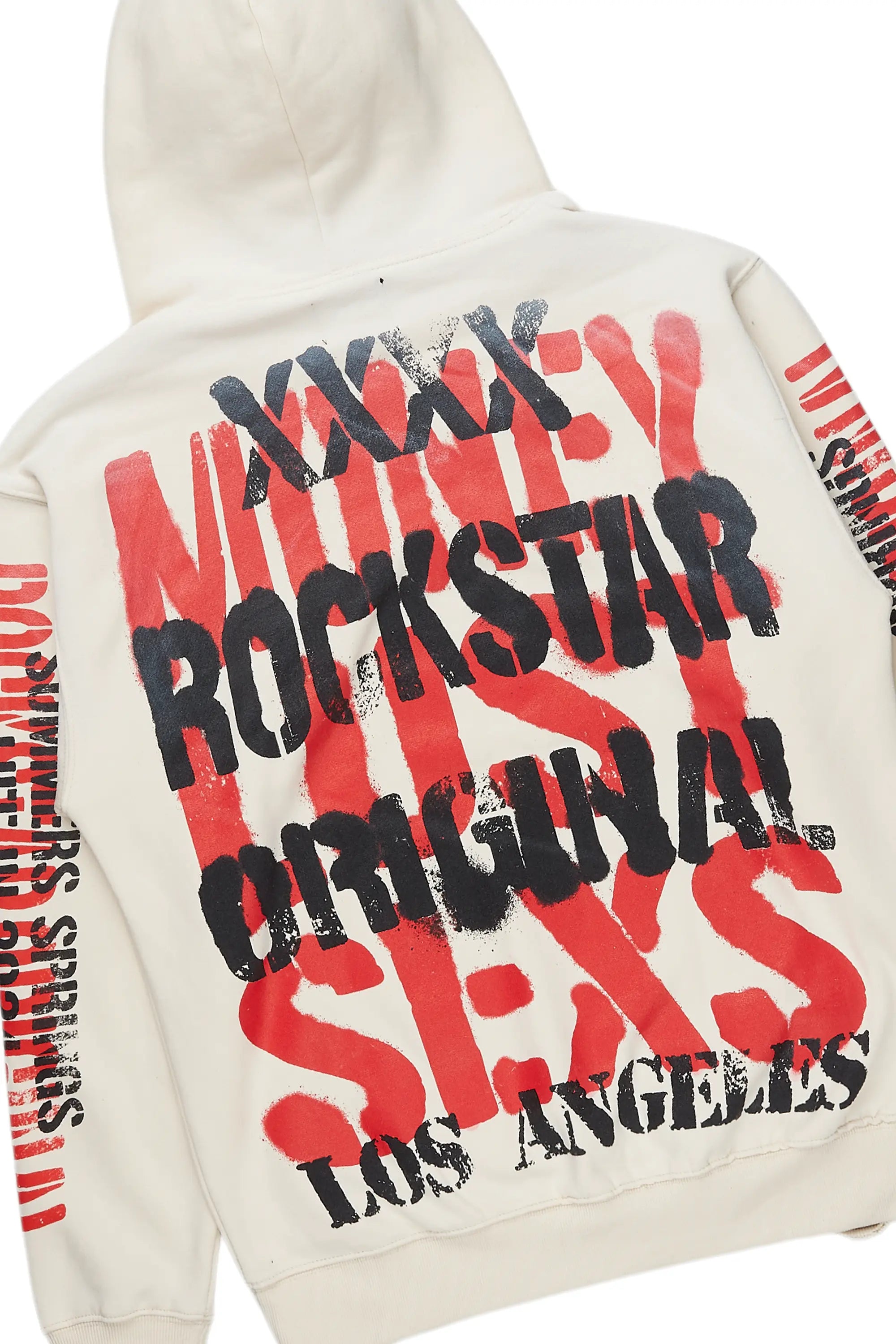 An urban two-piece hoodie and stacked cargo jean set for men. Designed with organic cotton and extra long legs for a dope streetwear outfit set.