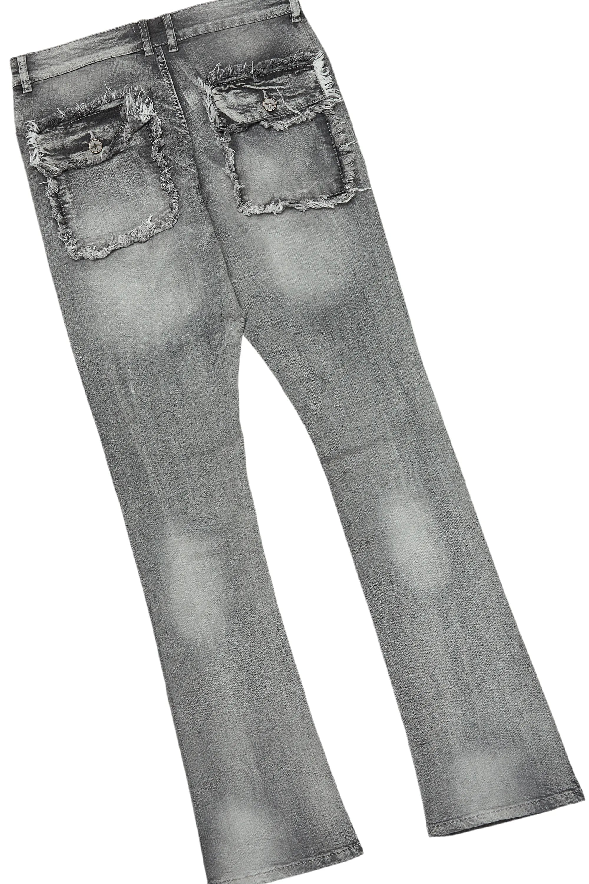 • All Seeing Eyes White/Grey Long Sleeve T-Shirt/Stacked Flare Cargo Jean Bundle