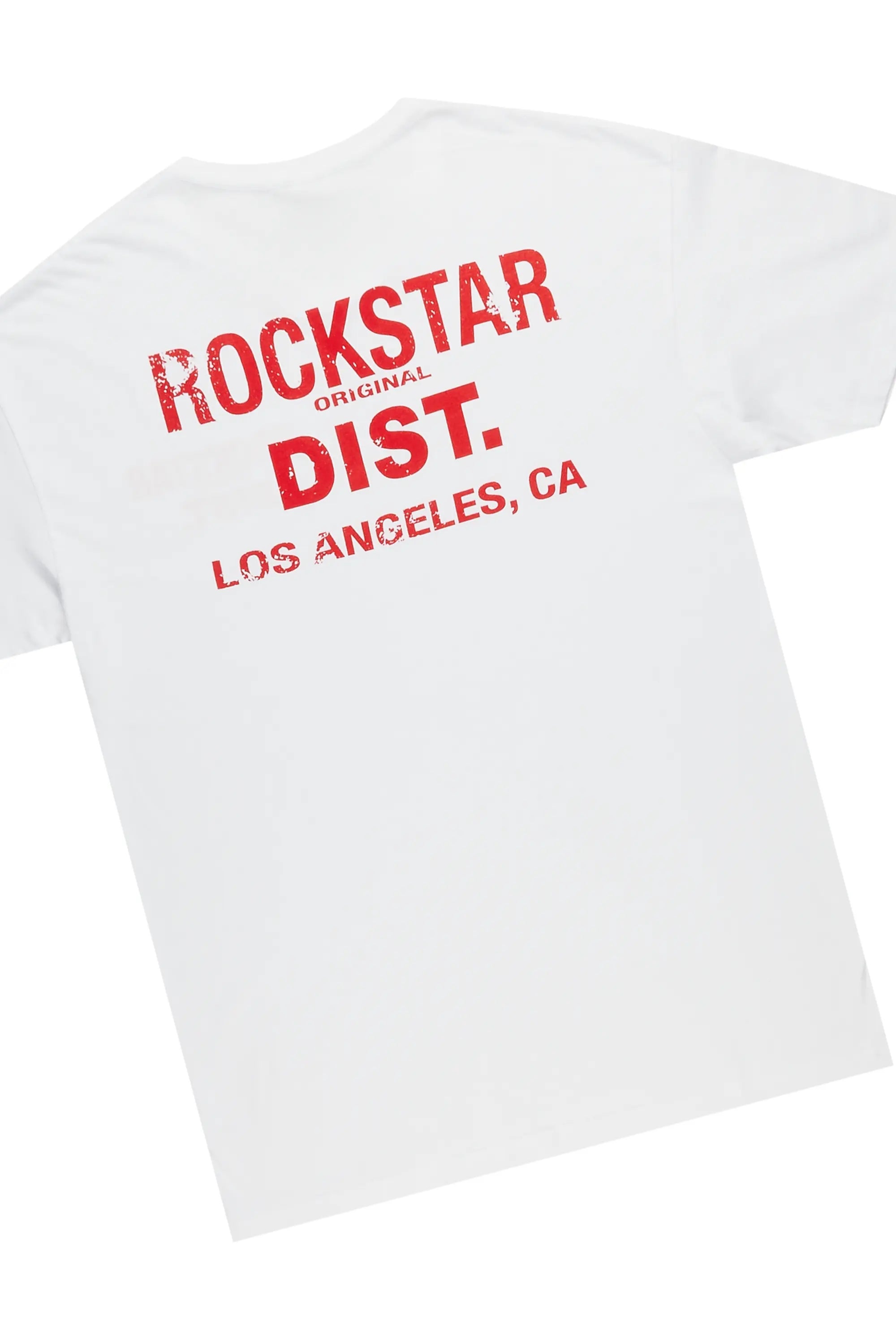 An urban two-piece graphic tee and stacked cargo jean set for men. Designed with organic cotton and extra long legs for a dope streetwear outfit set.