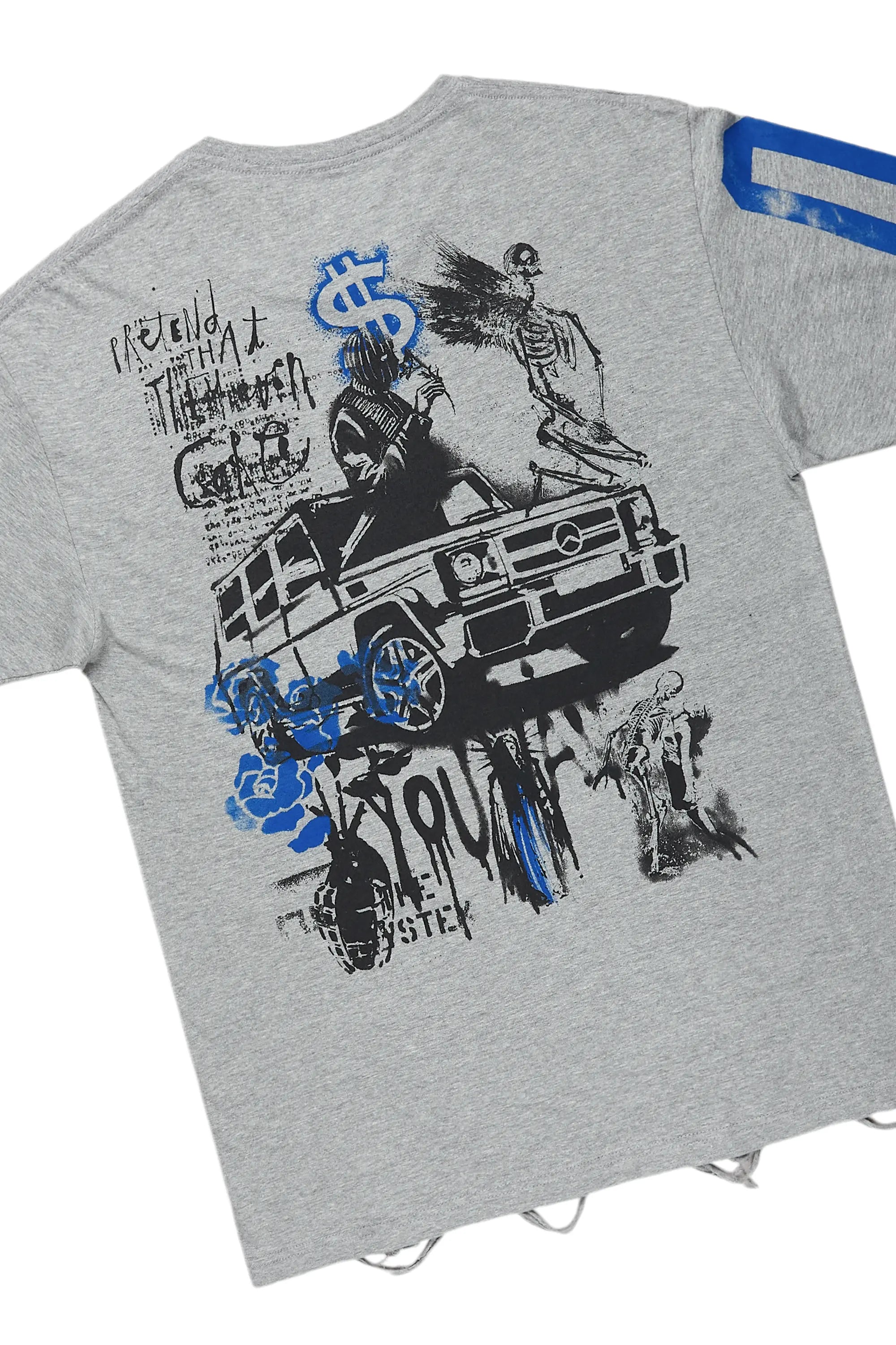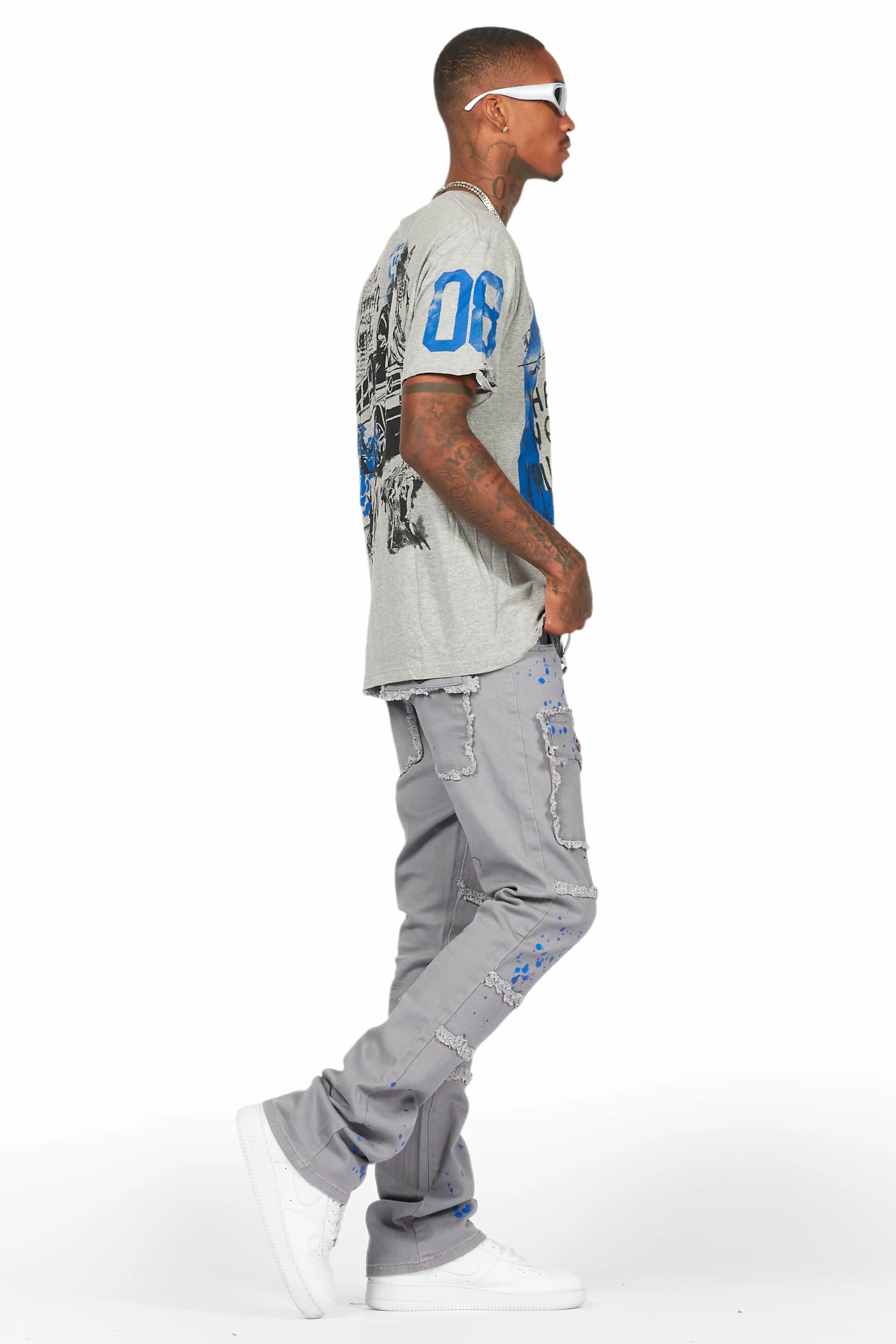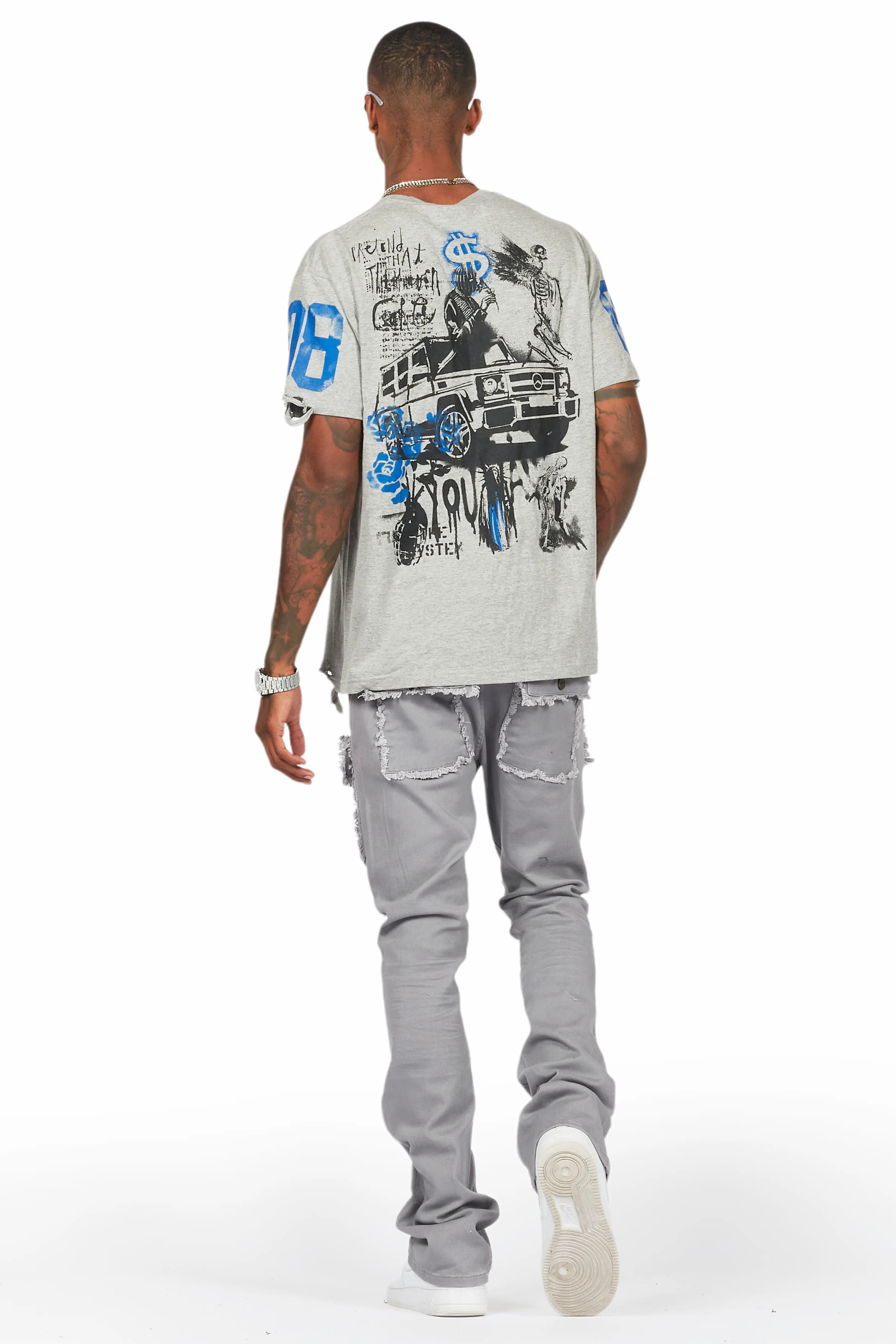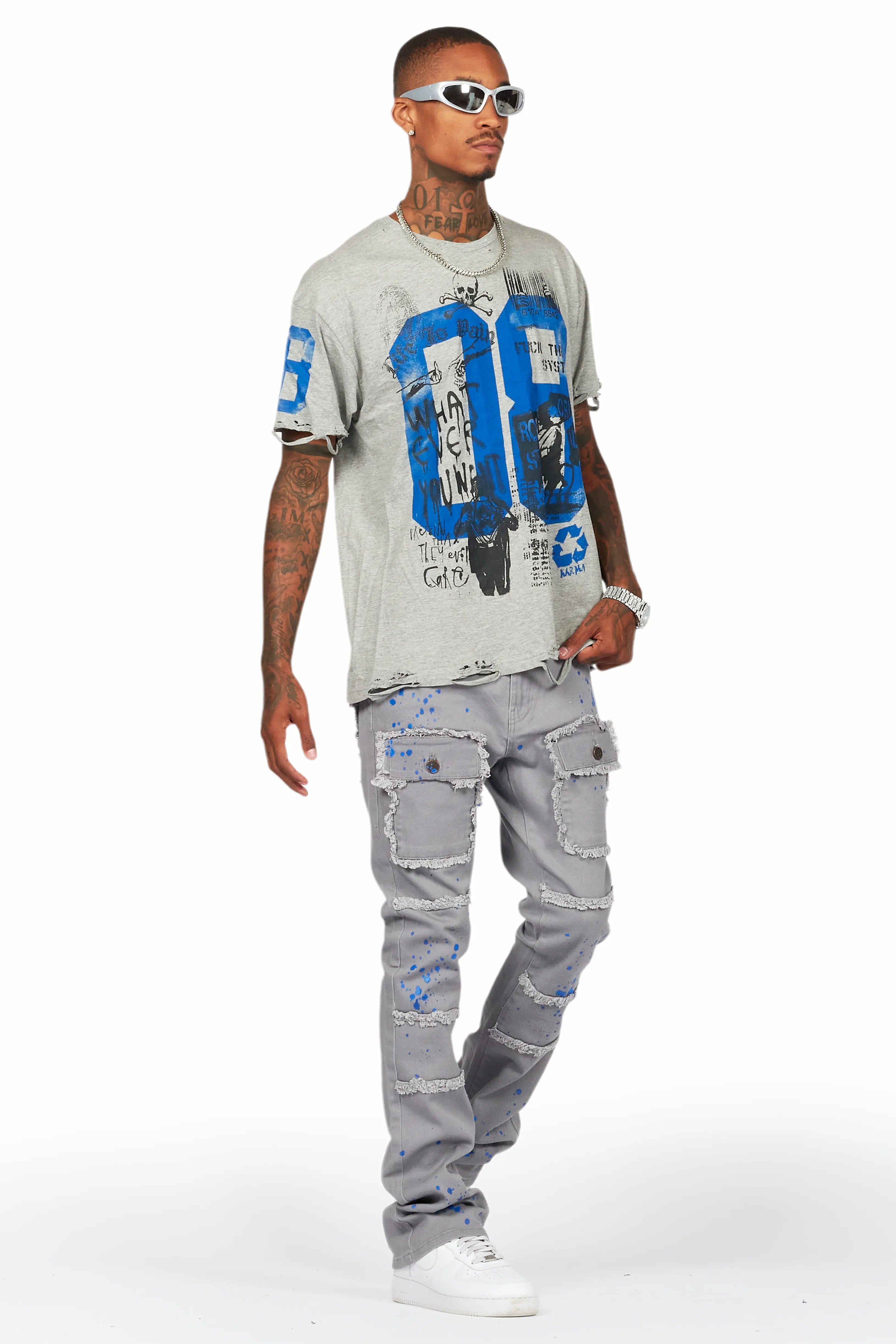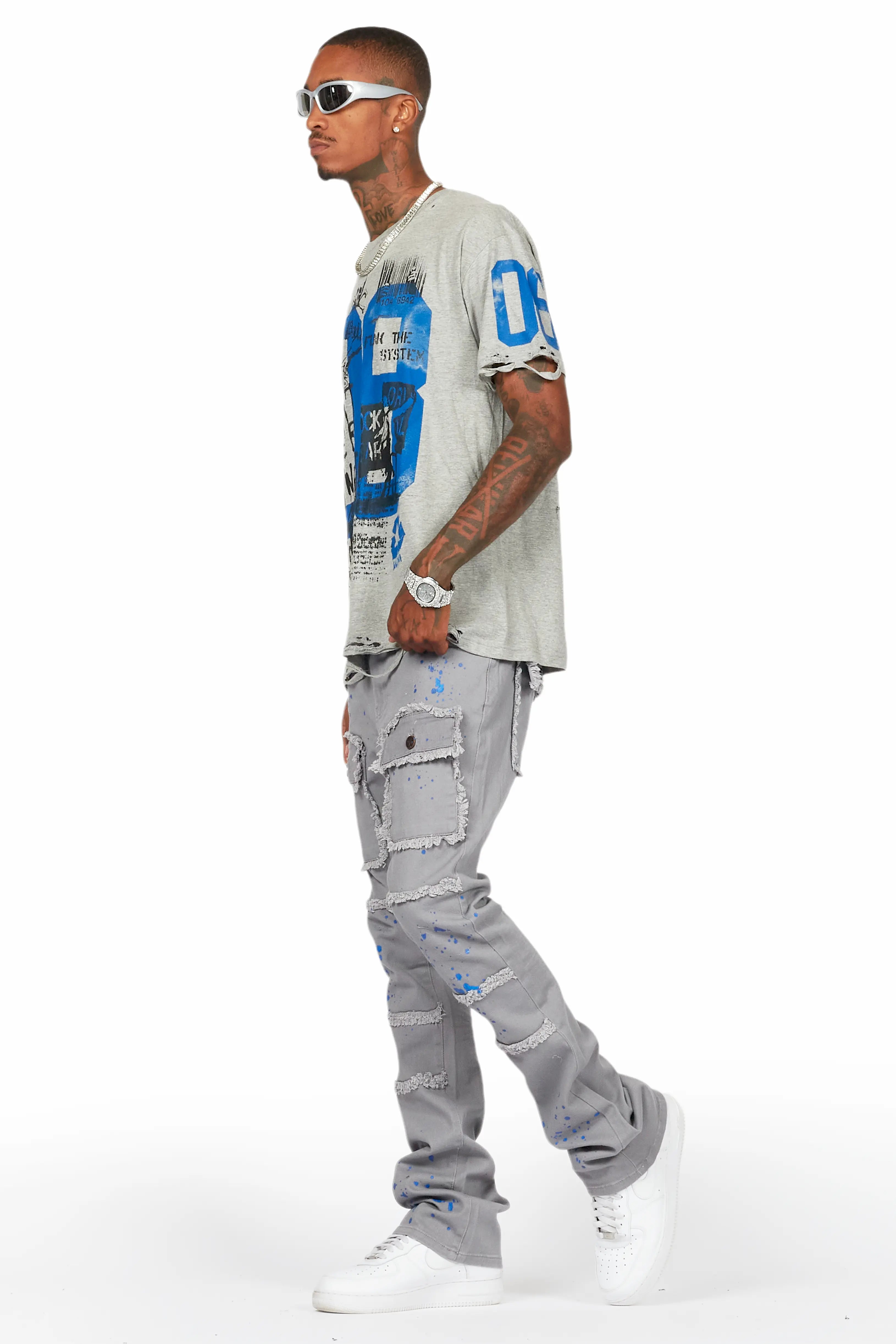 An urban two-piece graphic tee and stacked cargo jean set for men. Designed with organic cotton and extra long legs for a dope streetwear outfit set.