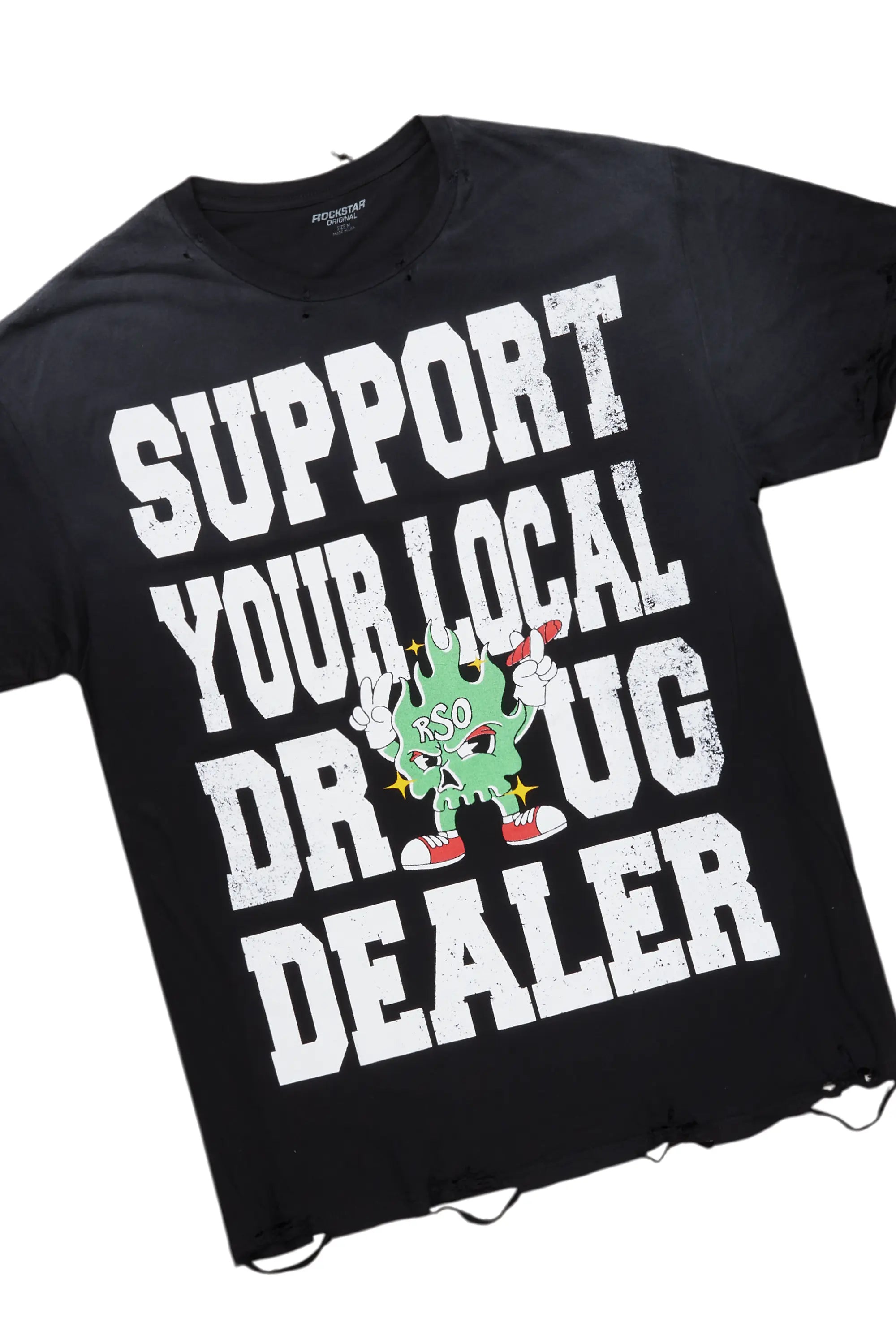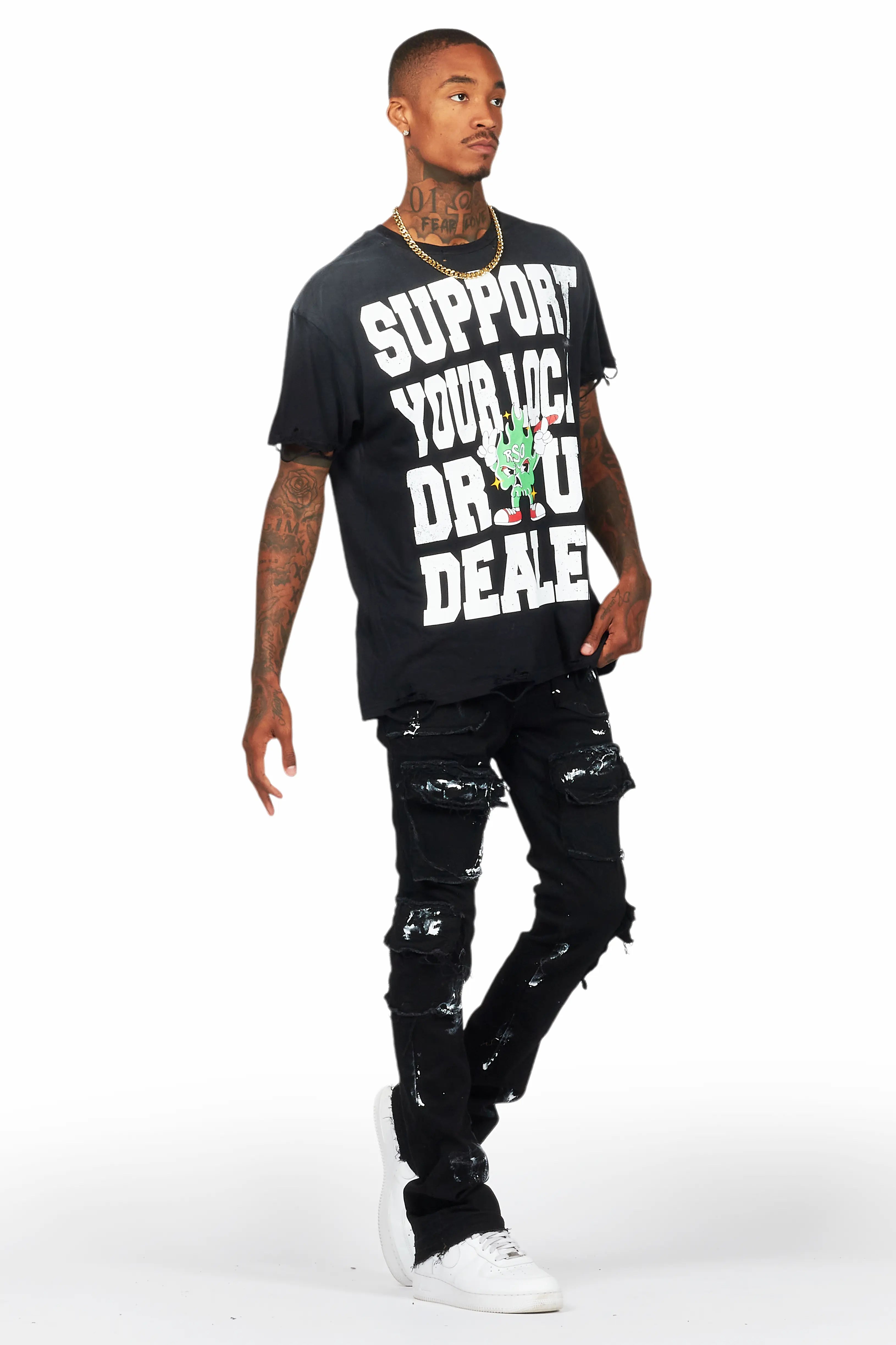 An urban two-piece graphic tee and stacked flare jean set for men. Designed with organic cotton and extra long legs for a dope streetwear outfit set.
