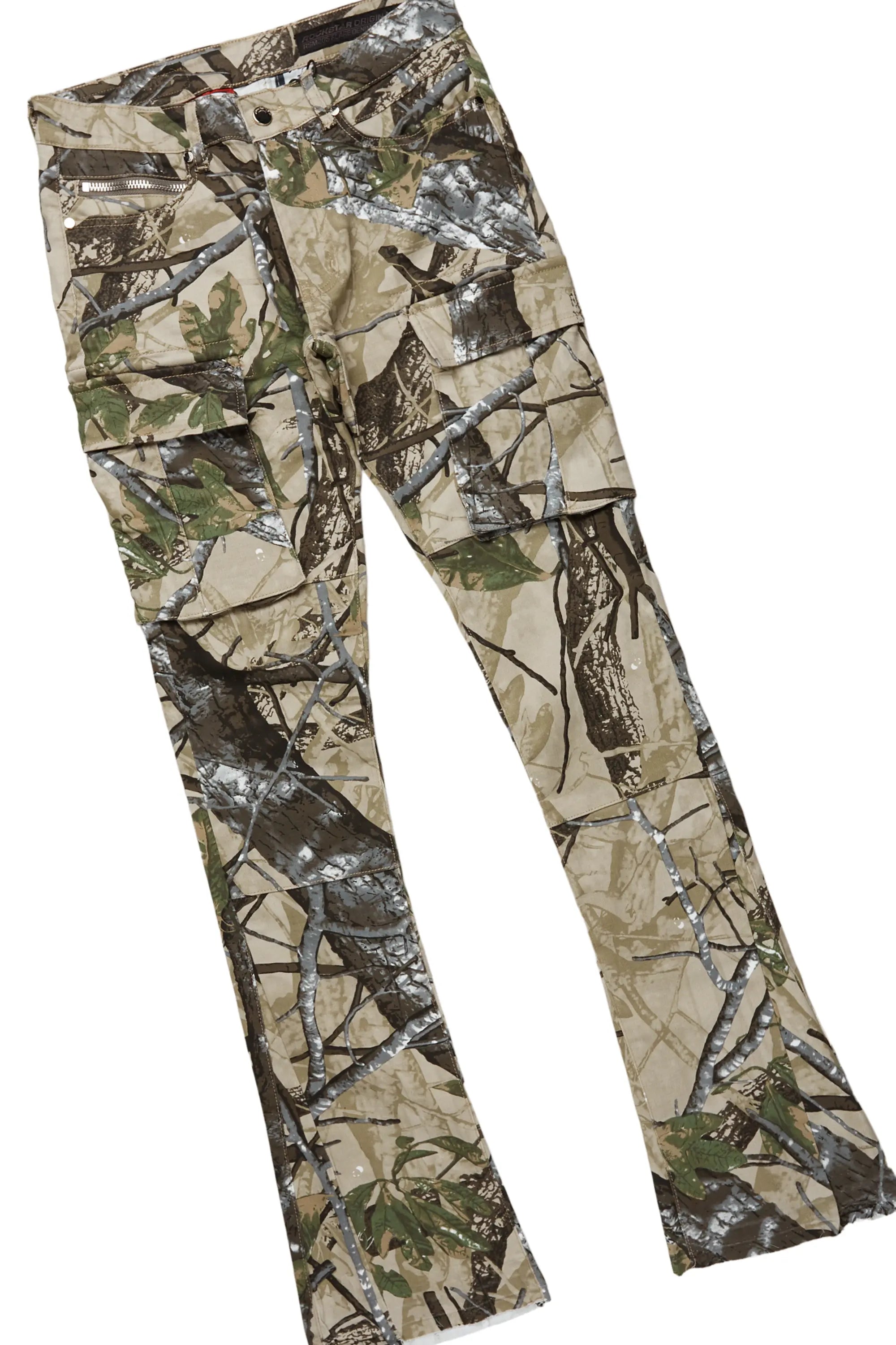 An urban two-piece long sleeve tee and stacked cargo jean set for men. Designed with organic cotton and extra long legs for a dope streetwear outfit set.