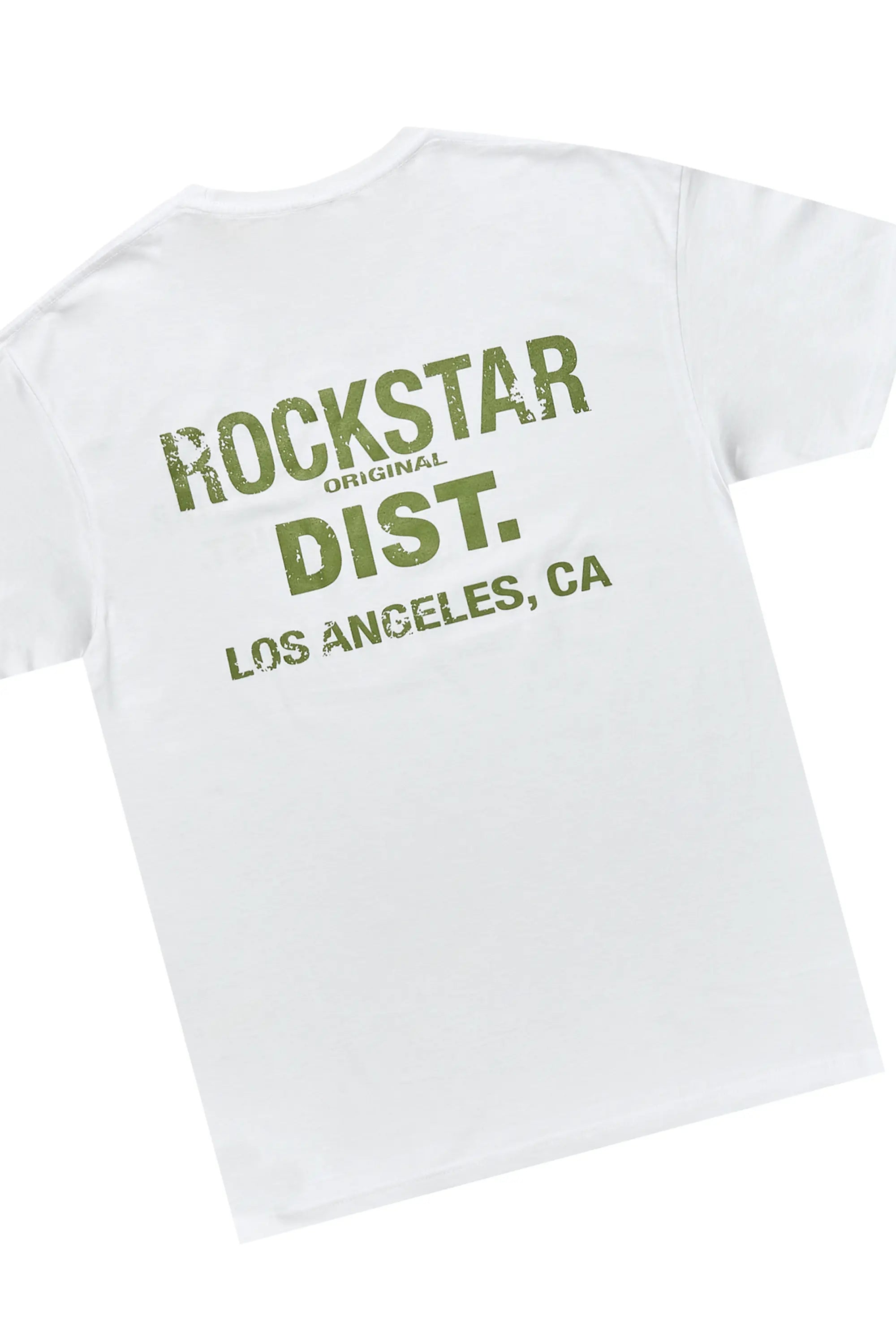 An urban two-piece graphic tee and stacked cargo jean set for men. Designed with organic cotton and extra long legs for a dope streetwear outfit set.