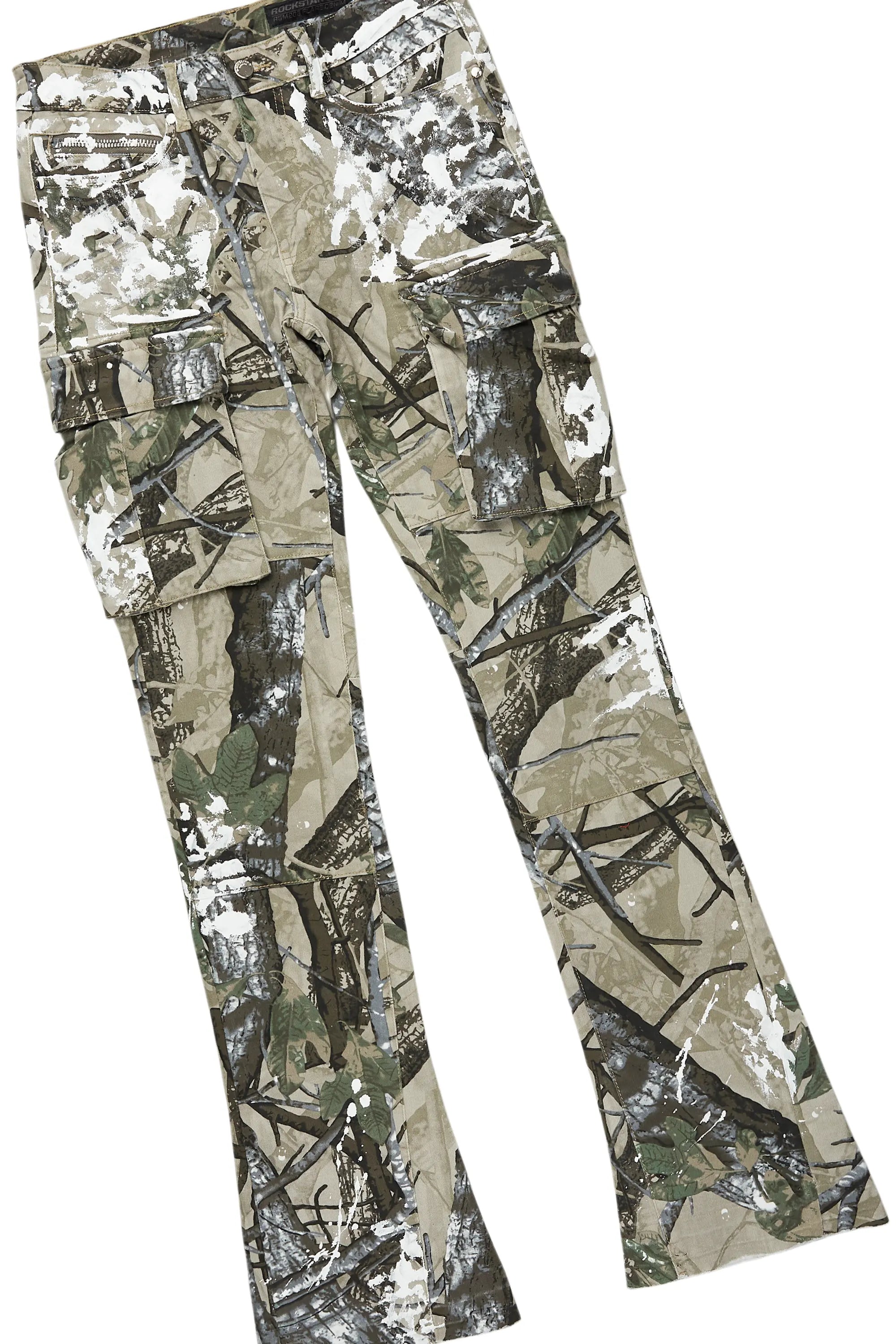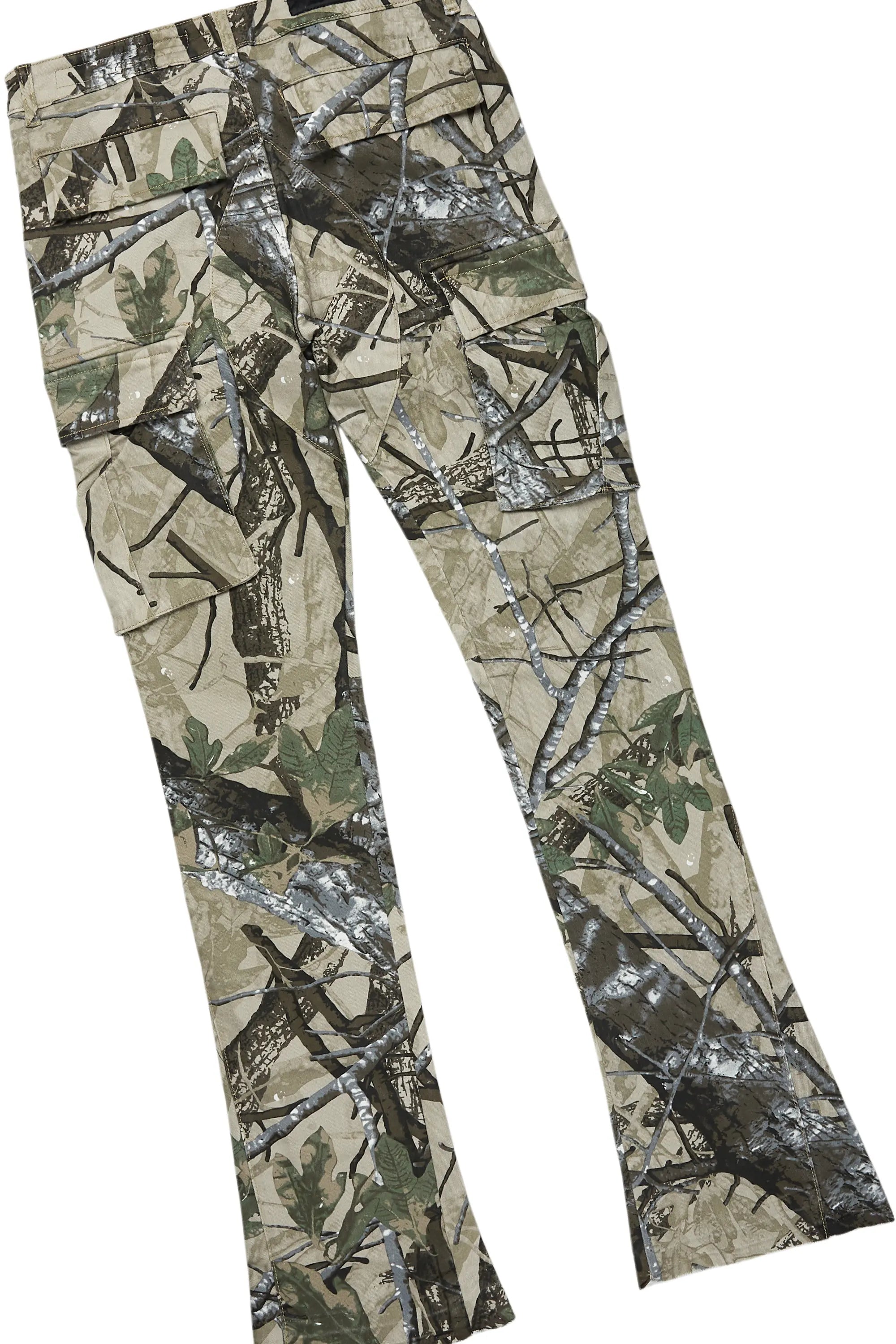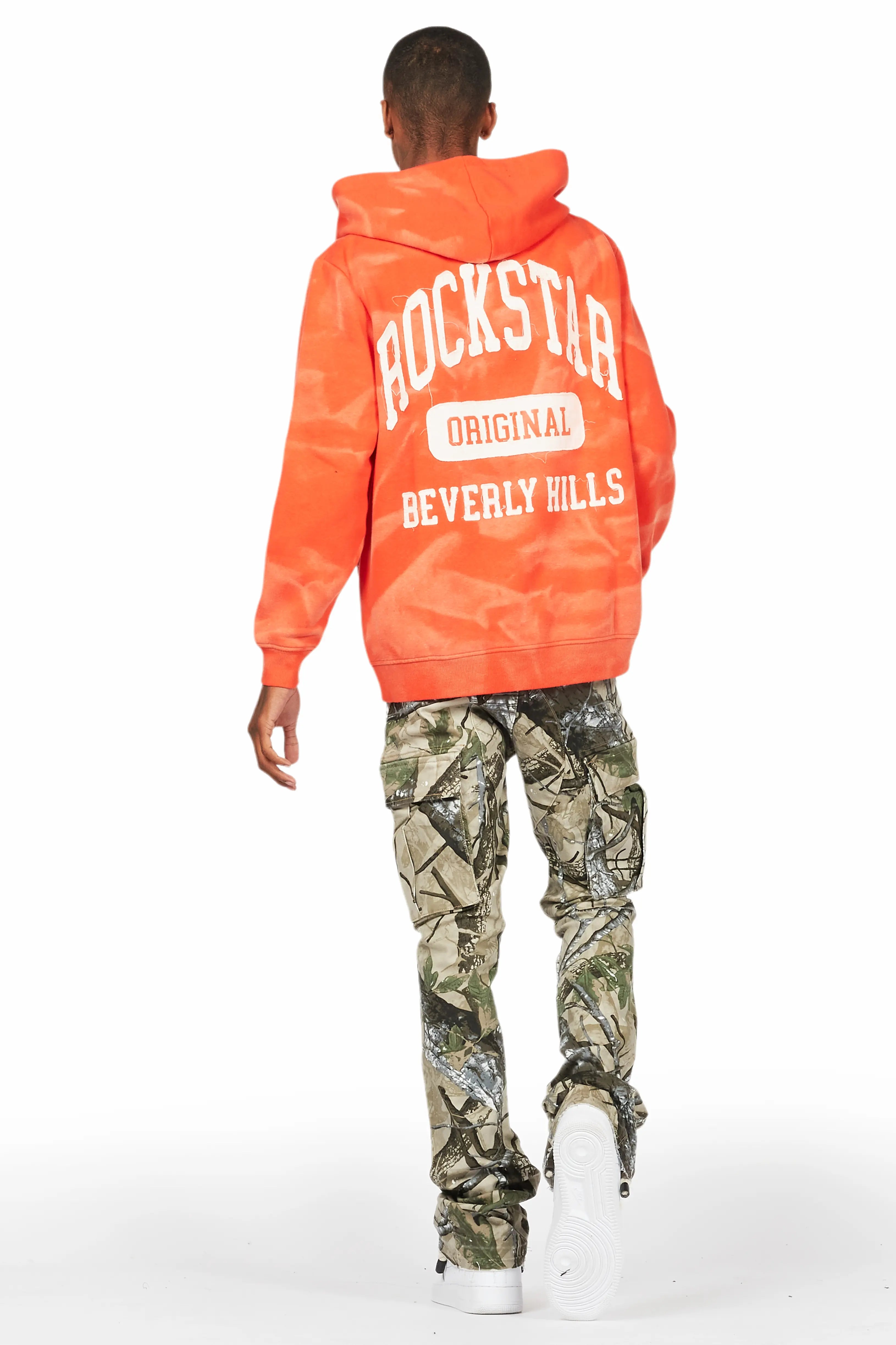 An urban two-piece graphic hoodie and stacked cargo jean set for men. Designed with organic cotton and extra long legs for a dope streetwear outfit set.