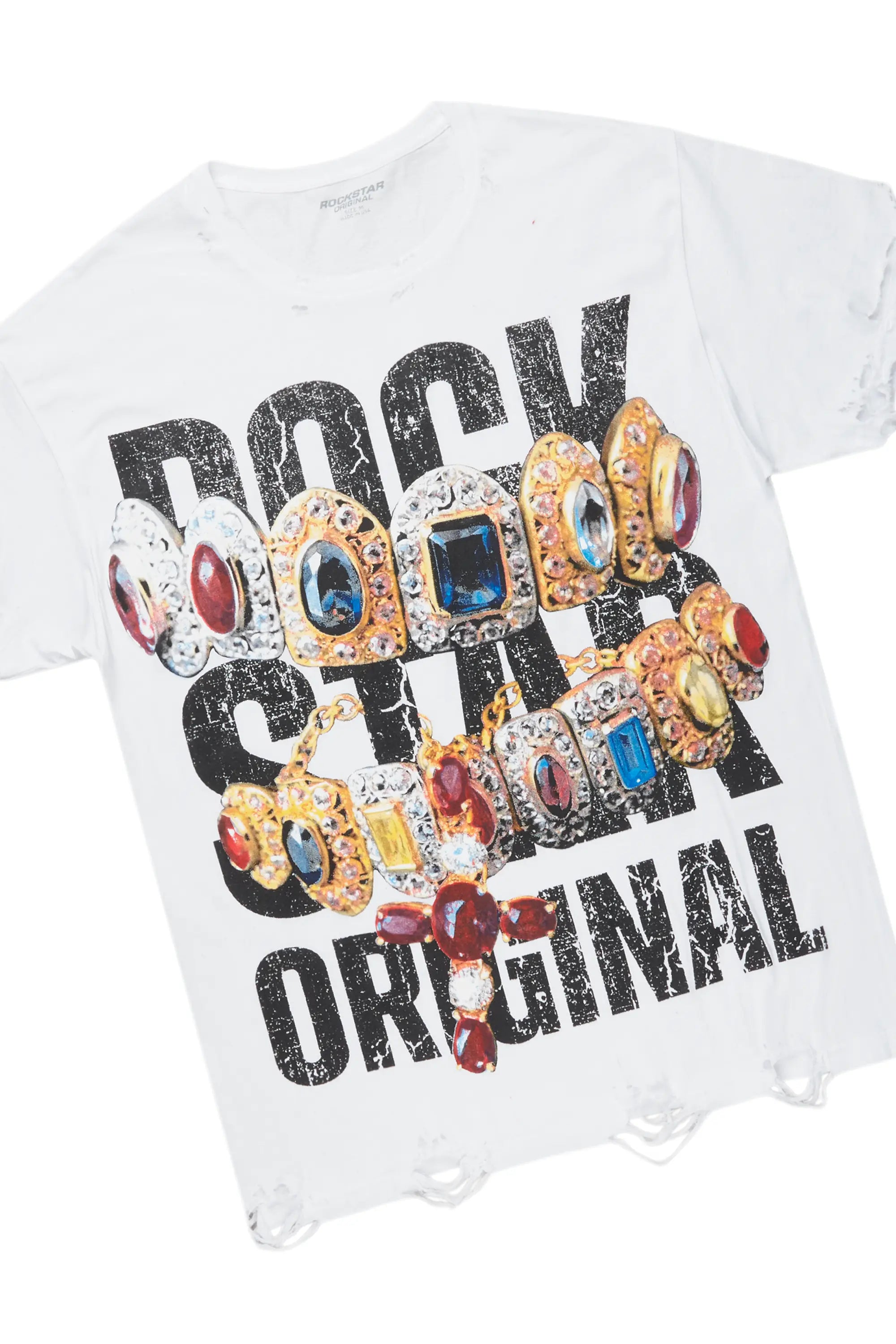 An urban two-piece graphic tee and stacked jean set for men. Designed with organic cotton and extra long legs for a dope streetwear outfit set.