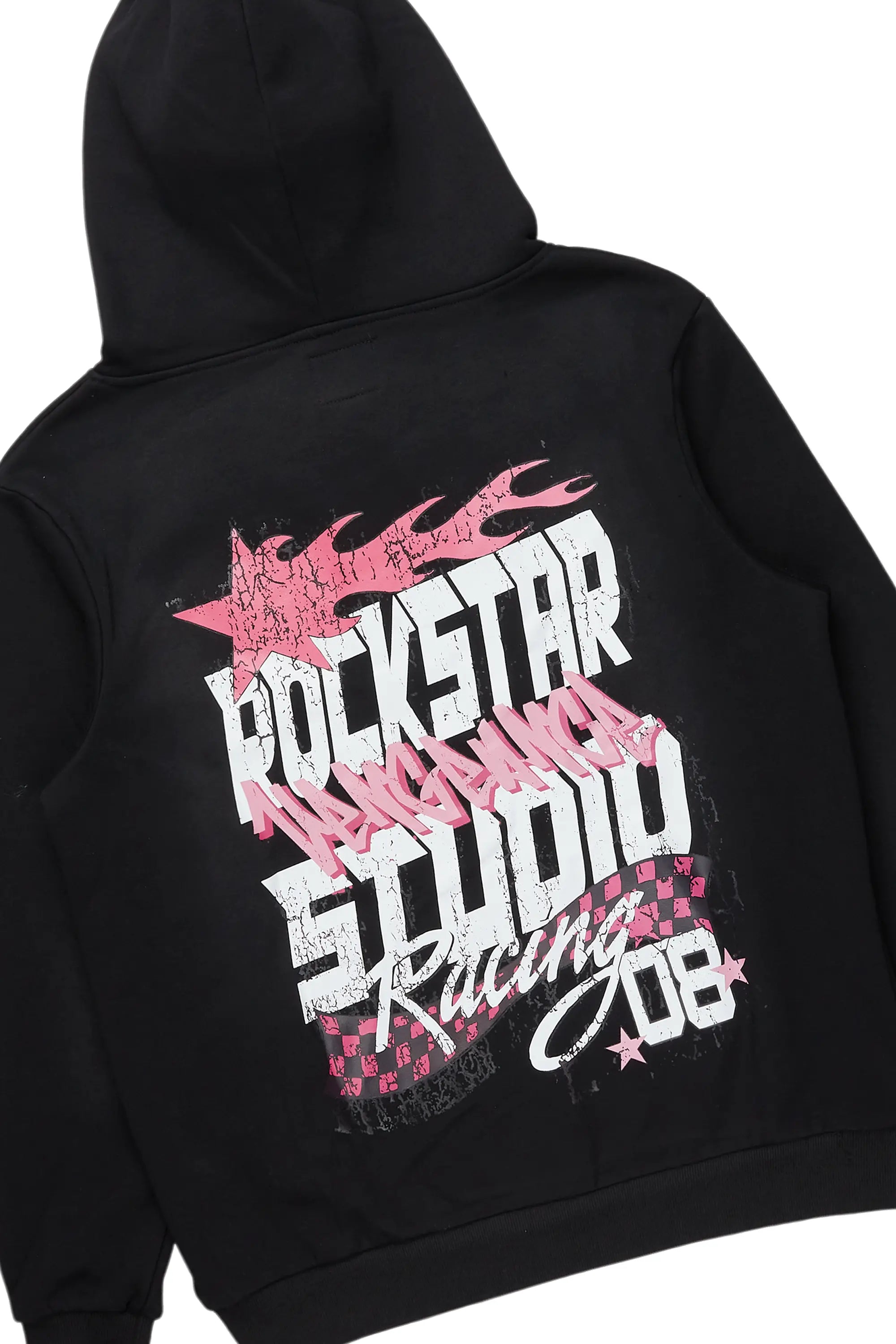 An urban two-piece graphic hoodie and stacked jean set for men. Designed with organic cotton and extra long legs for a dope streetwear outfit set.