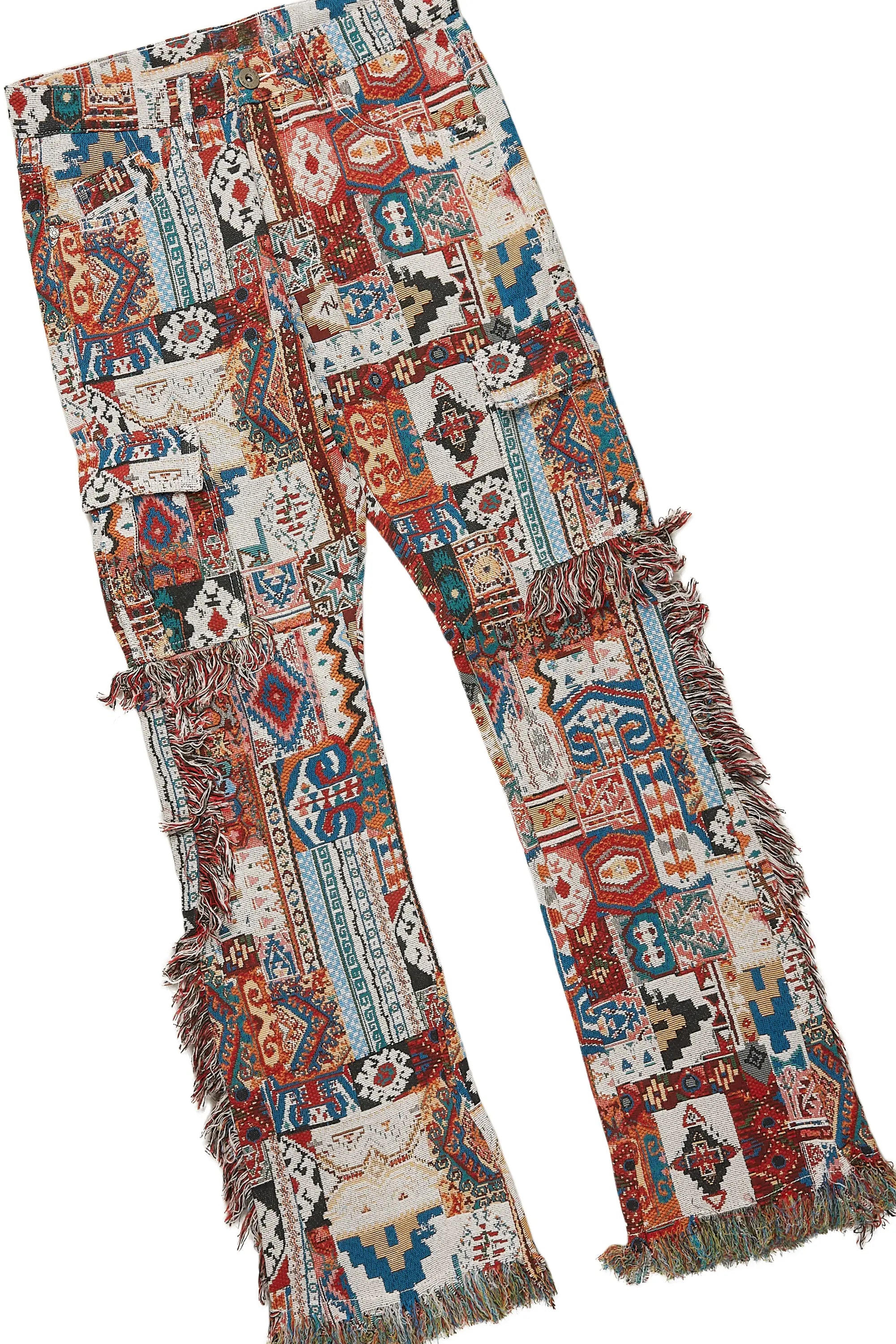 An urban two-piece hoodie and stacked cargo tapestry jean set for men. Designed with organic cotton and extra long legs for a dope streetwear outfit set.