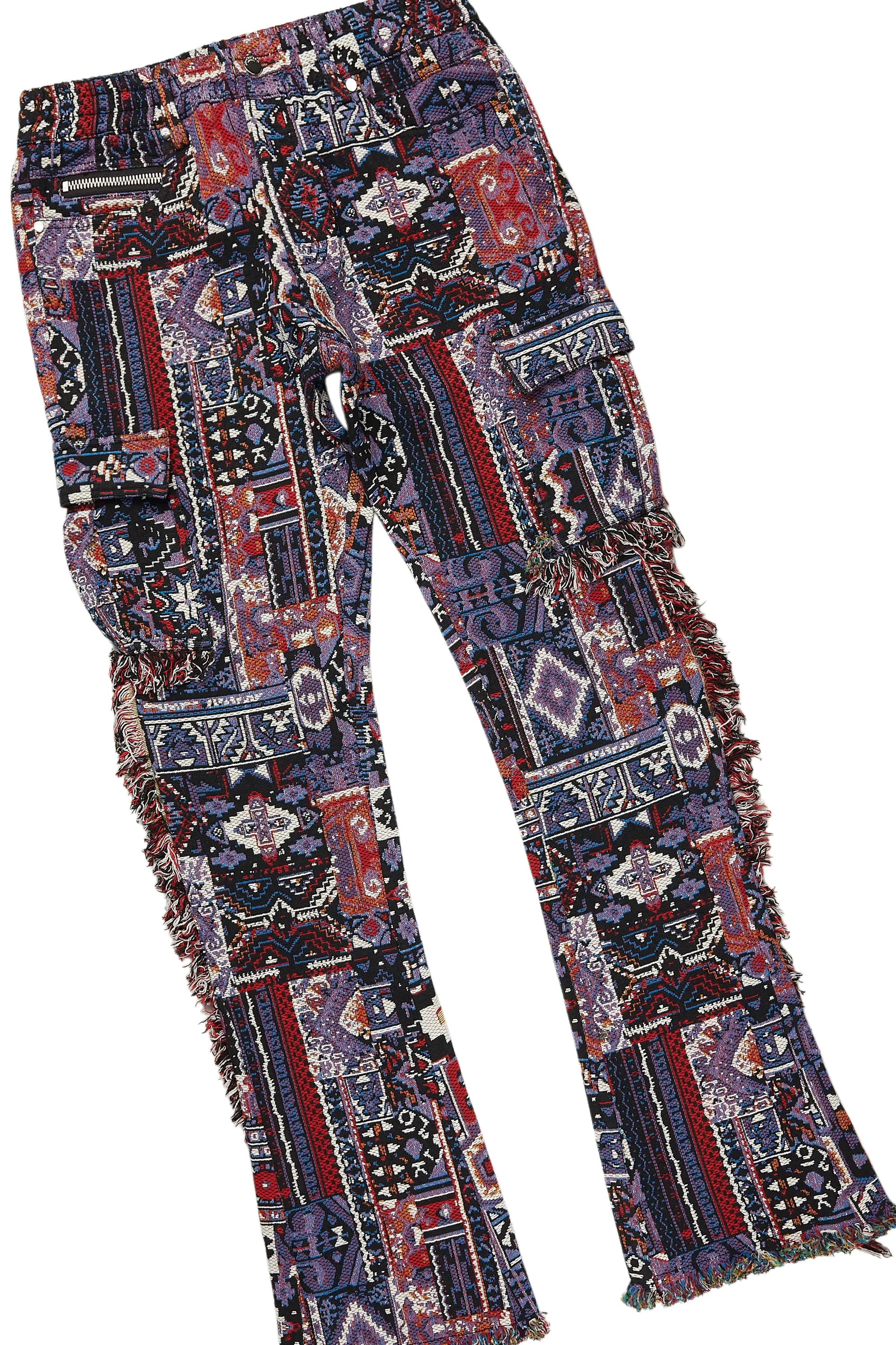 An urban two-piece hoodie and stacked cargo tapestry jean set for men. Designed with organic cotton and extra long legs for a dope streetwear outfit set.