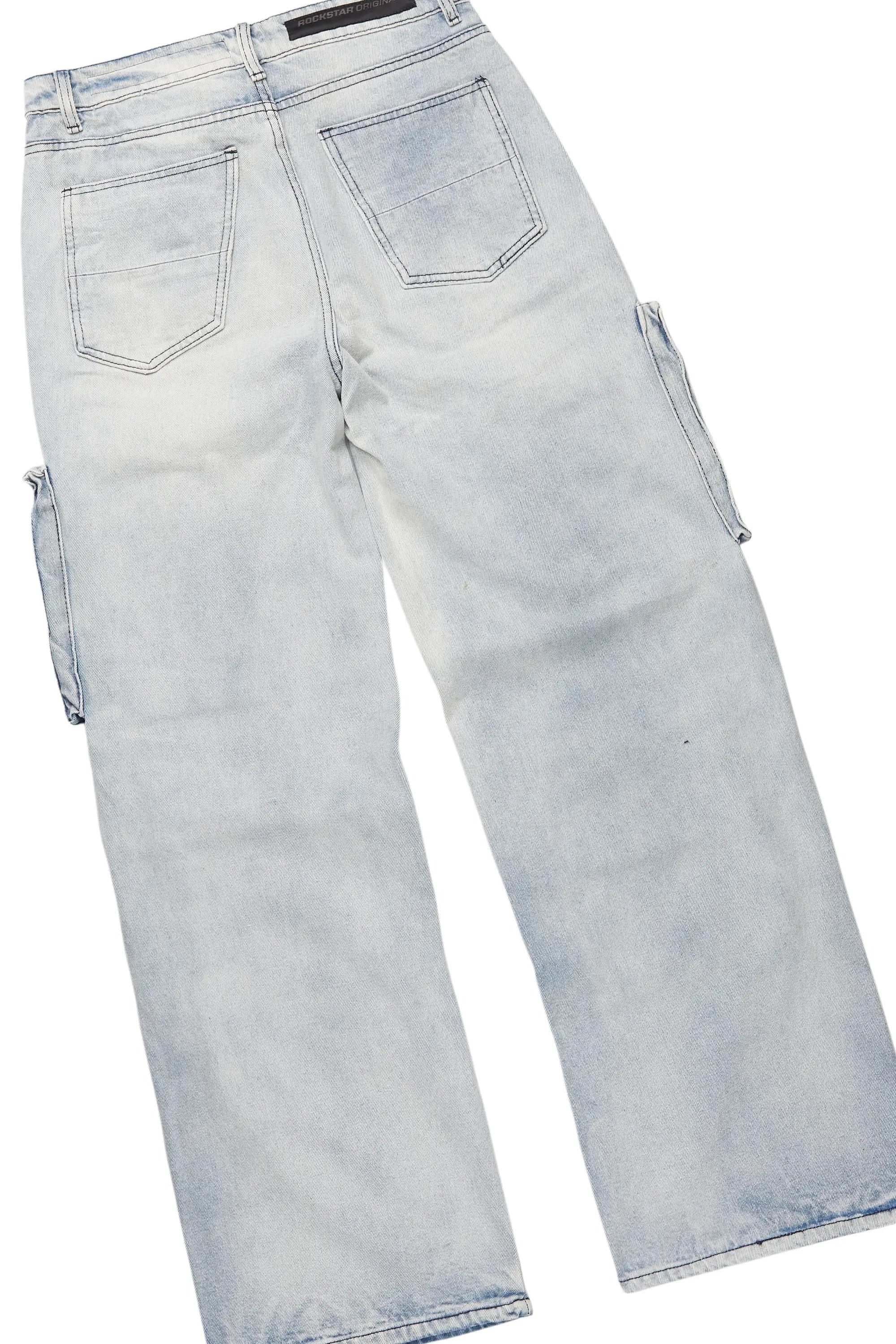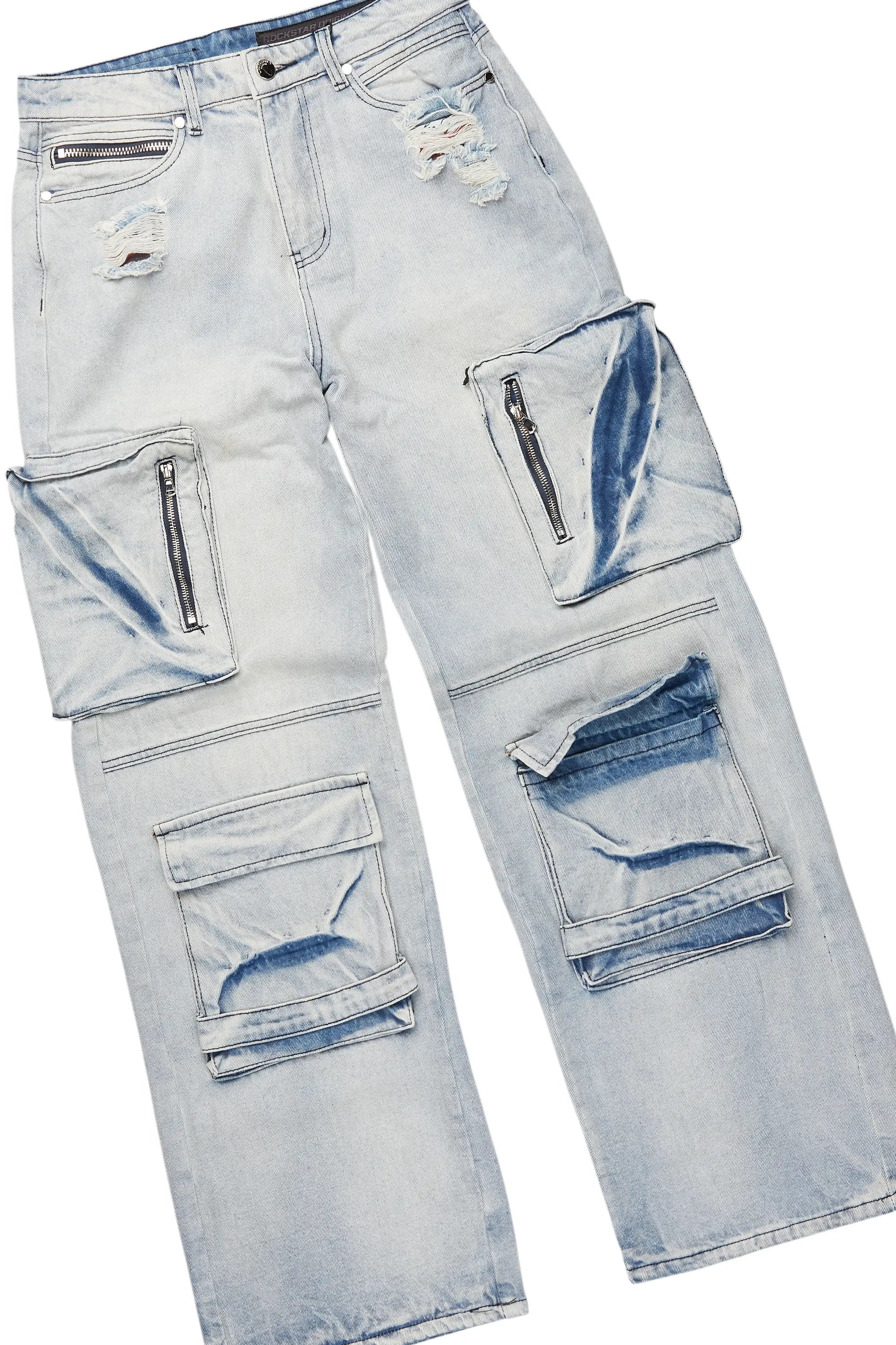 An urban two-piece hoodie and baggy cargo jean set for men. Designed with organic cotton and a parachute pant fit for a dope streetwear outfit set.