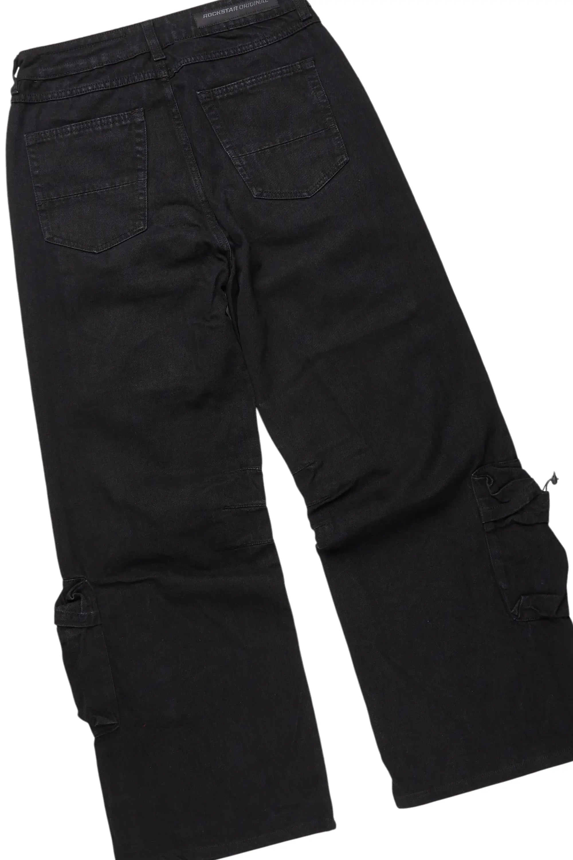 An urban two-piece hoodie and baggy cargo jean set for men. Designed with organic cotton and extra long legs for a dope streetwear outfit set.