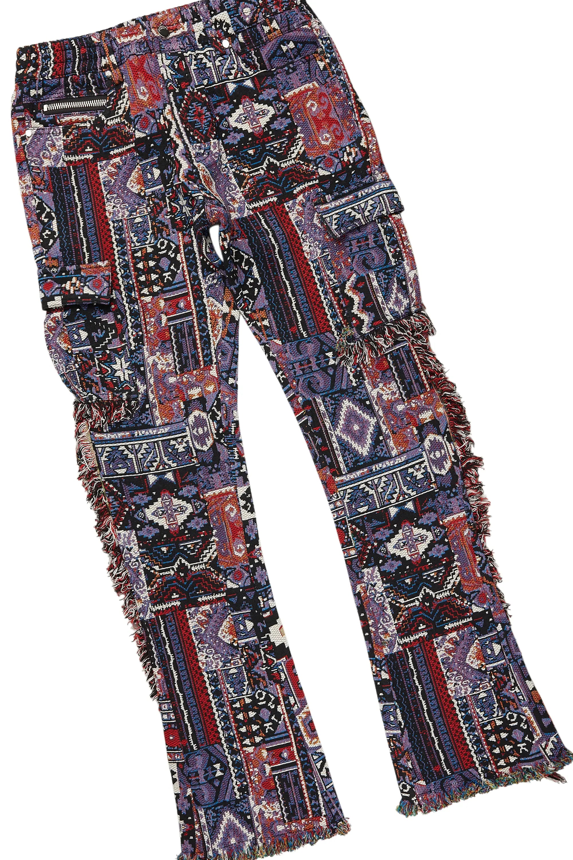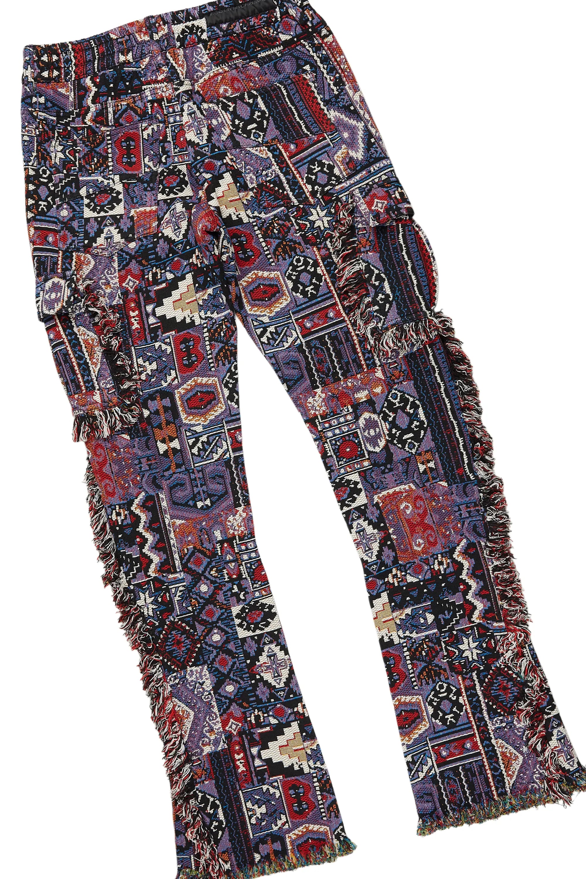 An urban two-piece double layer tee and stacked cargo tapestry jean set for men. Designed with organic cotton and extra long legs for a dope streetwear outfit set.