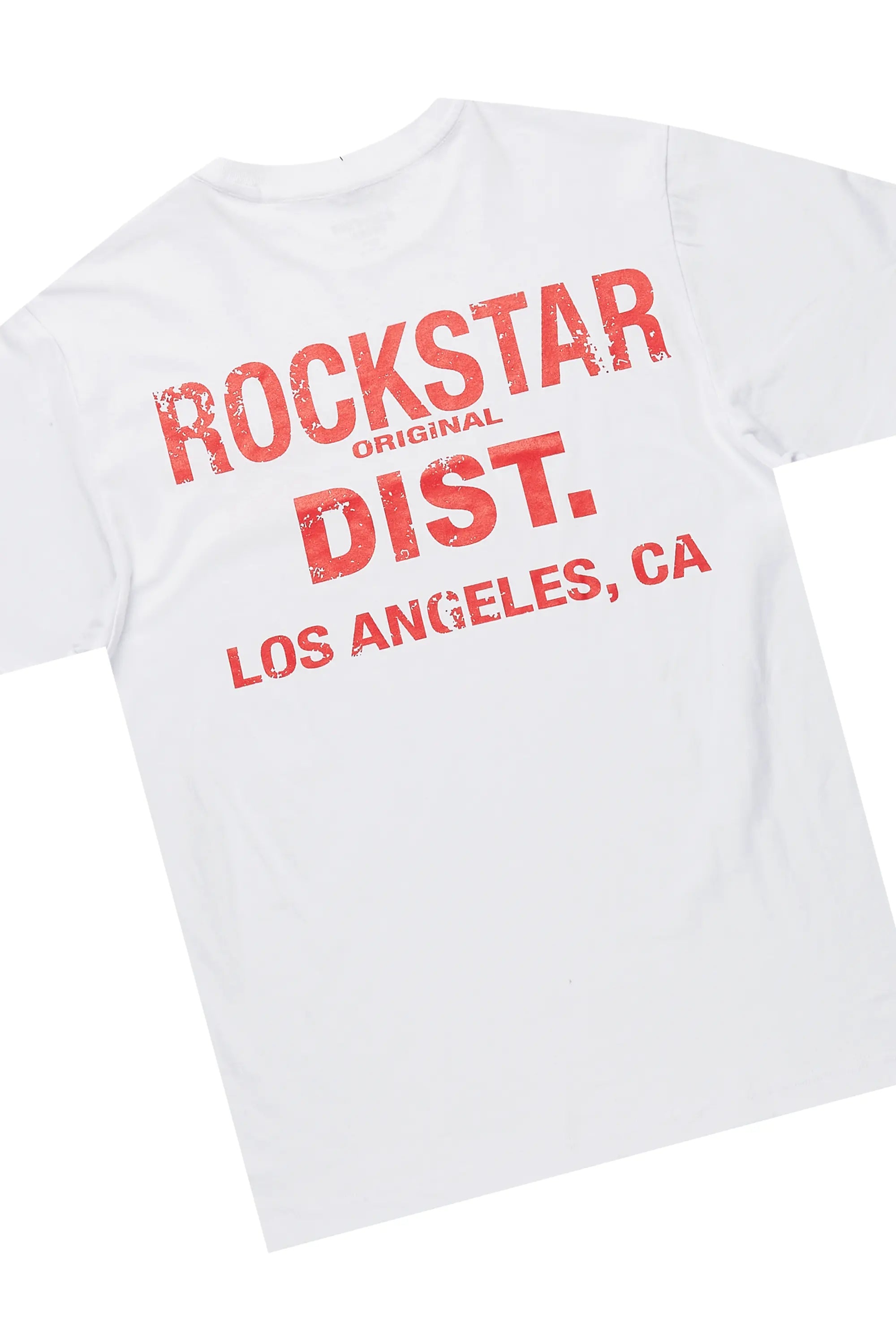 An urban two-piece graphic tee and stacked jean set for men. Designed with organic cotton and extra long legs for a dope streetwear outfit set.