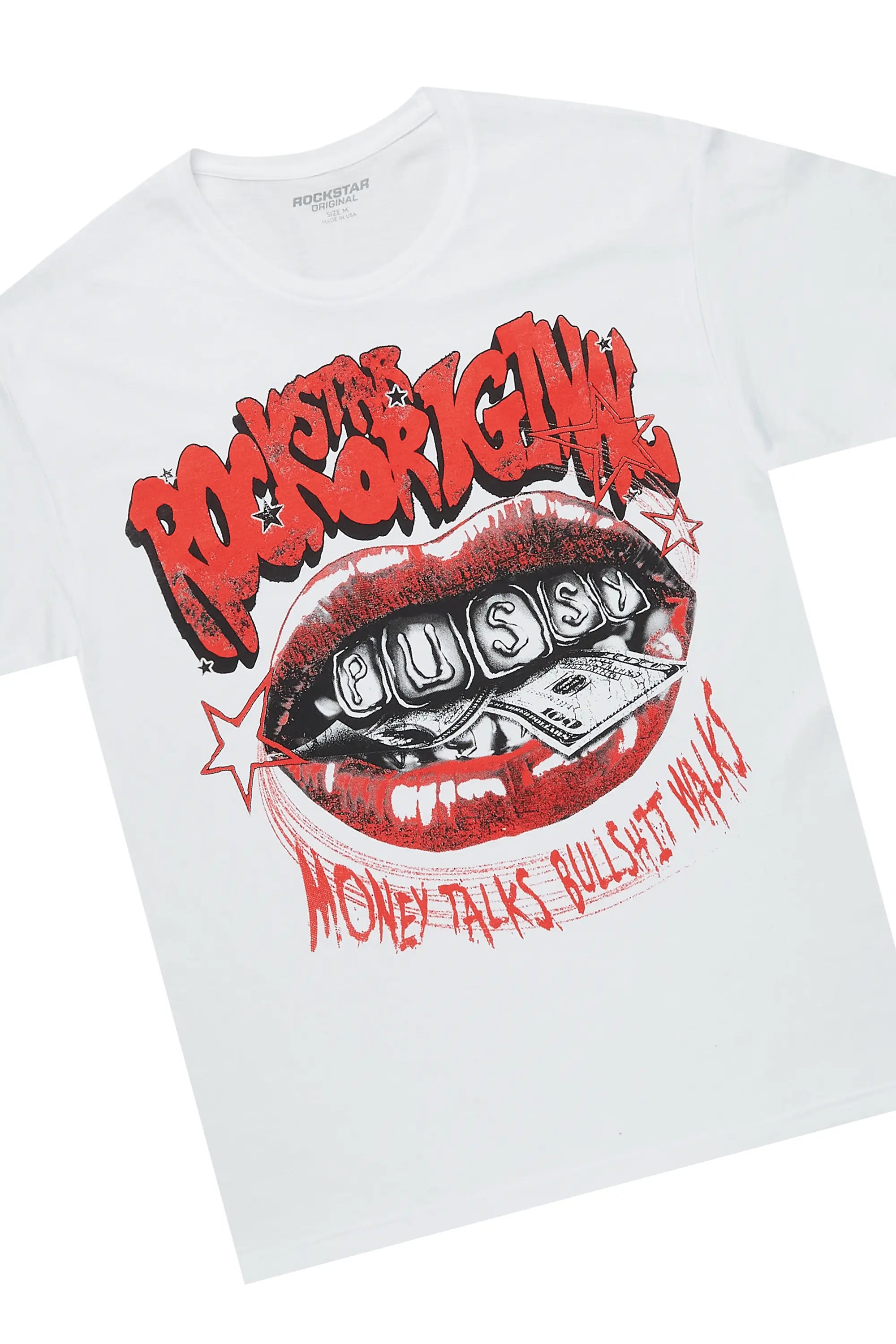 An urban two-piece tee and stacked pant tracksuit set for men in black. Designed with ultra soft fabric and extra long legs for a dope streetwear set.