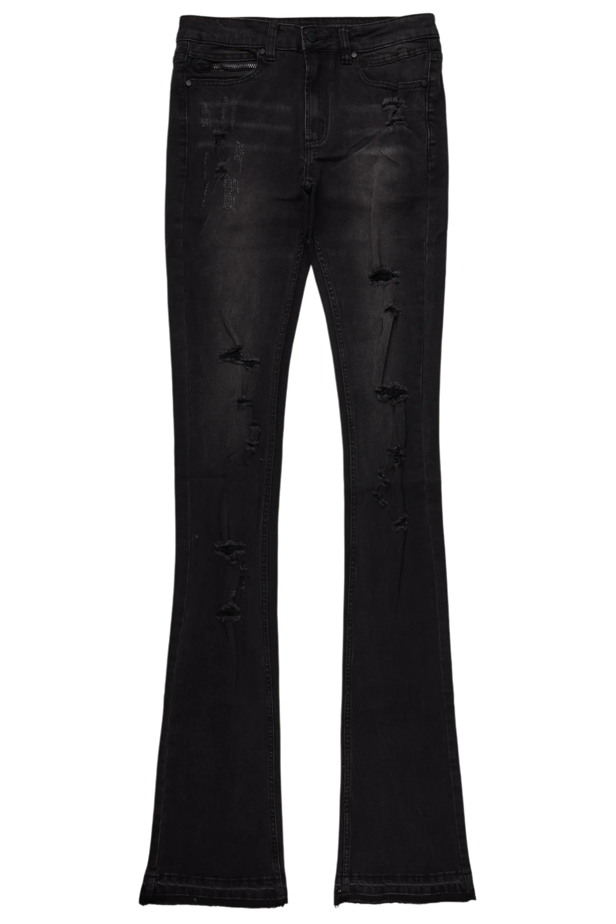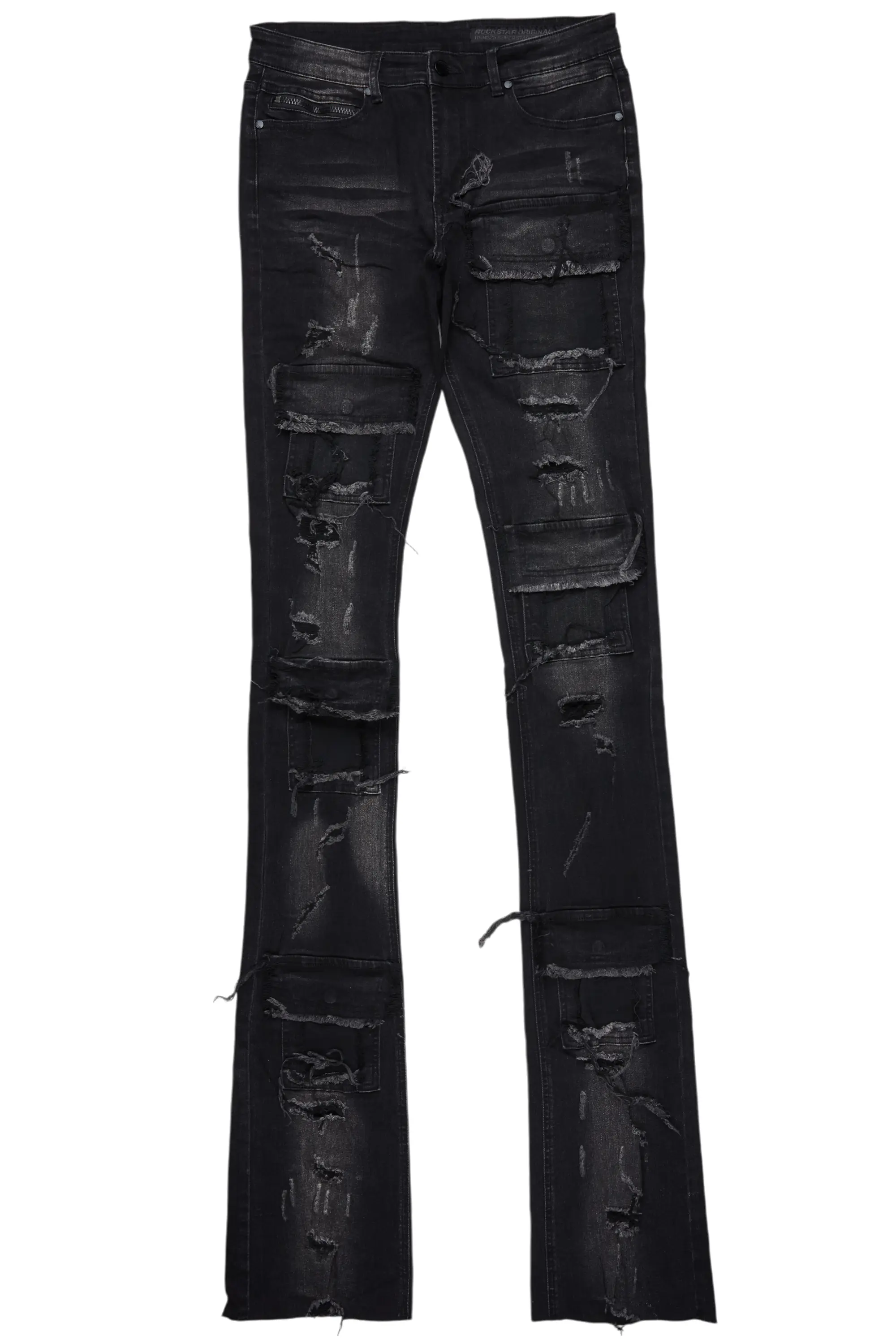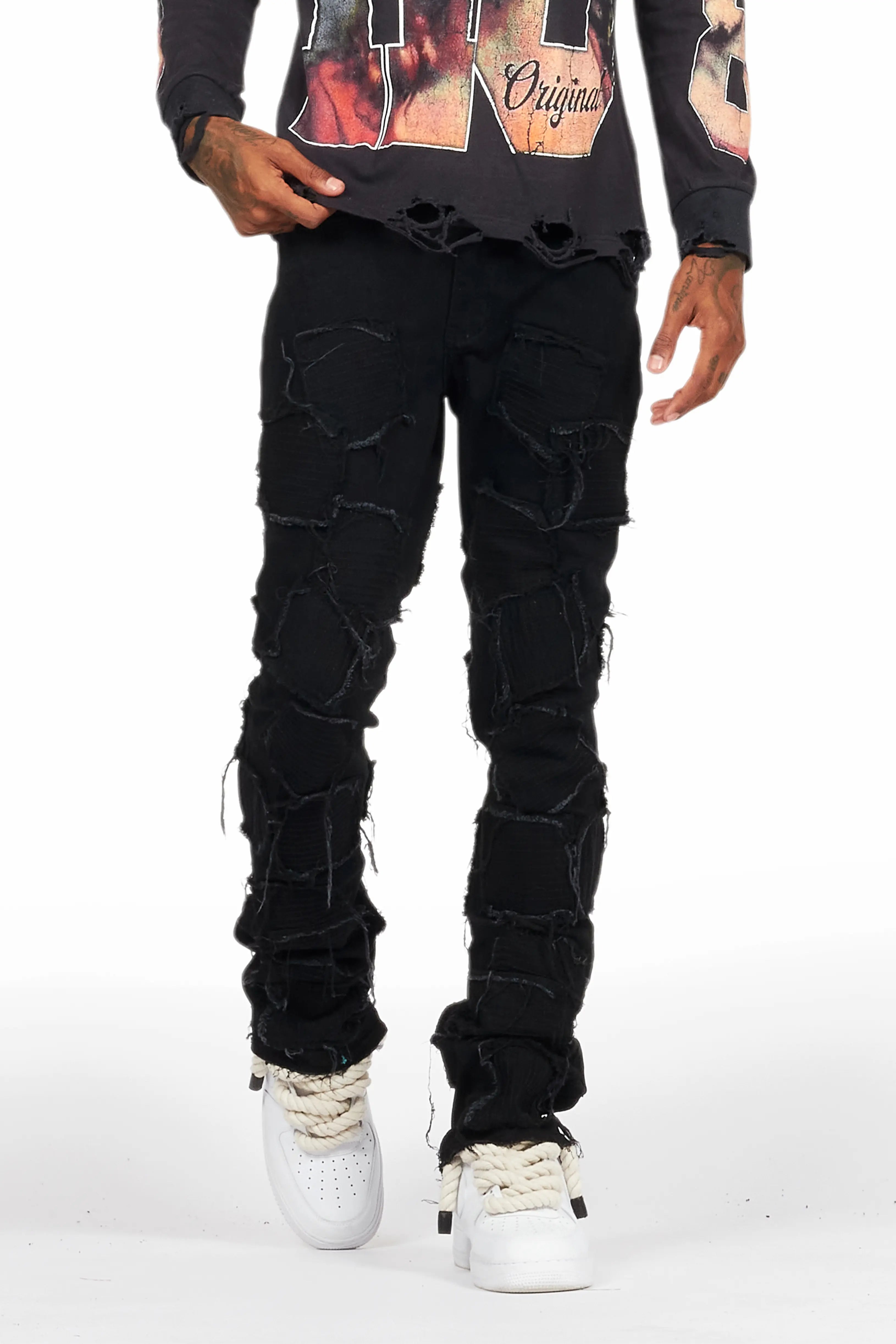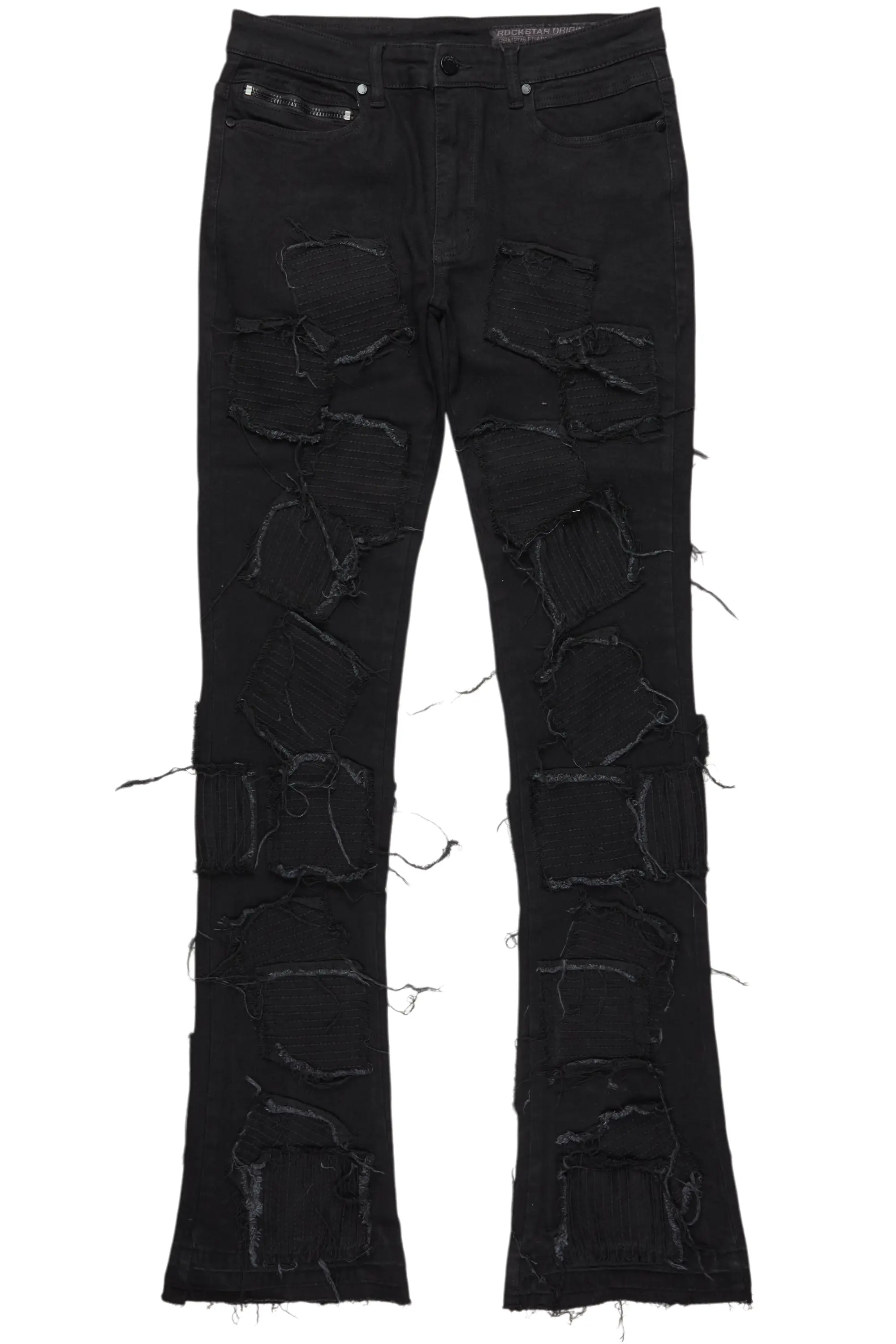 Edgar Jet Black Patchwork Stacked Flare Jean