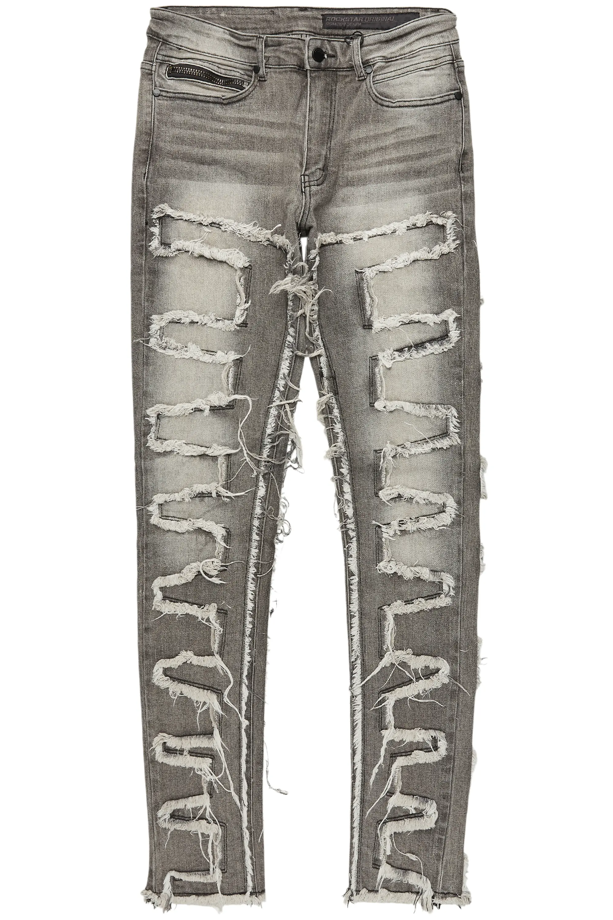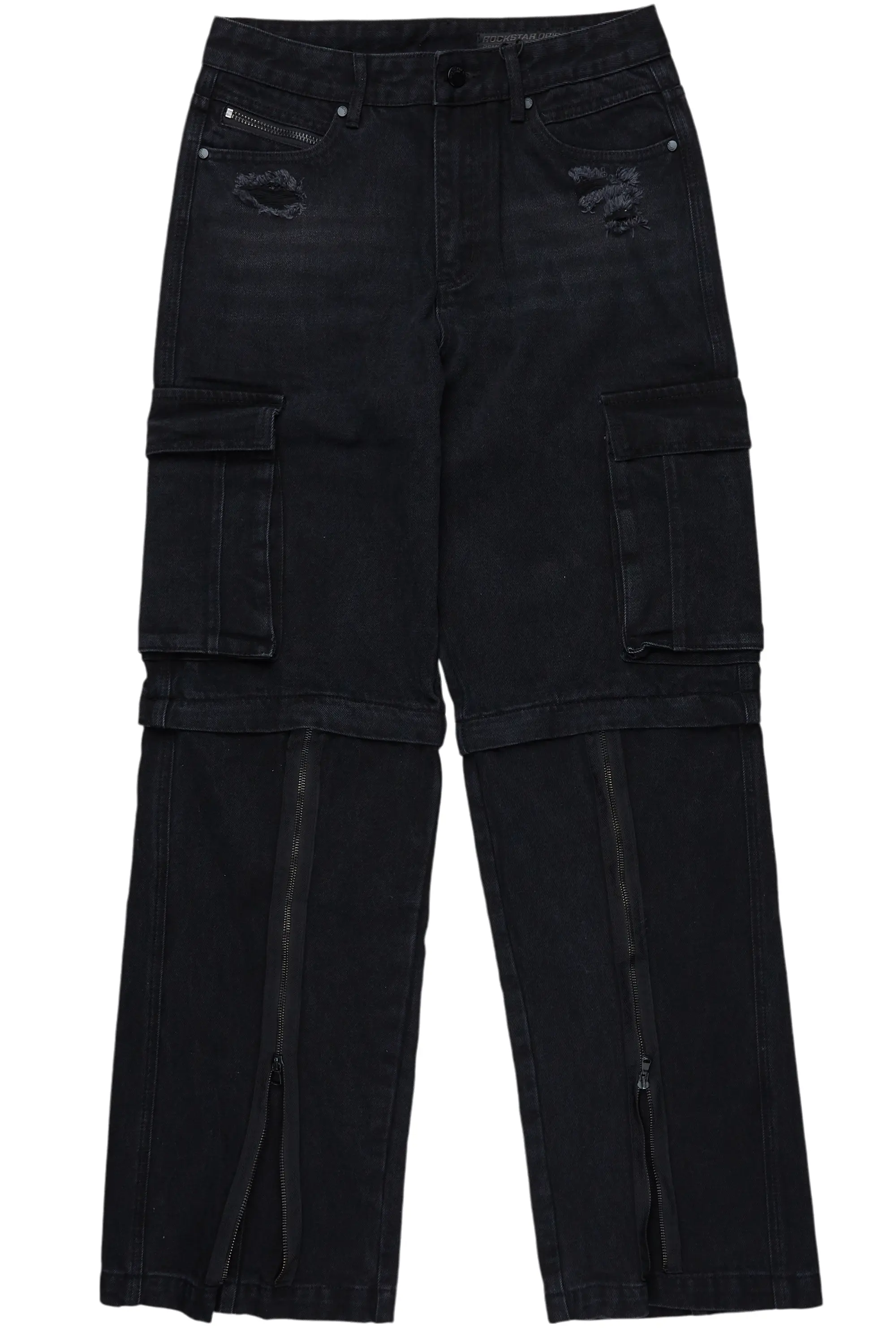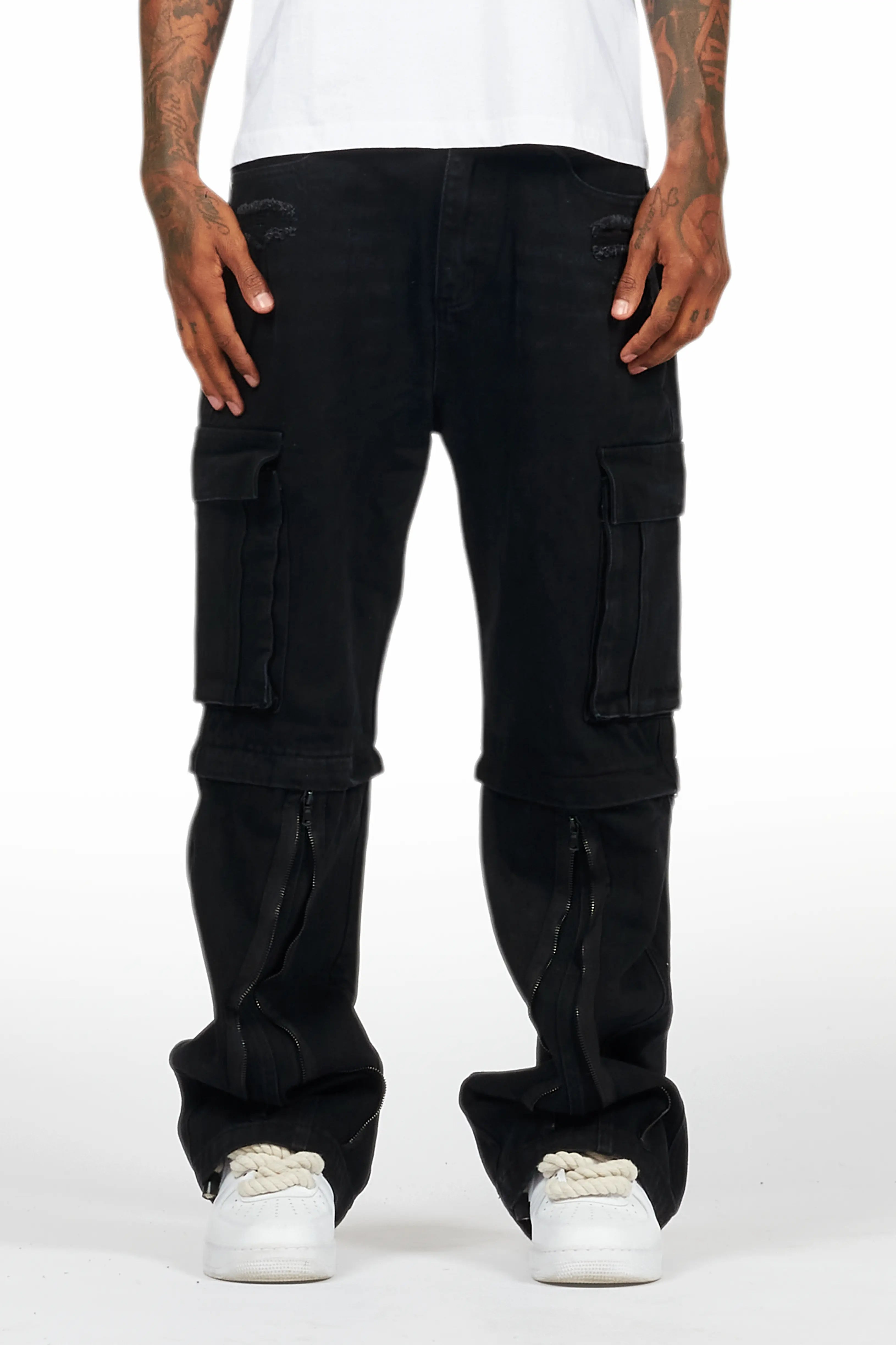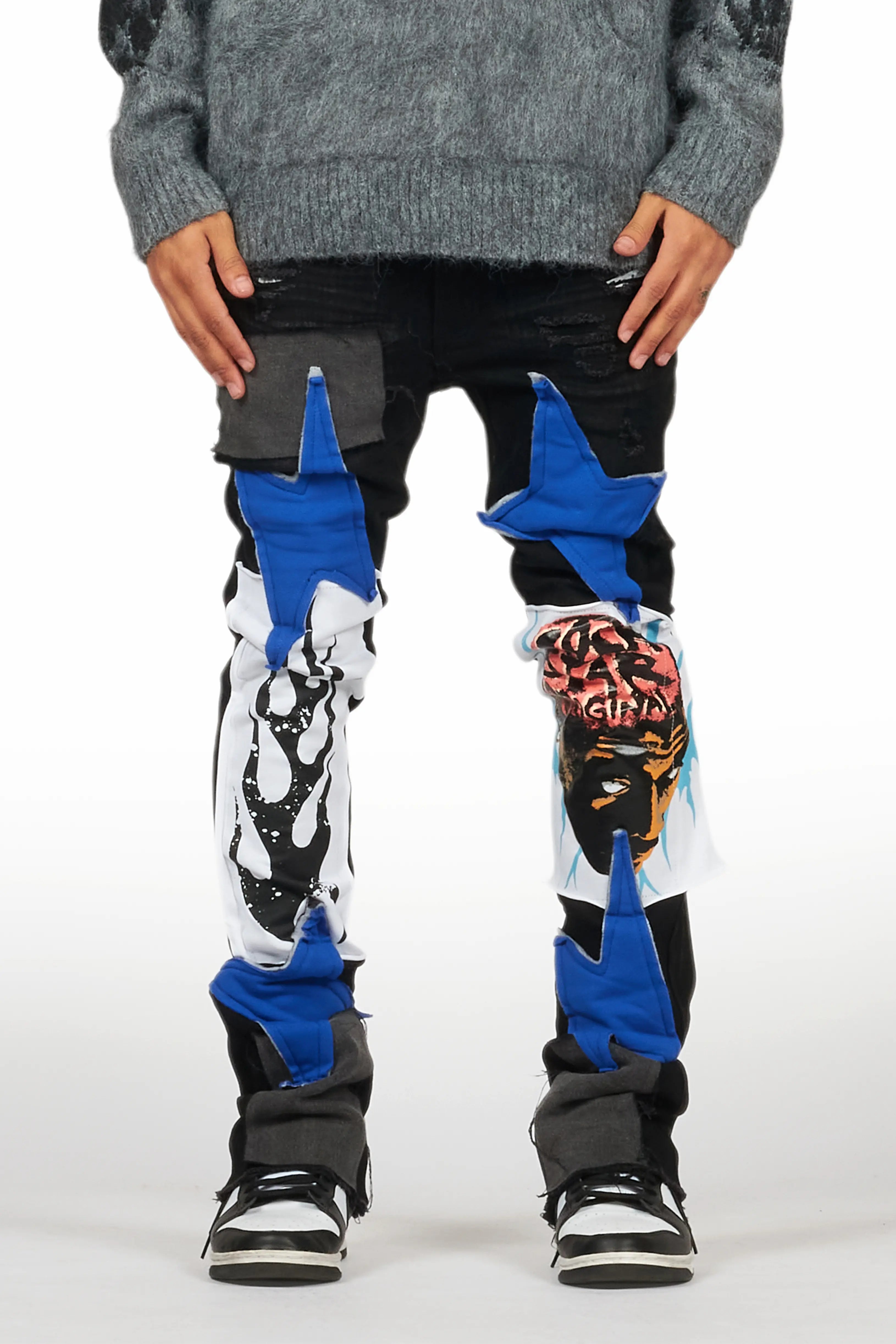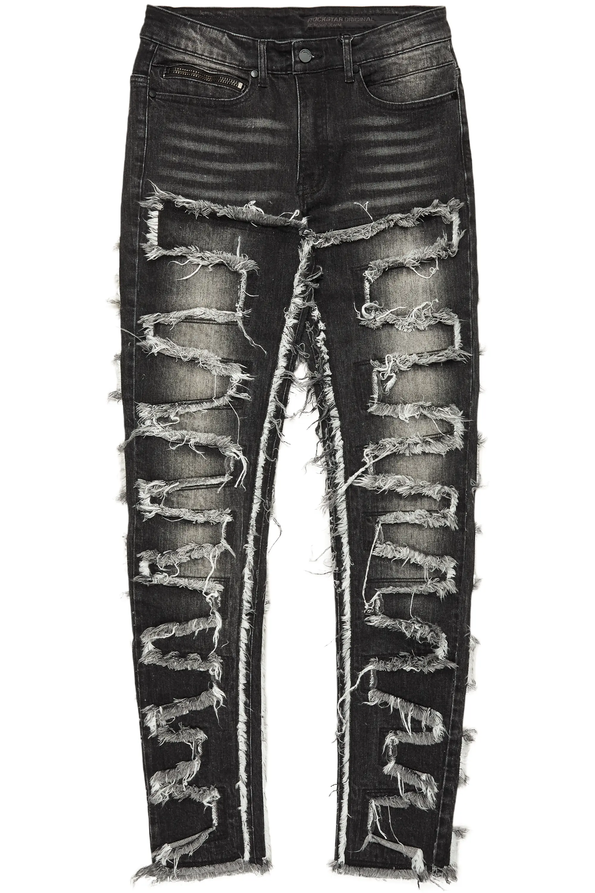 Edgar Jet Black Patchwork Stacked Flare Jean