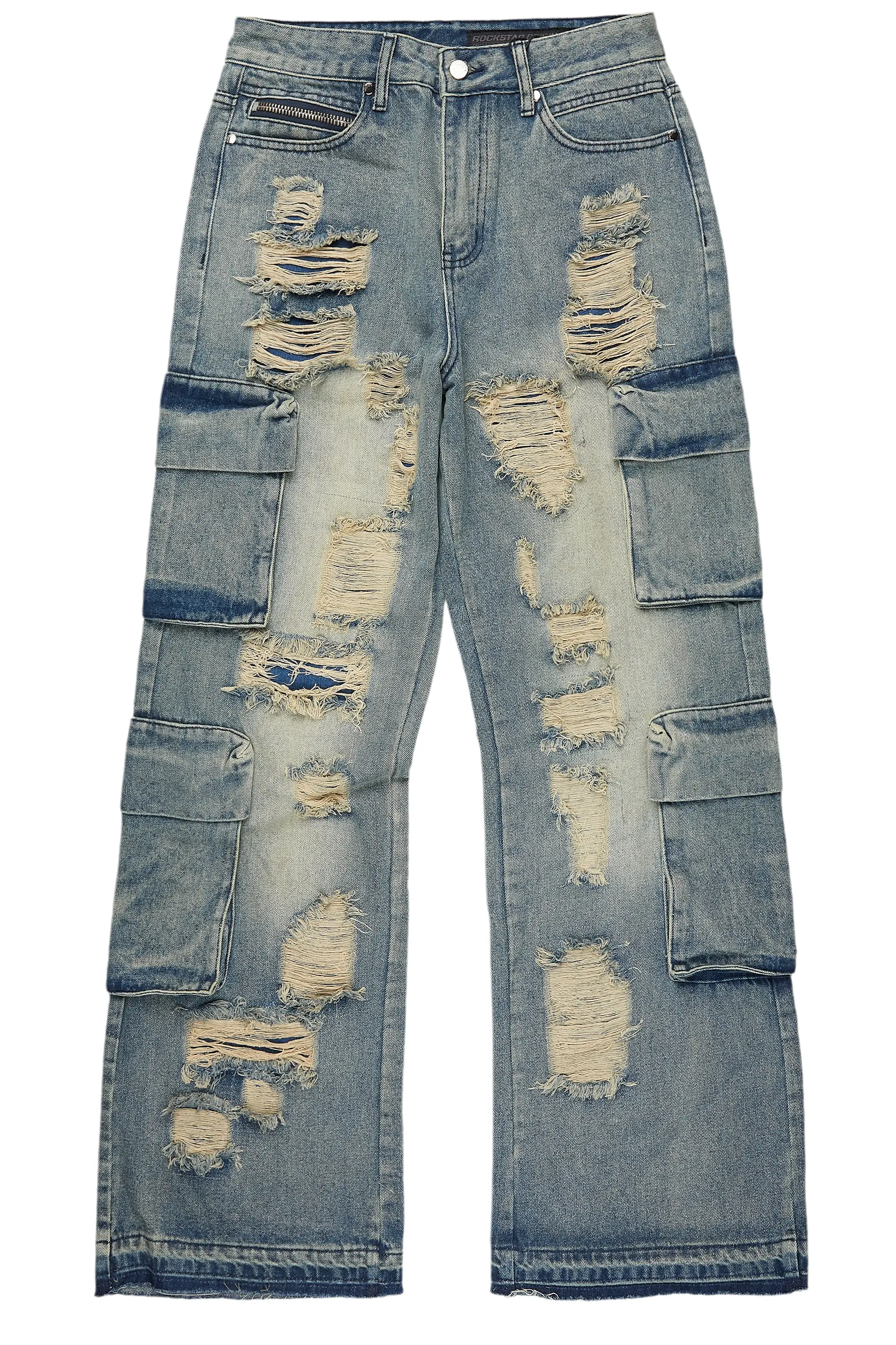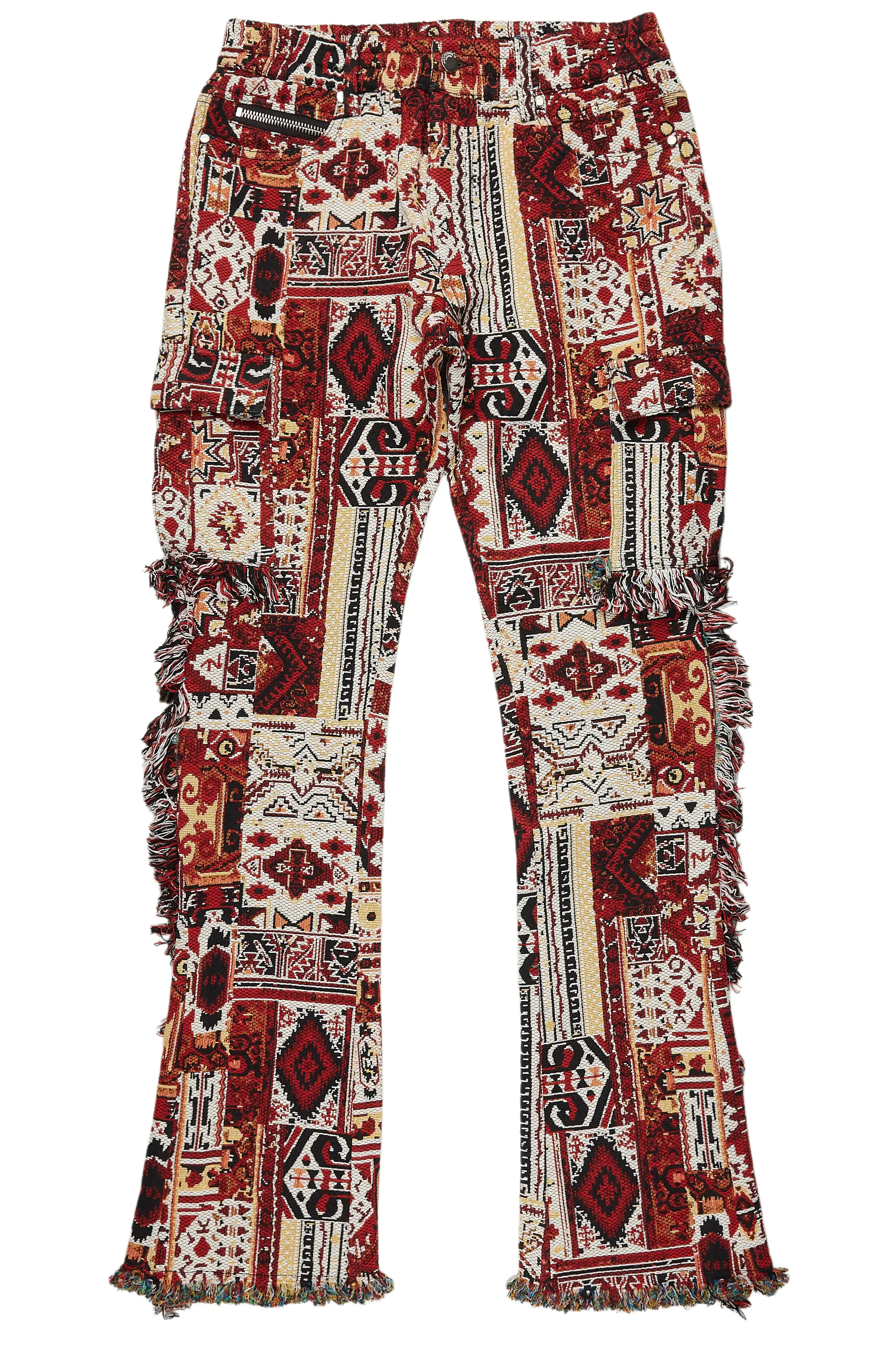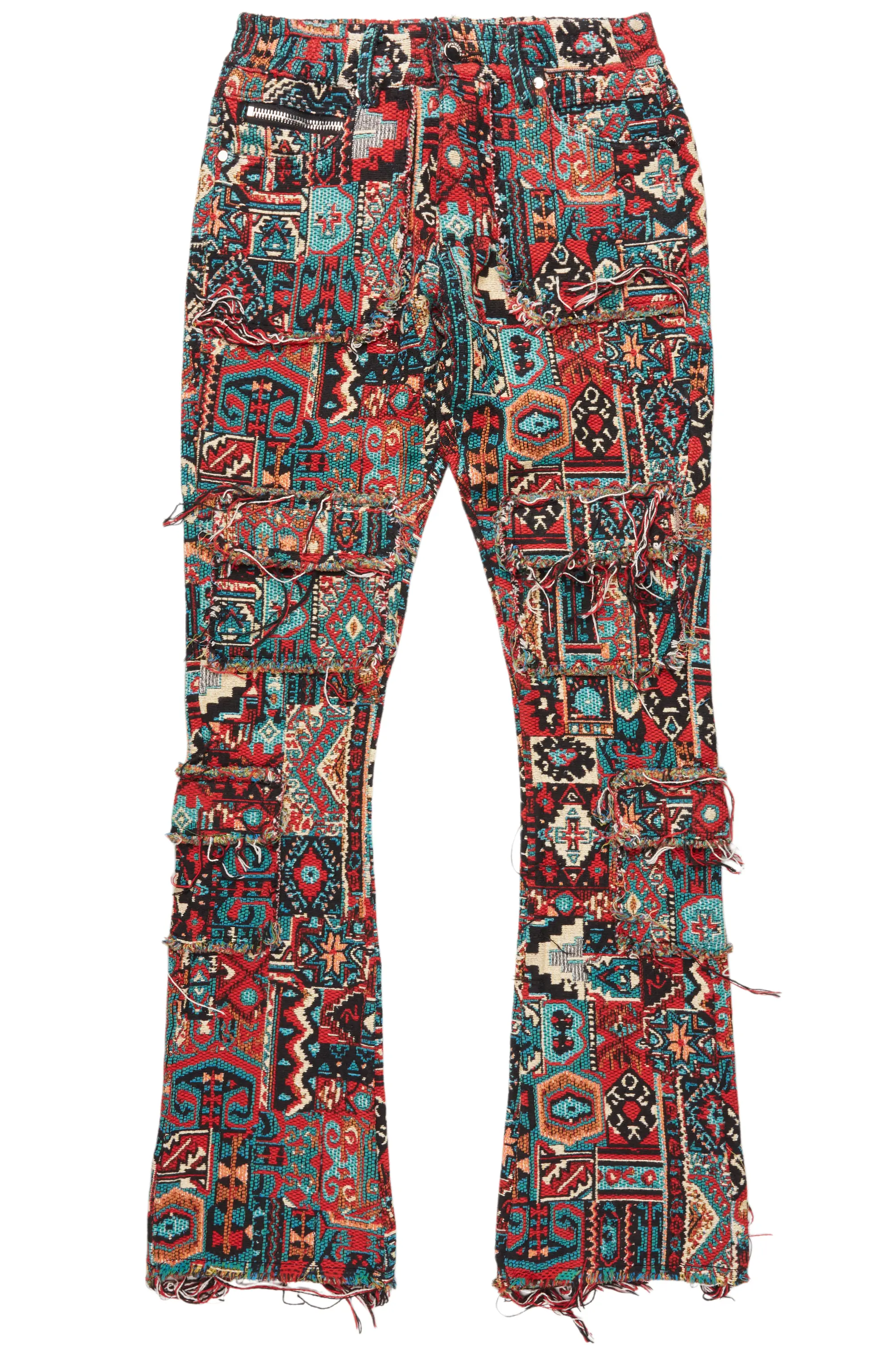 Tayami Tapestry Aqua Cargo Stacked Flare Jean