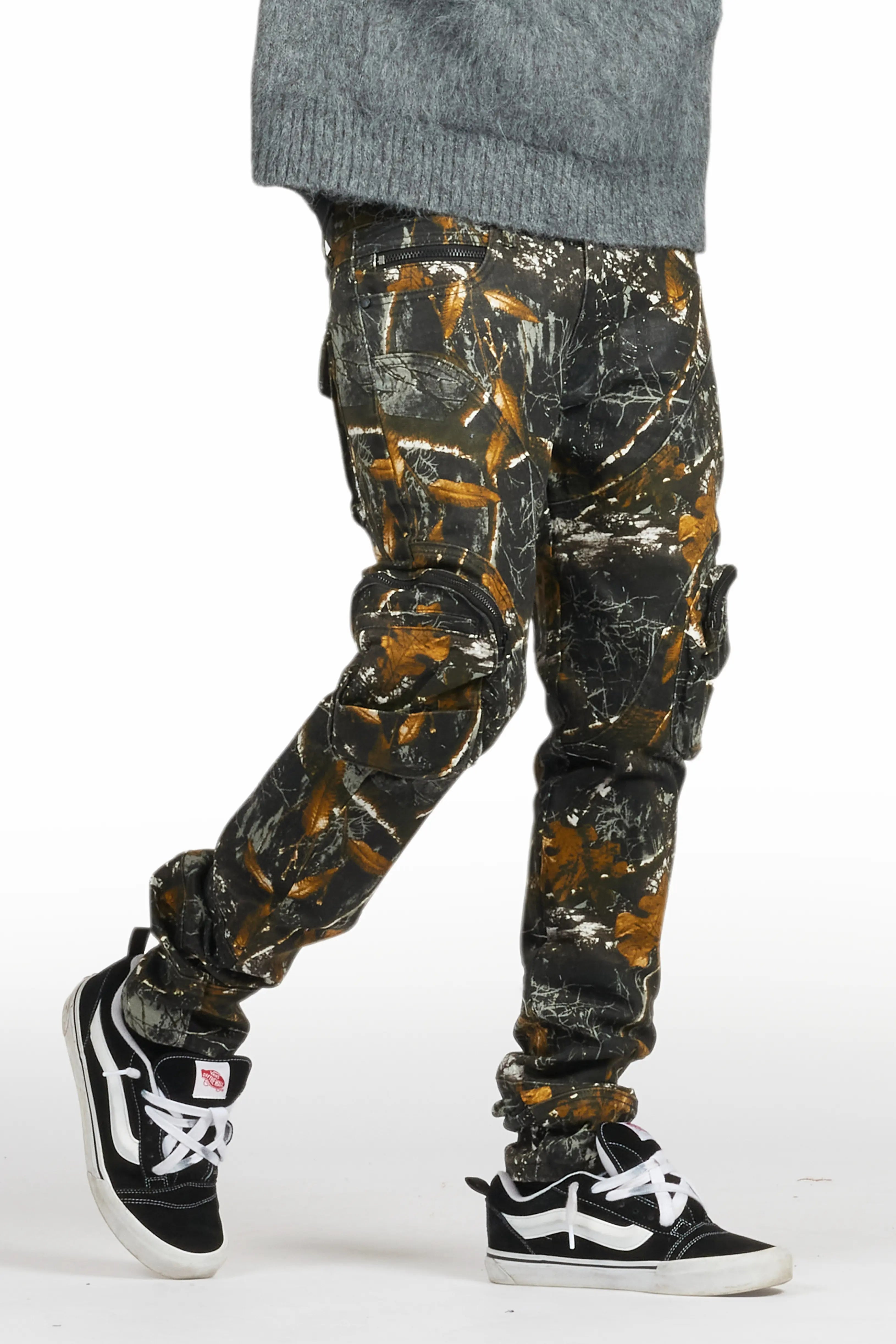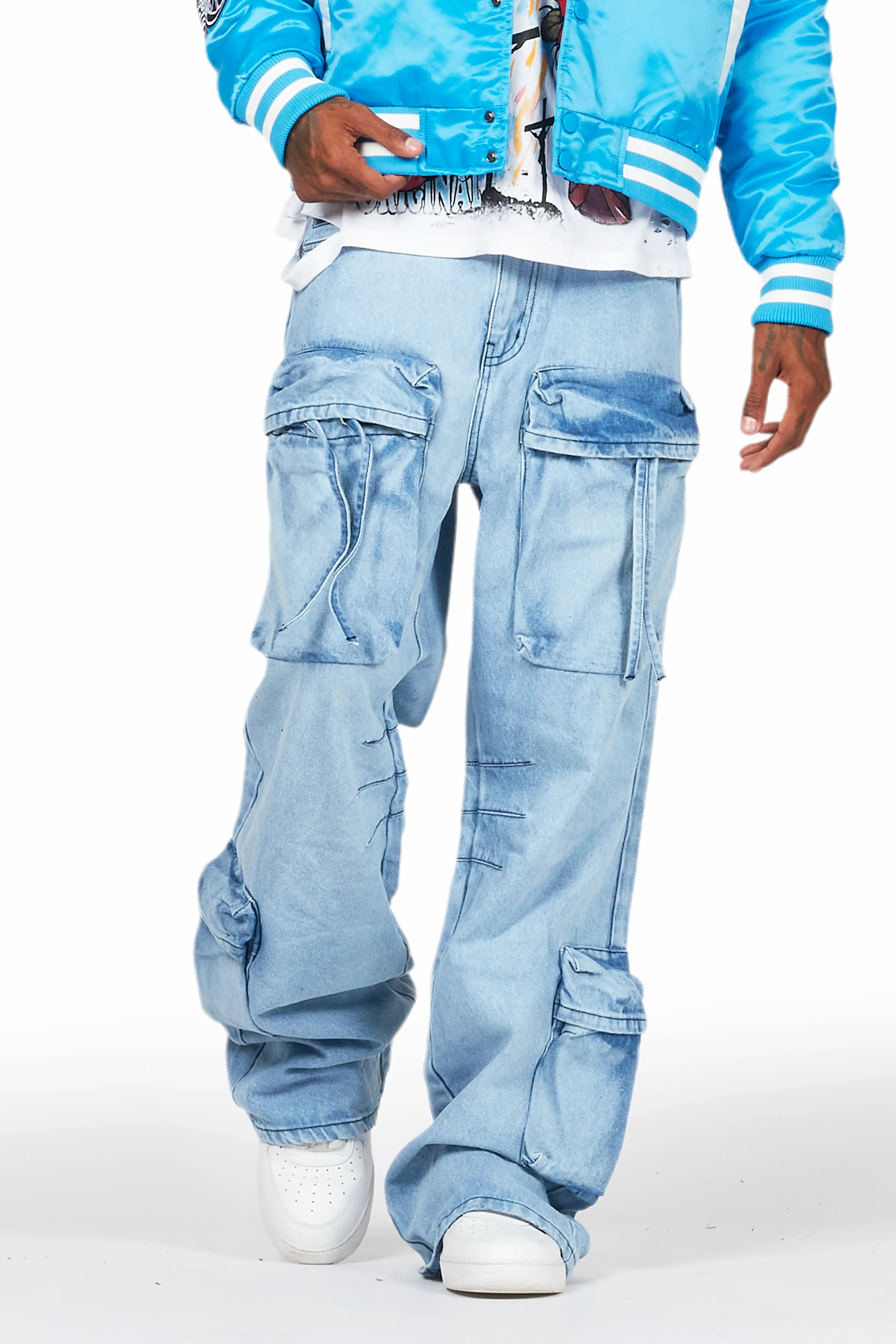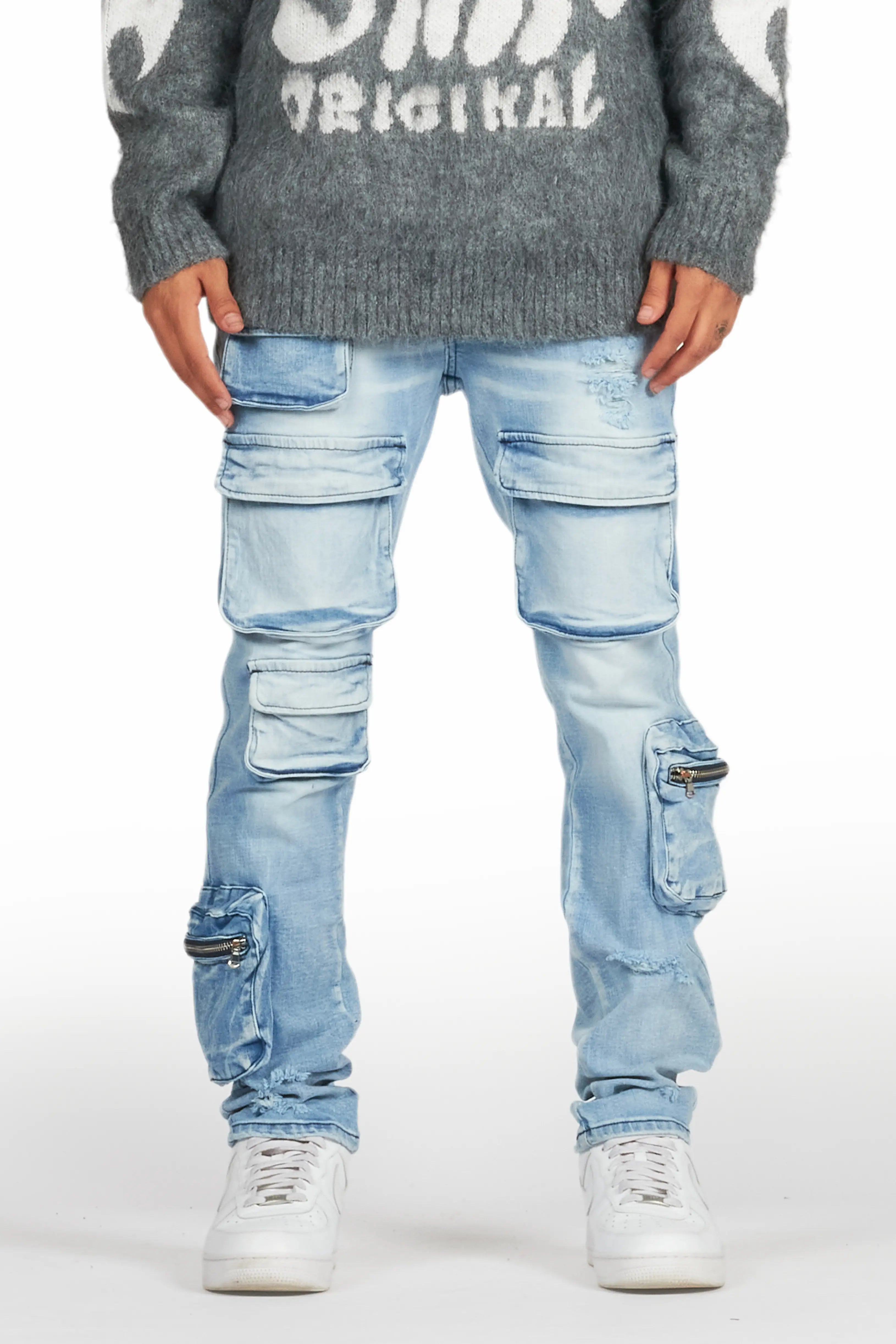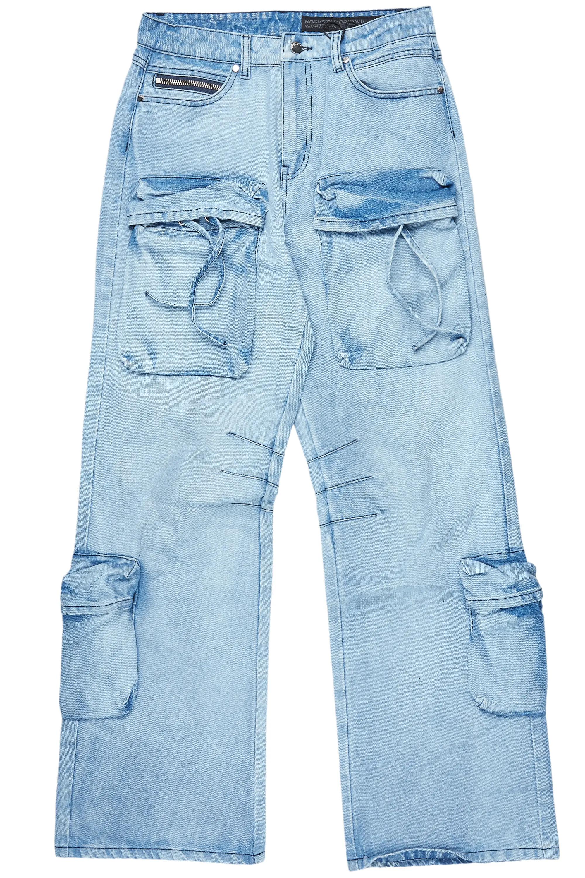 Tayami Tapestry Aqua Cargo Stacked Flare Jean