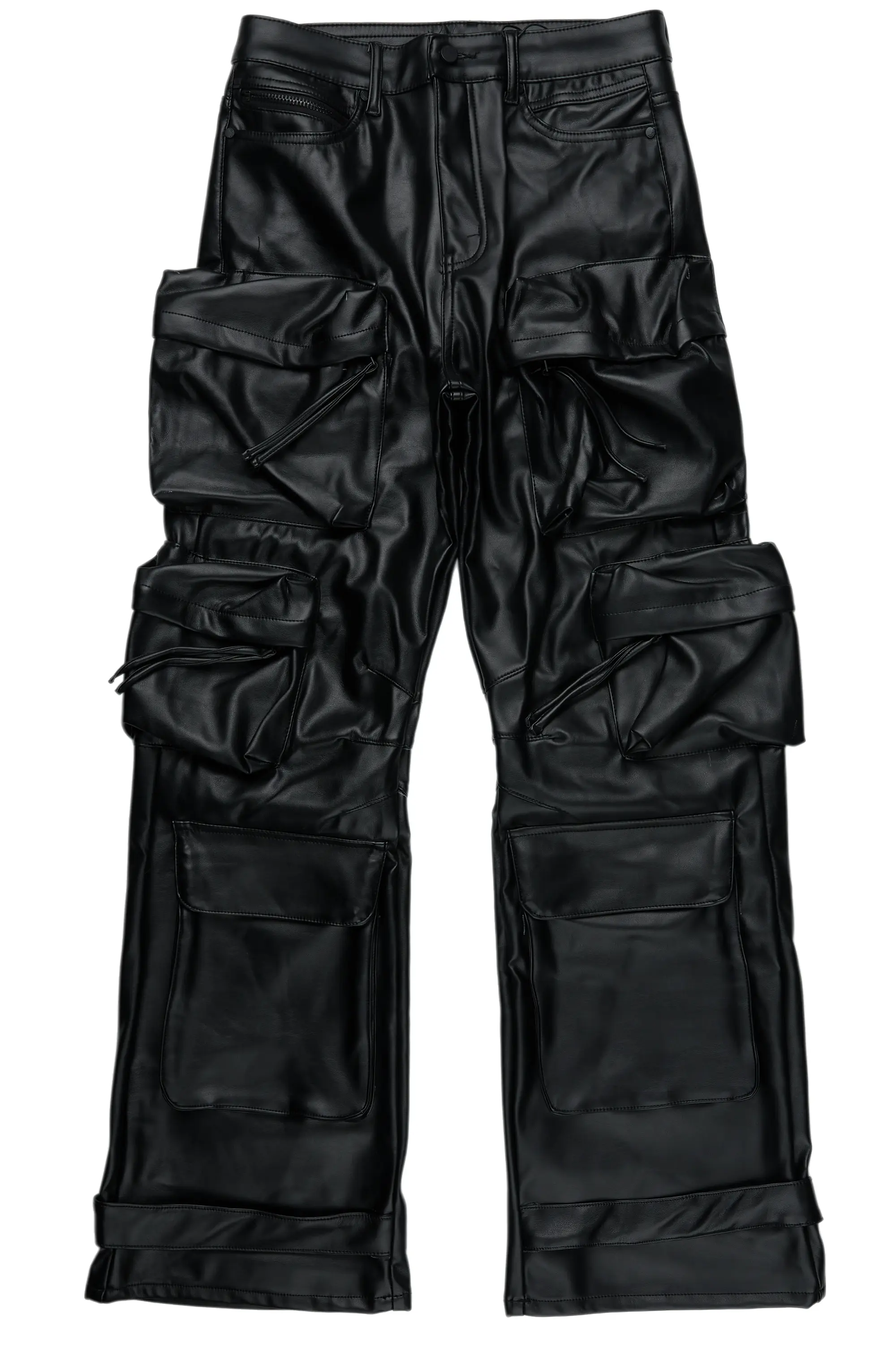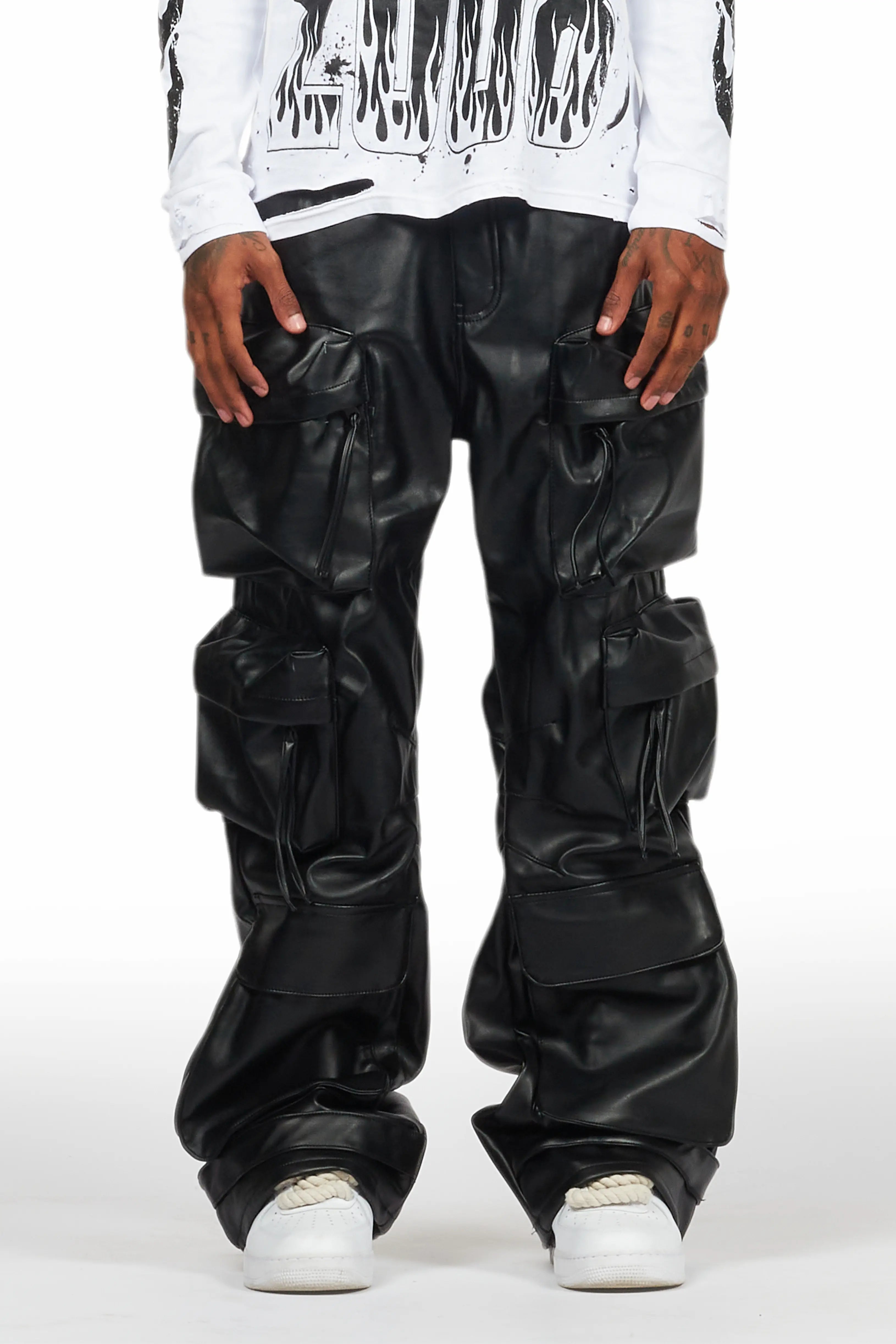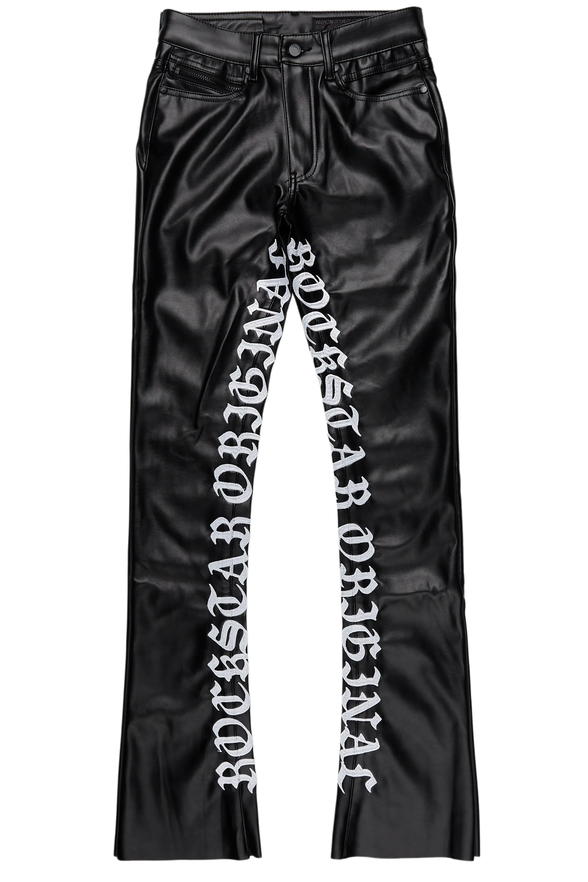 Petrus Jet Black PU Stacked Flare Leather Jean