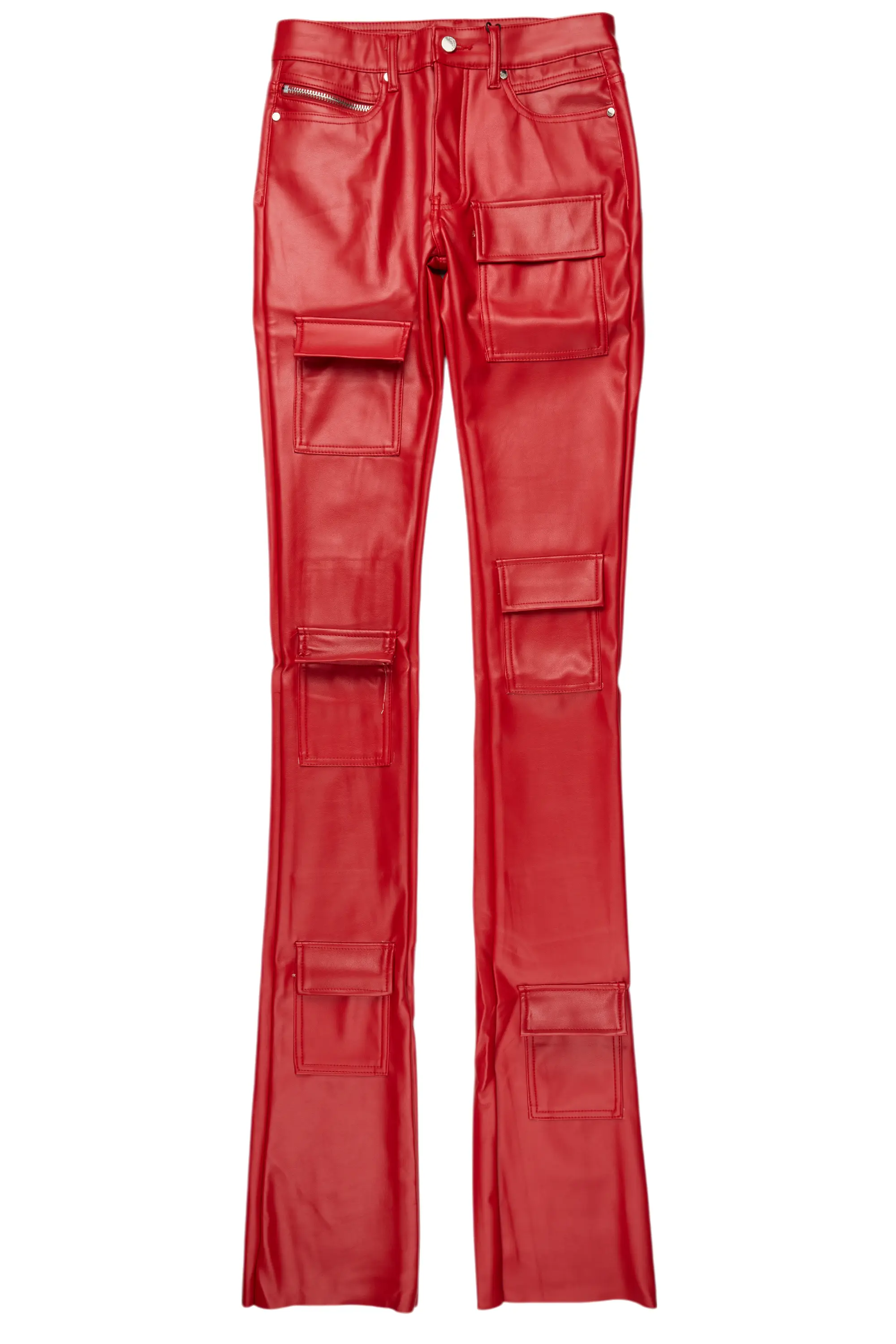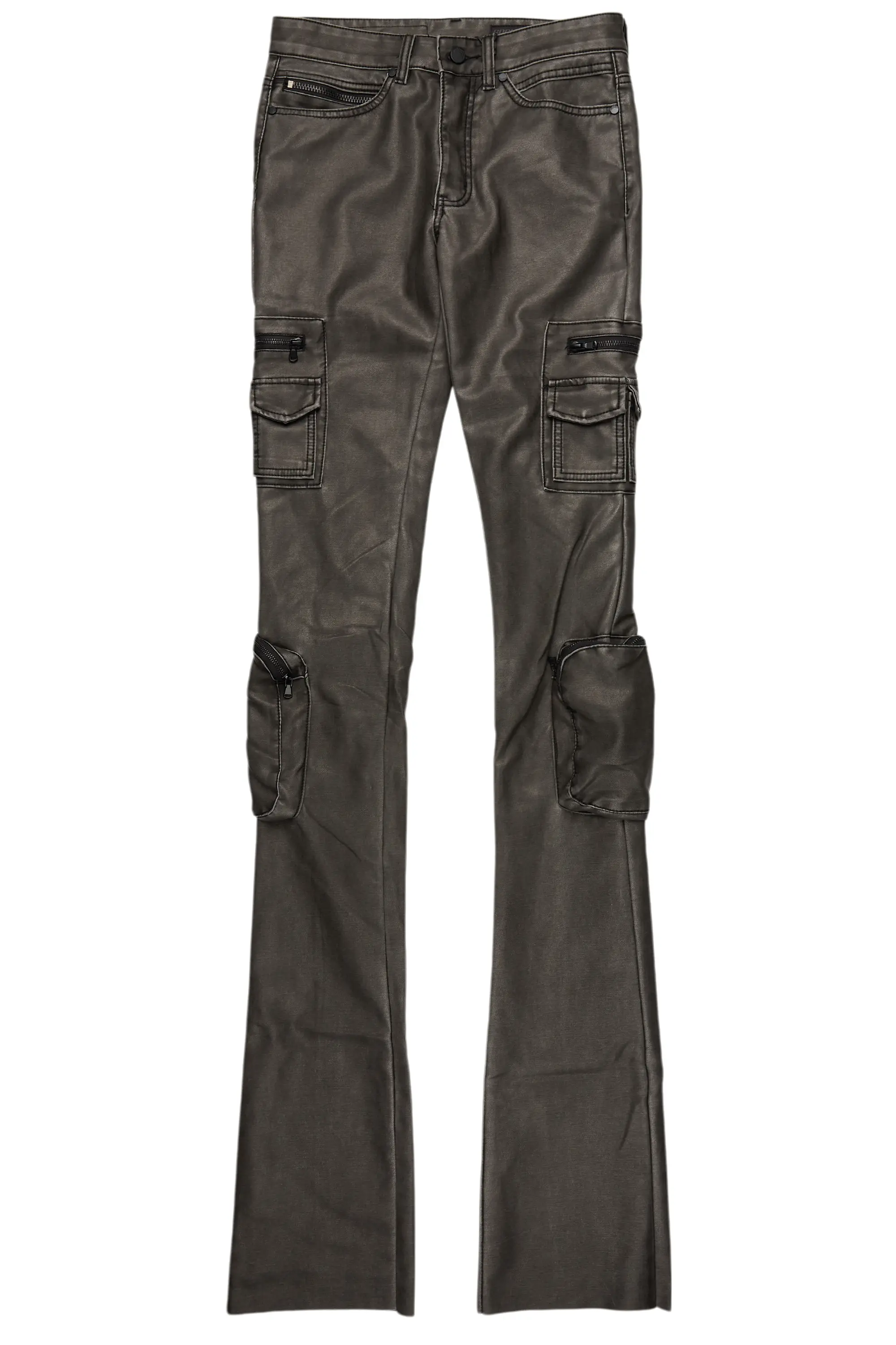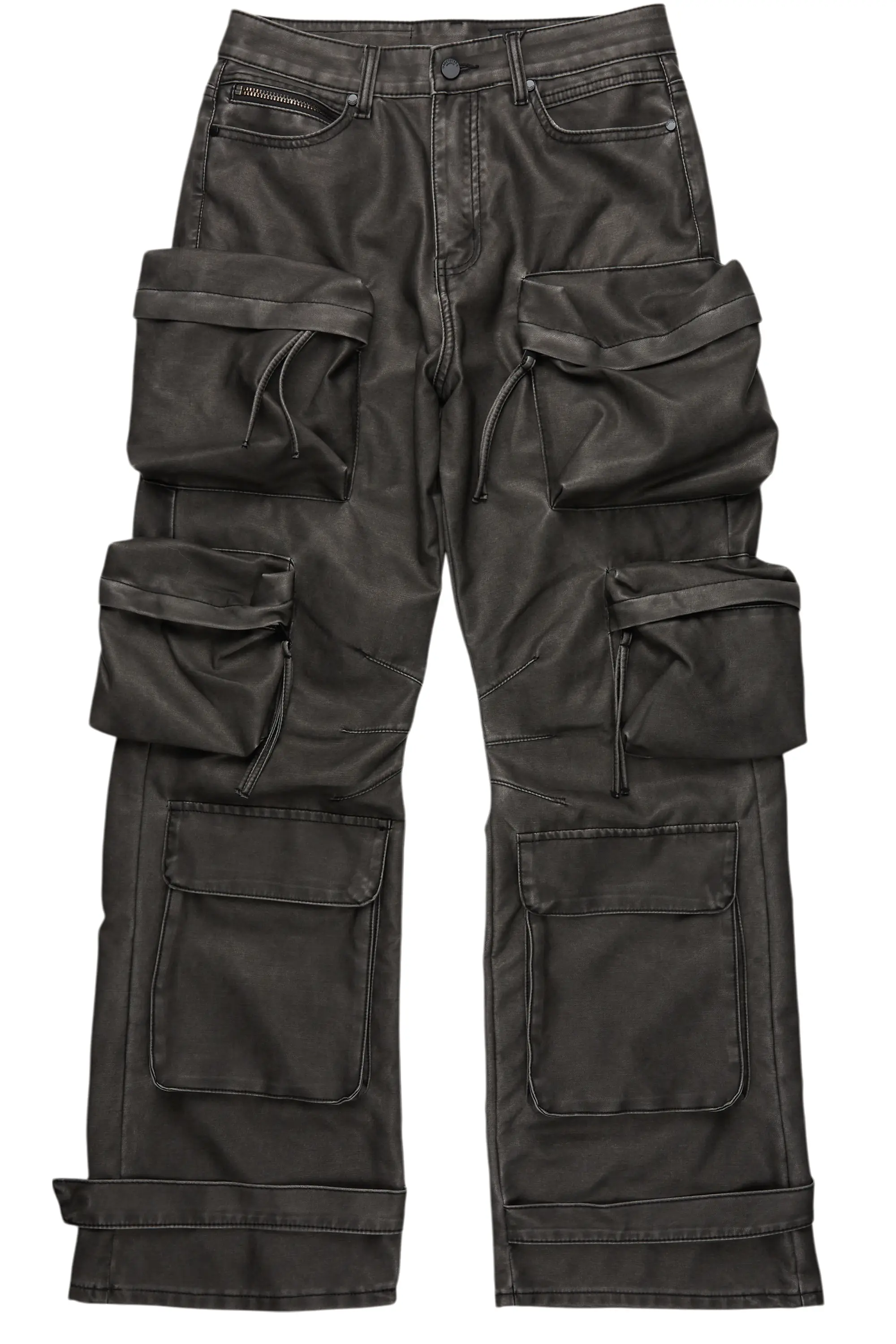 Petrus Jet Black PU Stacked Flare Leather Jean