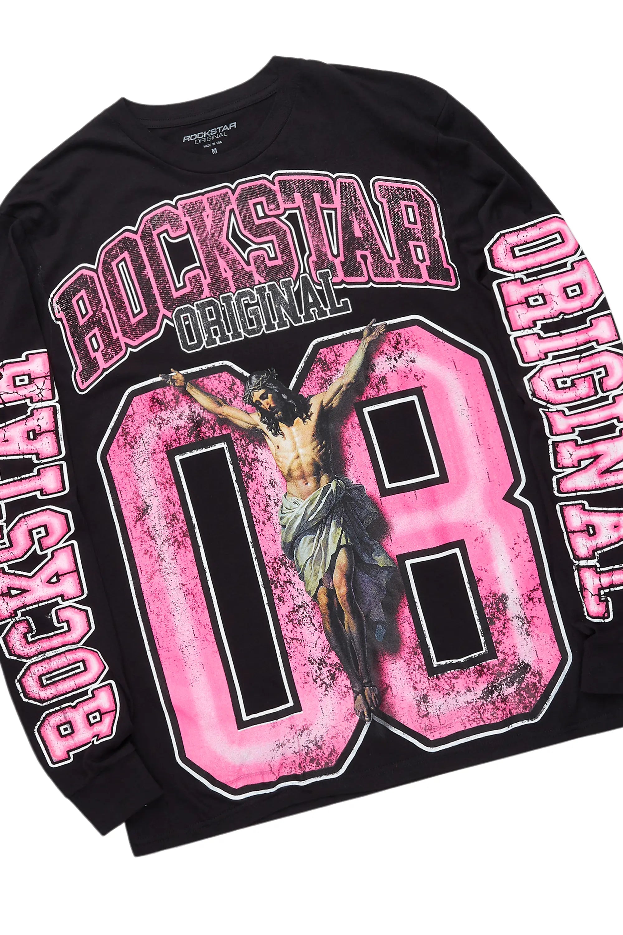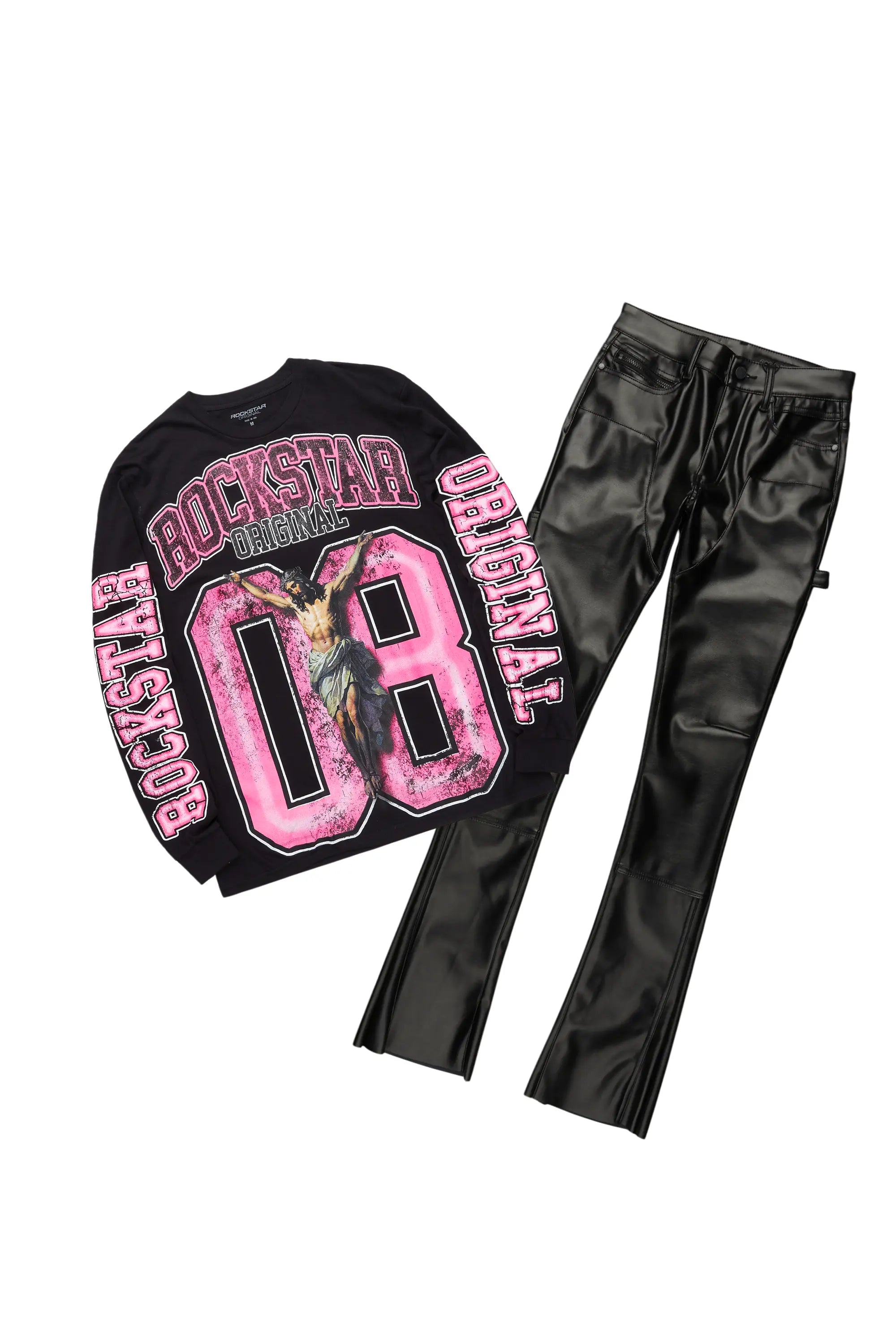 Fields Black Long Sleeve T-Shirt & Quatz Stacked Flare PU Jean Bundle