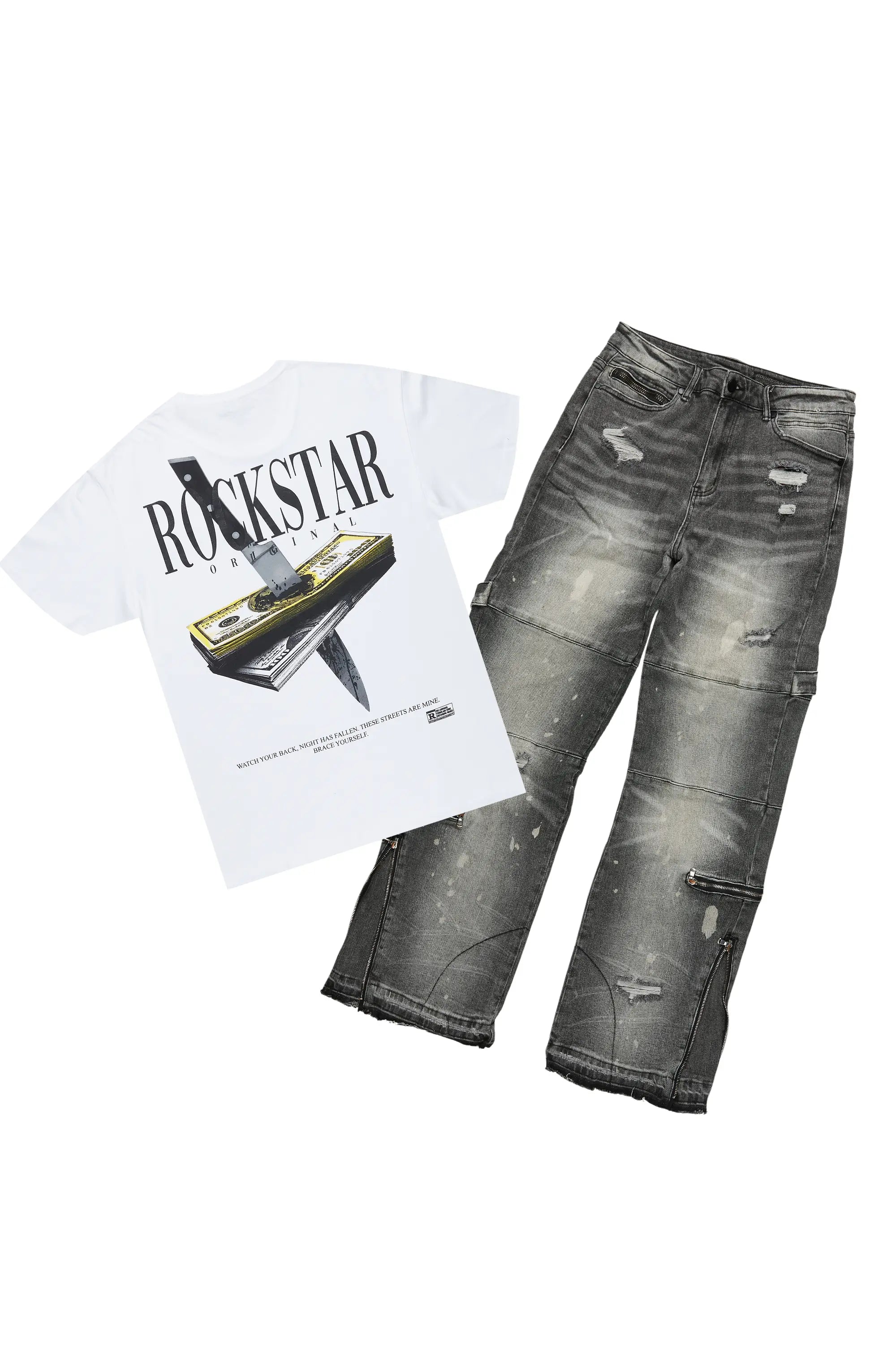 Jadon White/Beige T-Shirt/Super Stacked Flare Jean Bundle