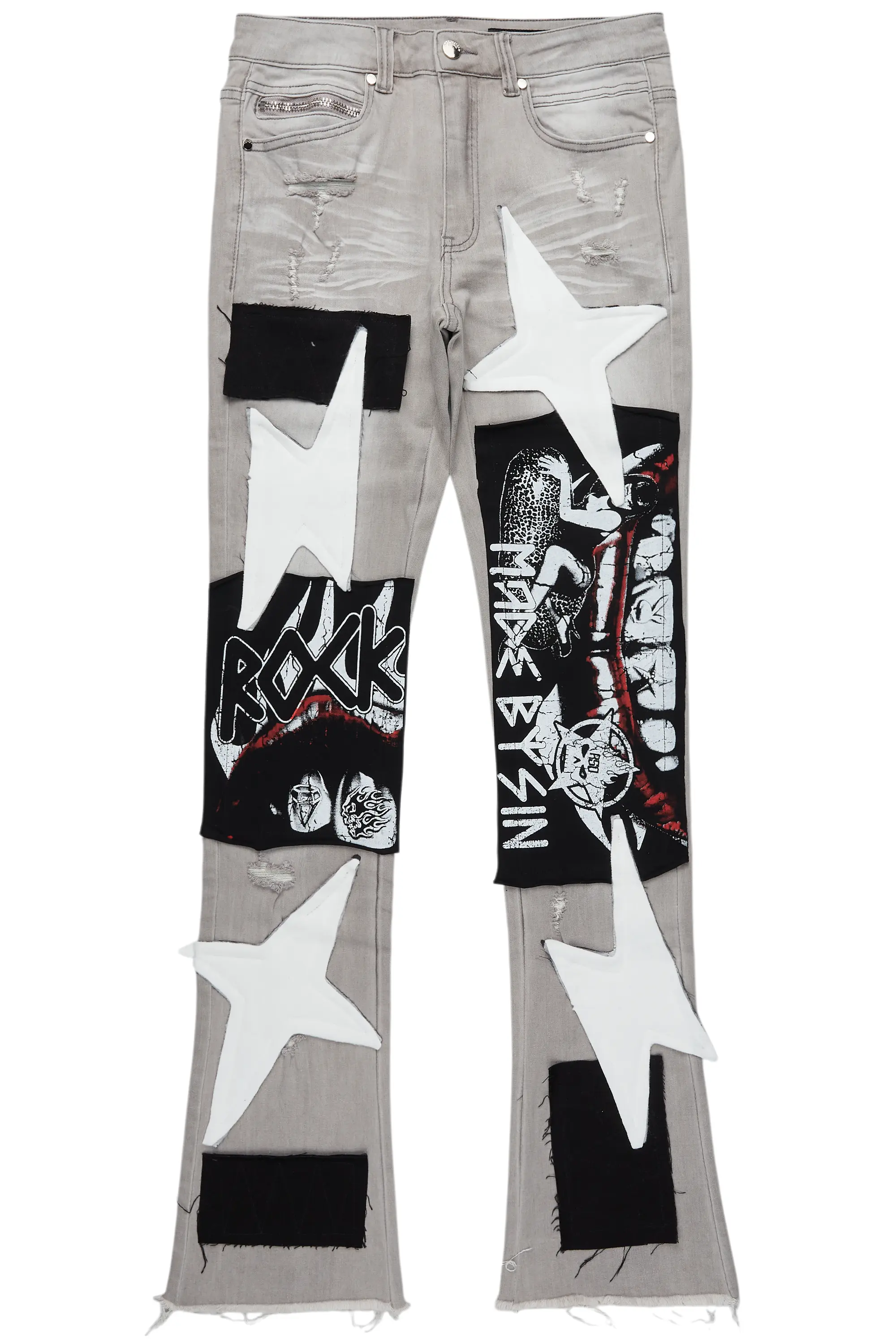 Edgar Grey/Yellow Patchwork Stacked Flare Jean