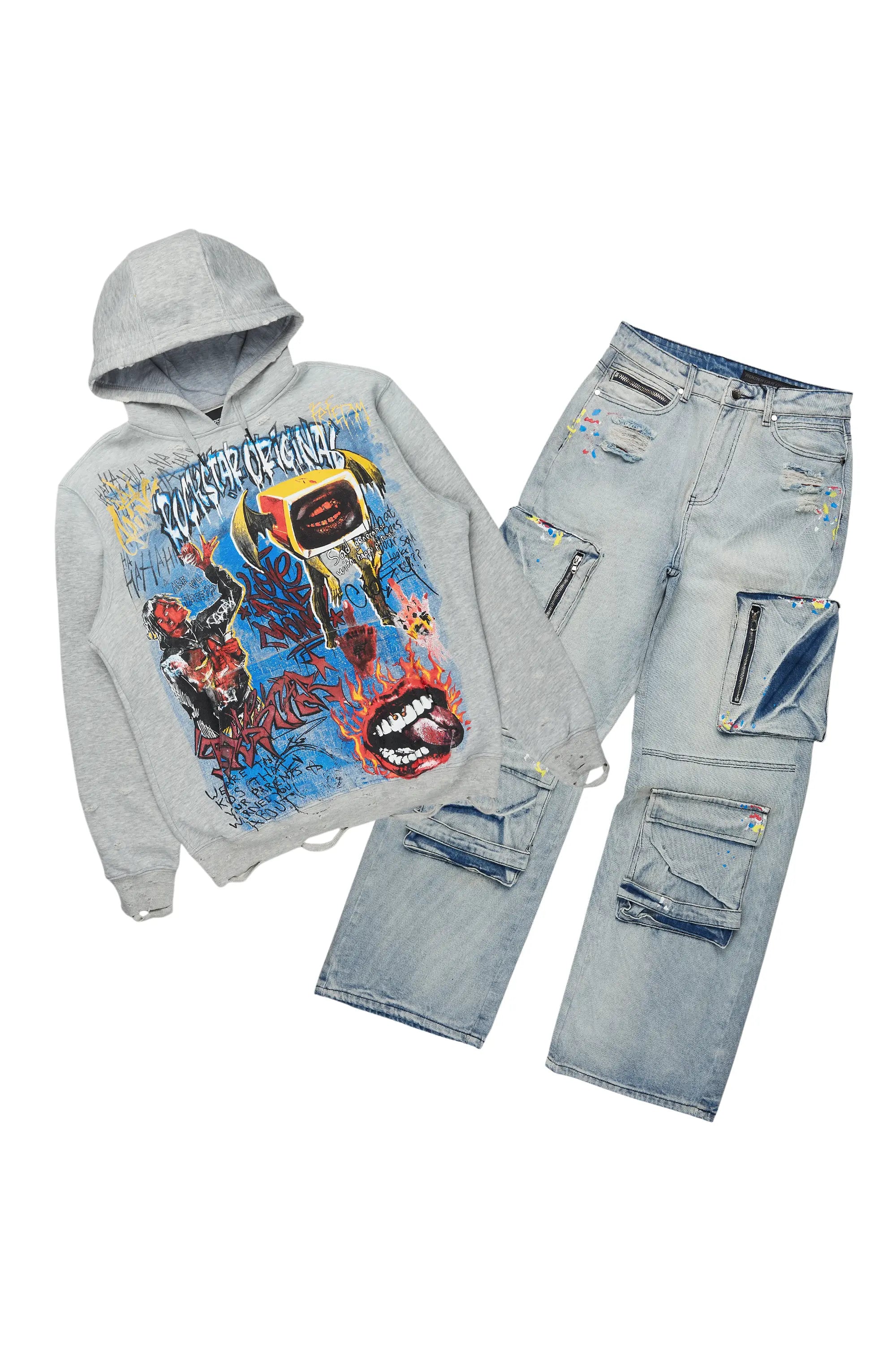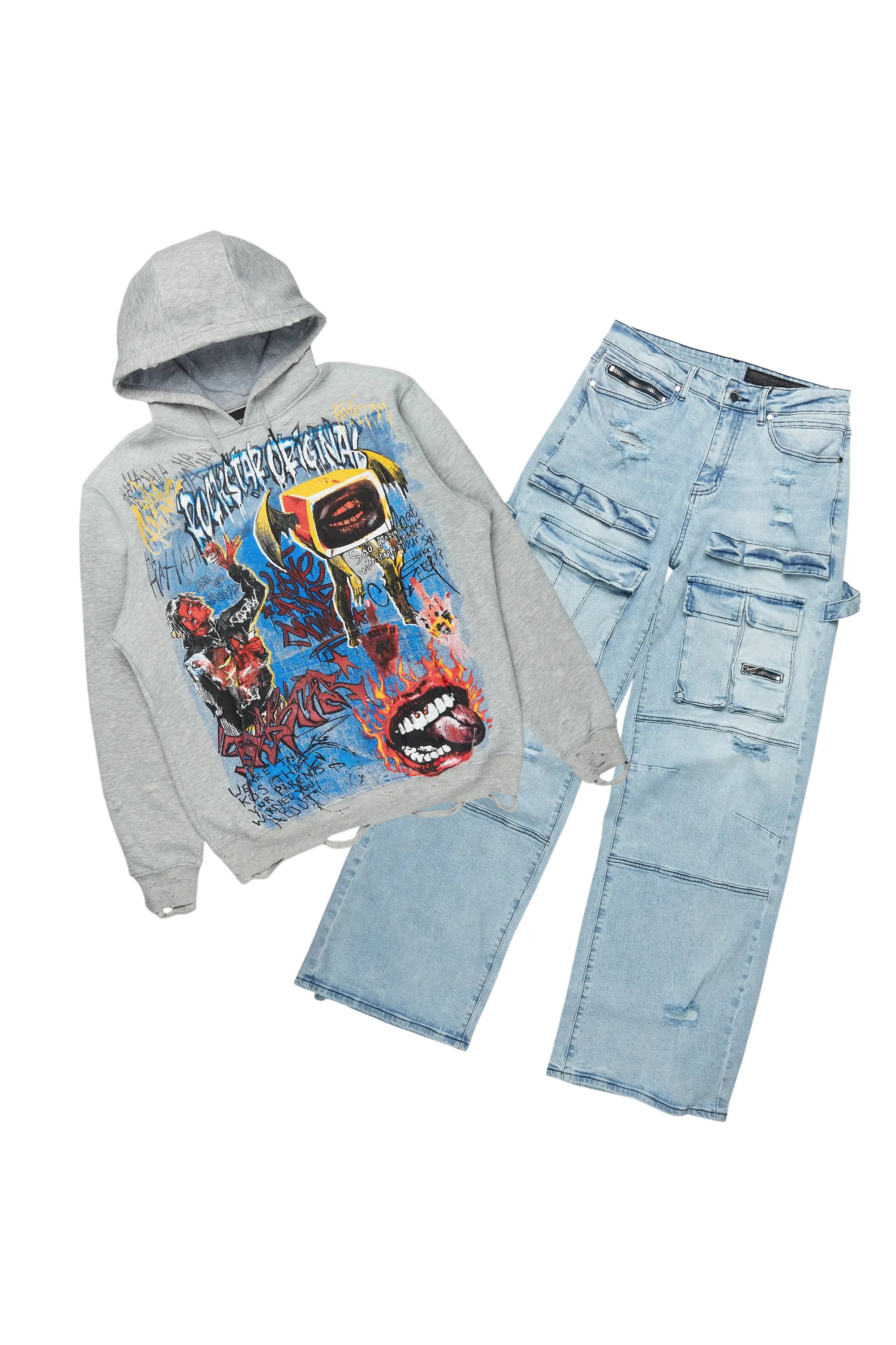 Yooz Grey/Blue Hoodie/Baggy Fit Jean Bundle