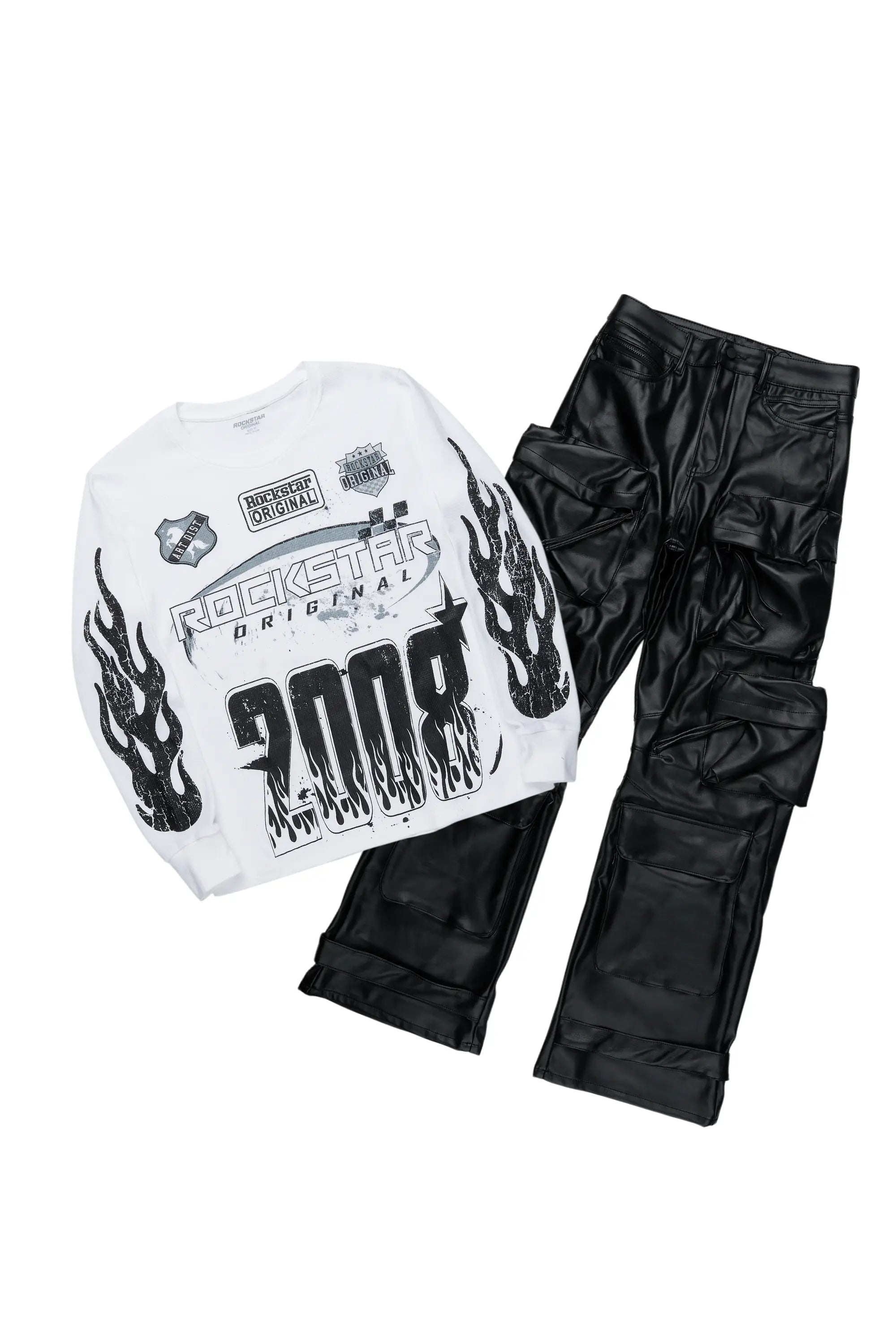 Amos White/Black Thermal T-Shirt & Lenz Baggy PU Jean Bundle
