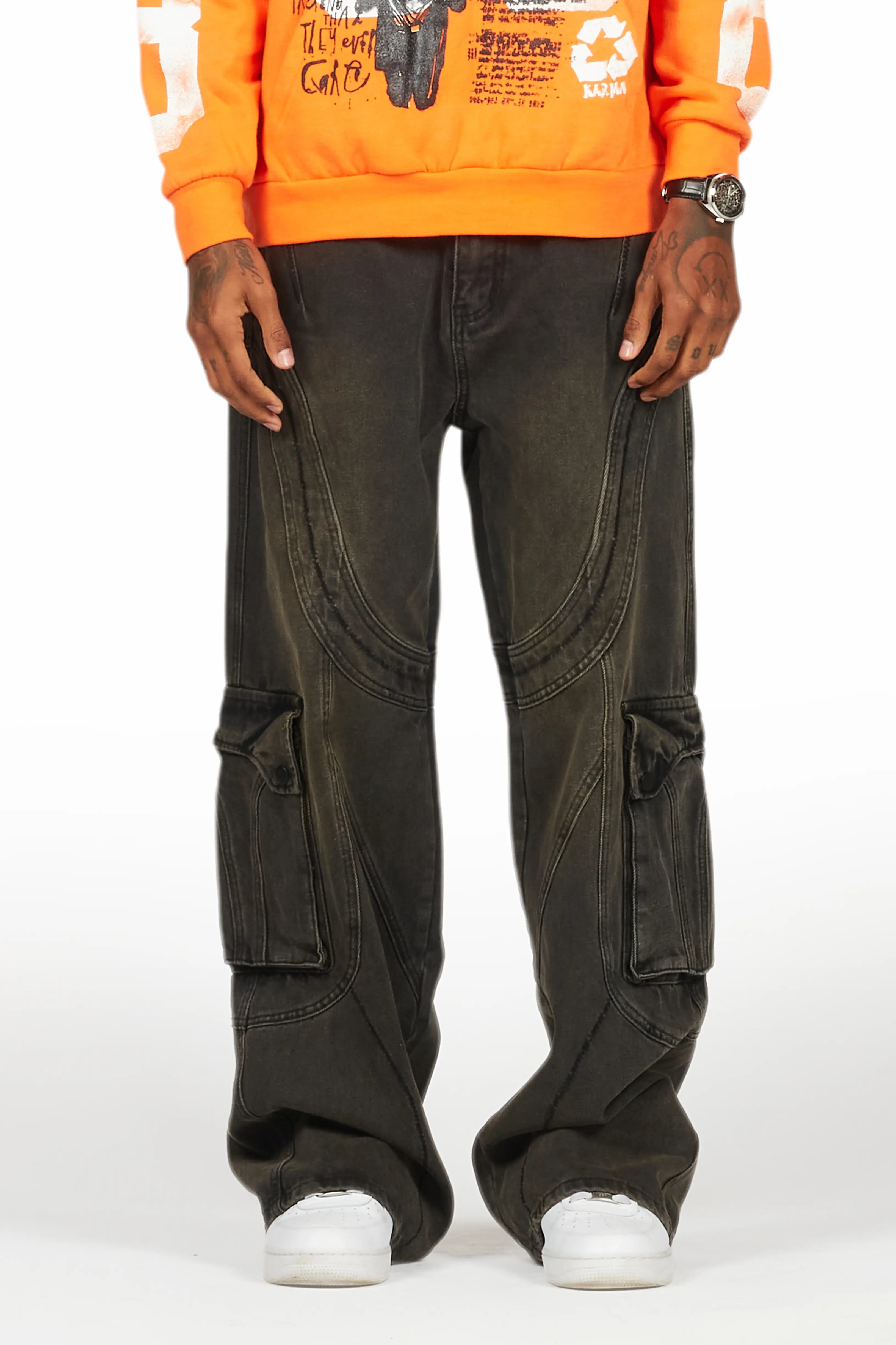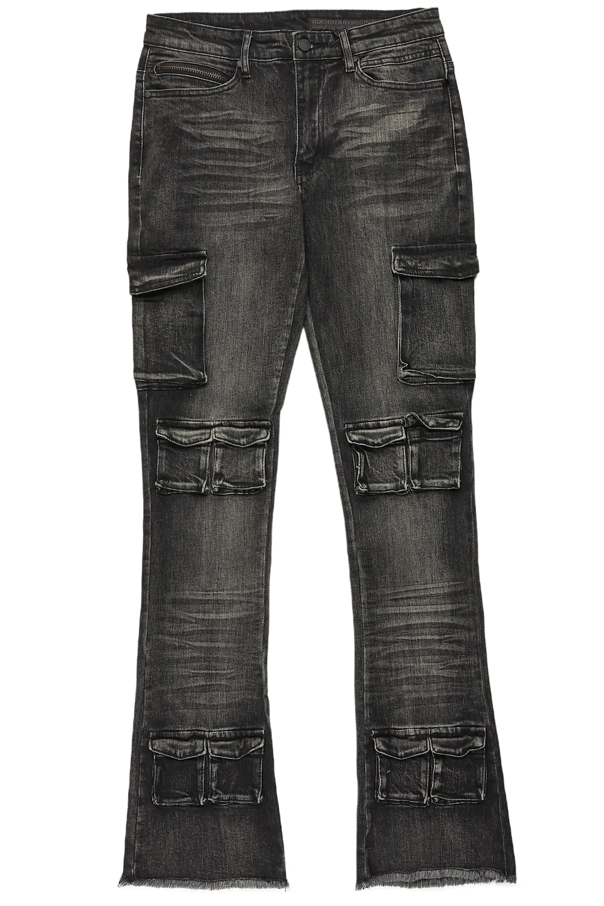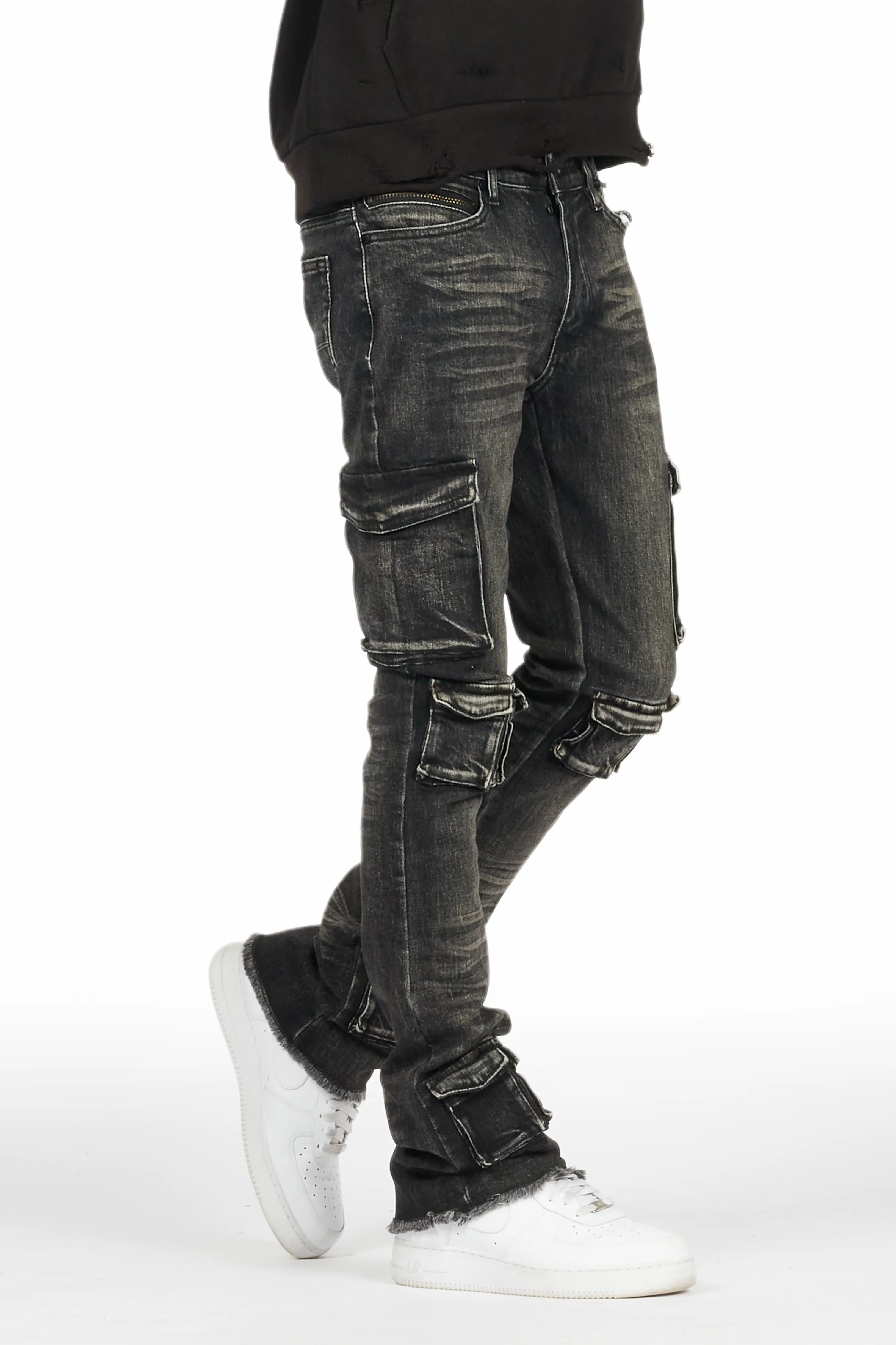 Feodor Dark Grey Stacked Flare Cargo Jean