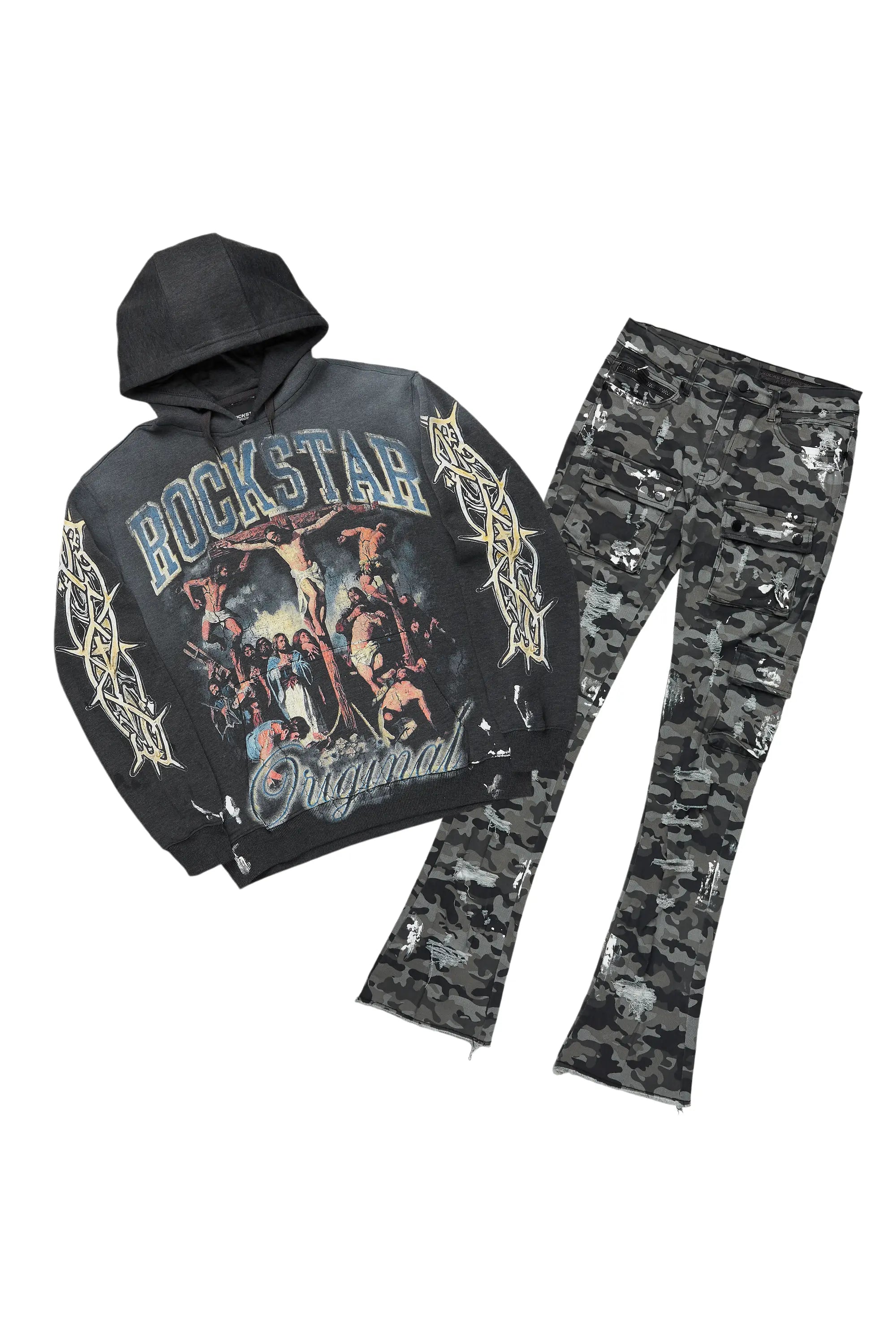 Waller Charcoal Hoodie/Stacked Flare Jean Bundle