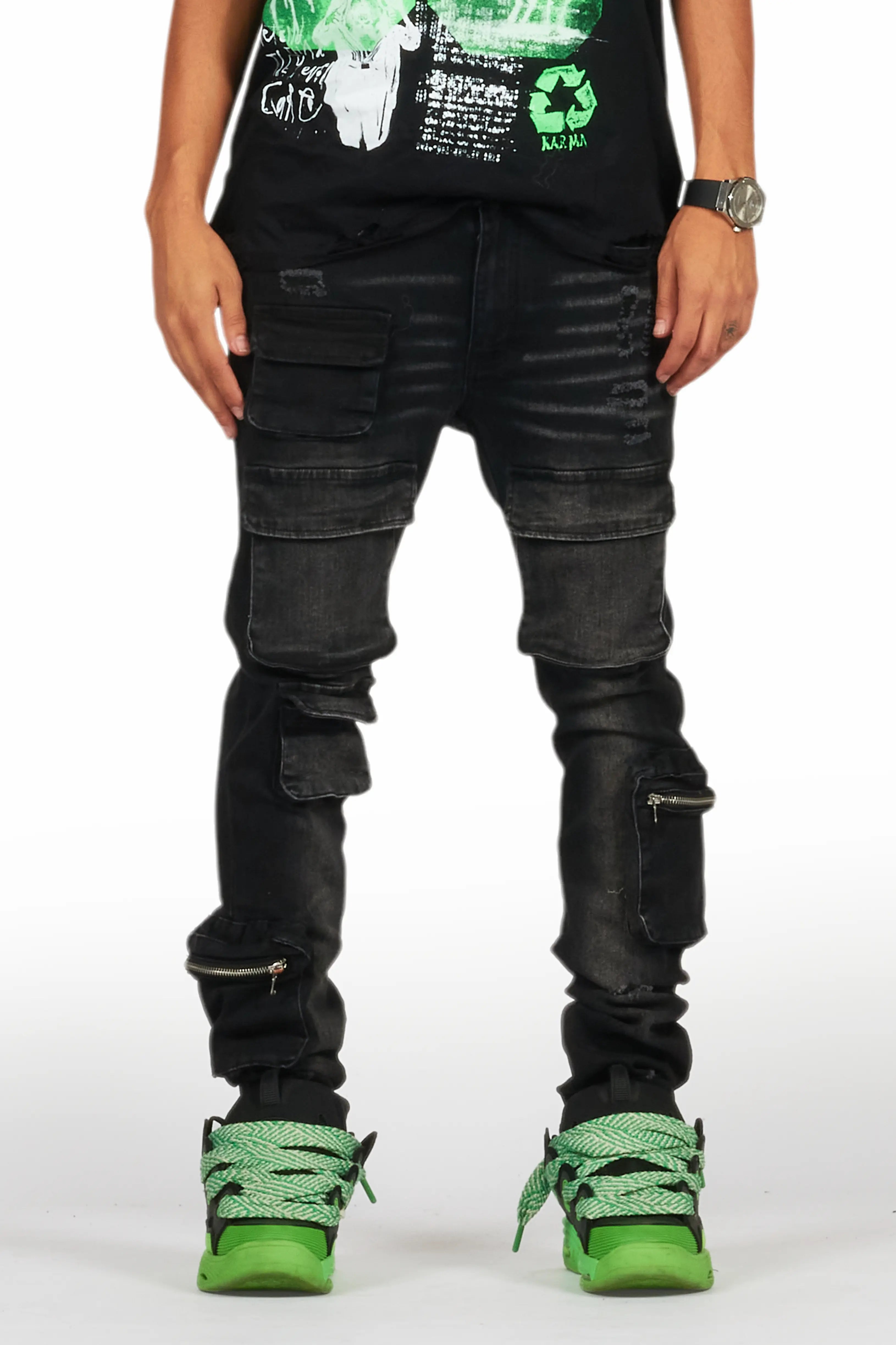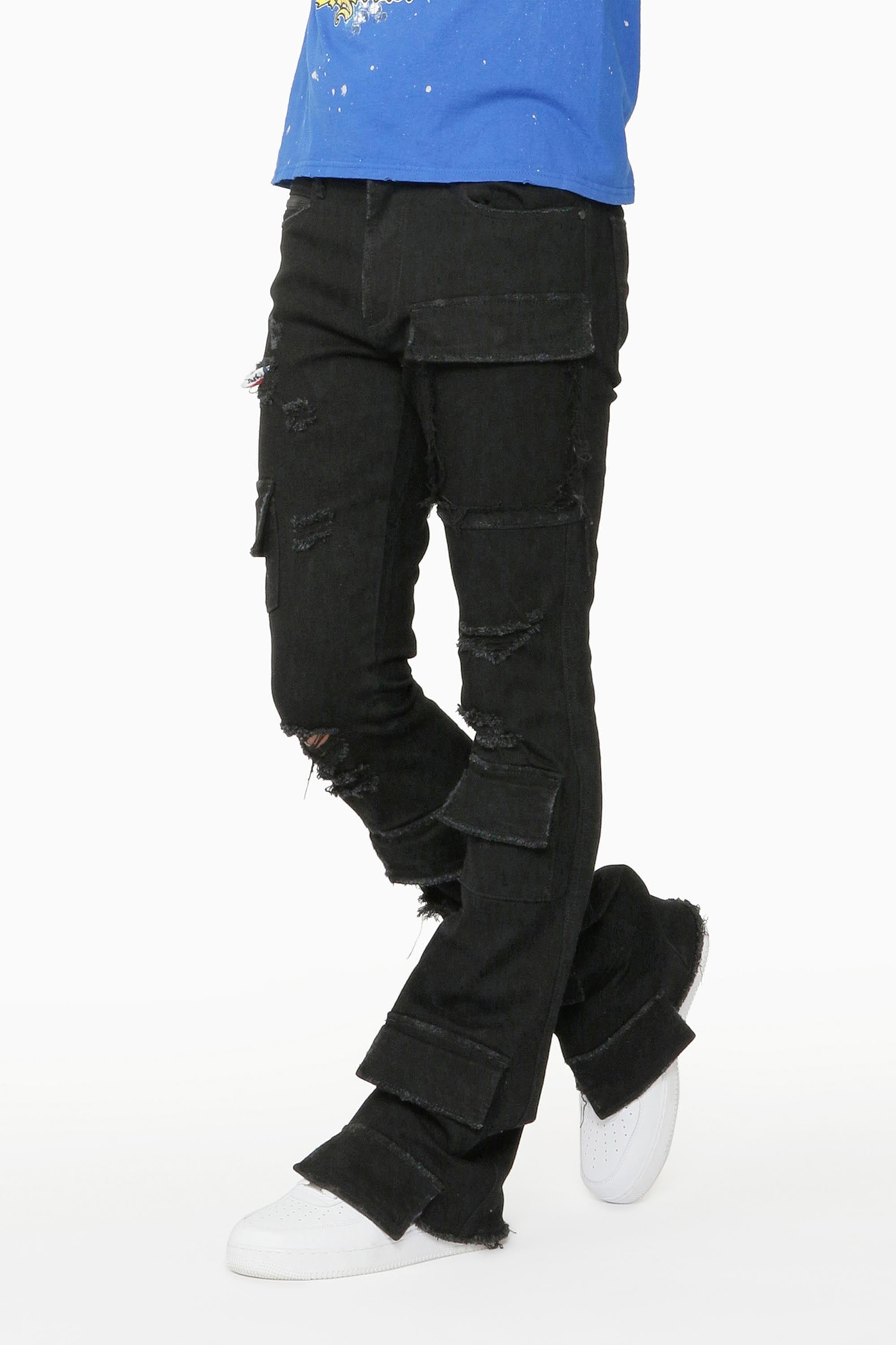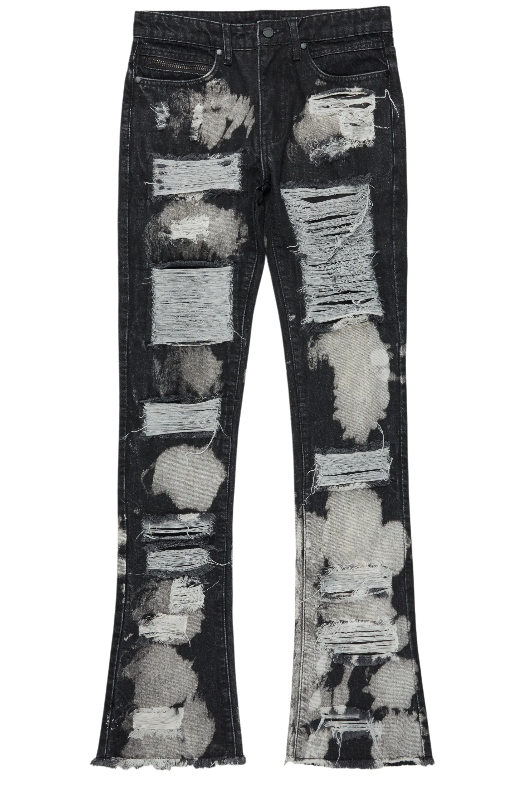 Stig Black Bleach Stacked Flare Jean