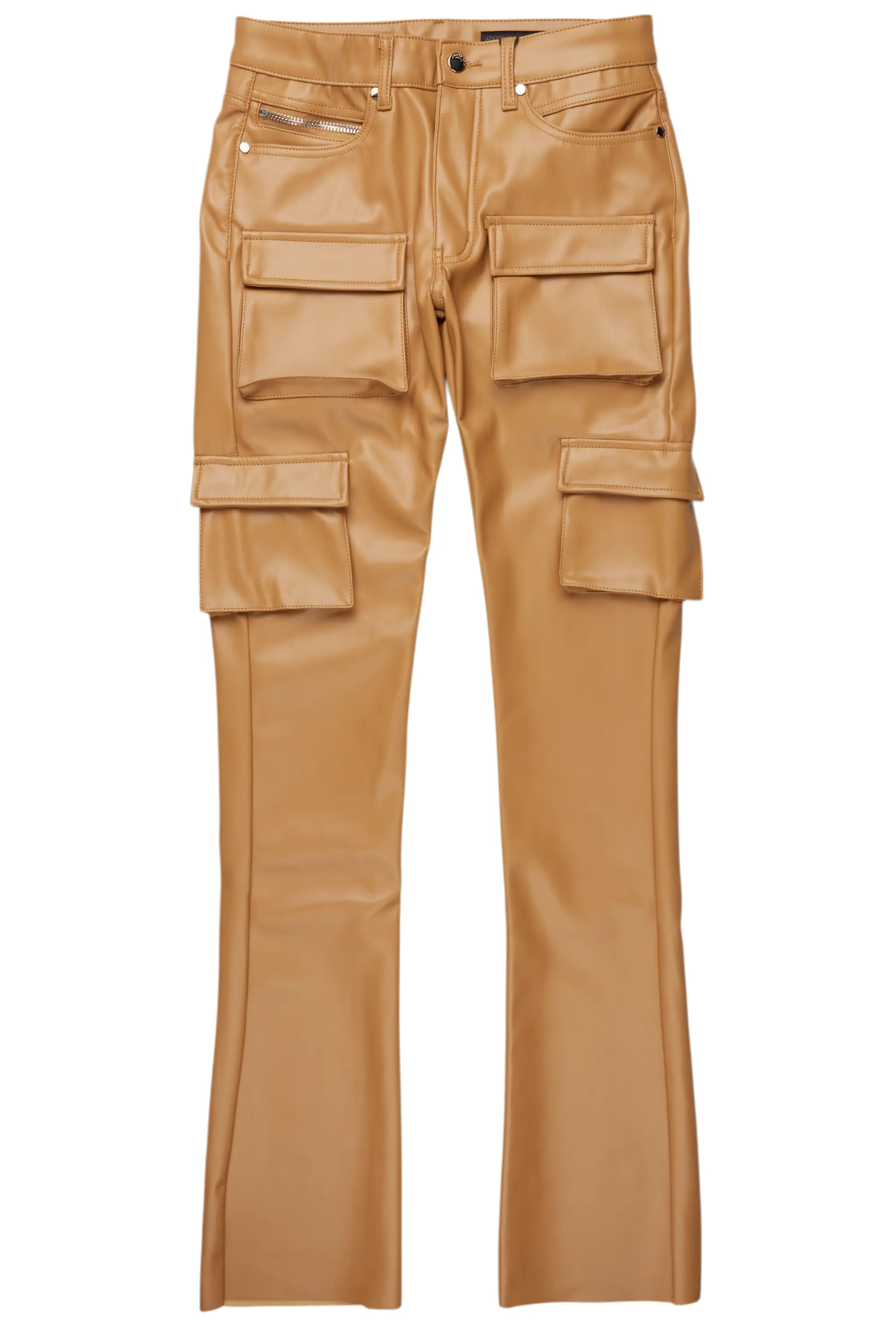 Petrus Brown PU Stacked Flare Leather Jean
